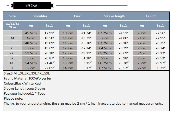 Size:S,M,L,XL,2XL,3XL,4XL,5XL