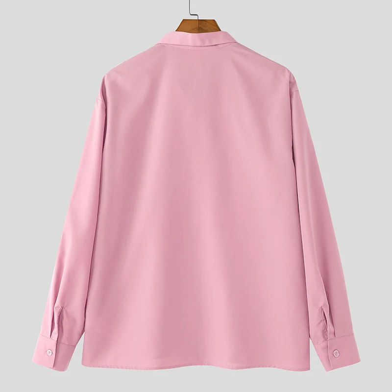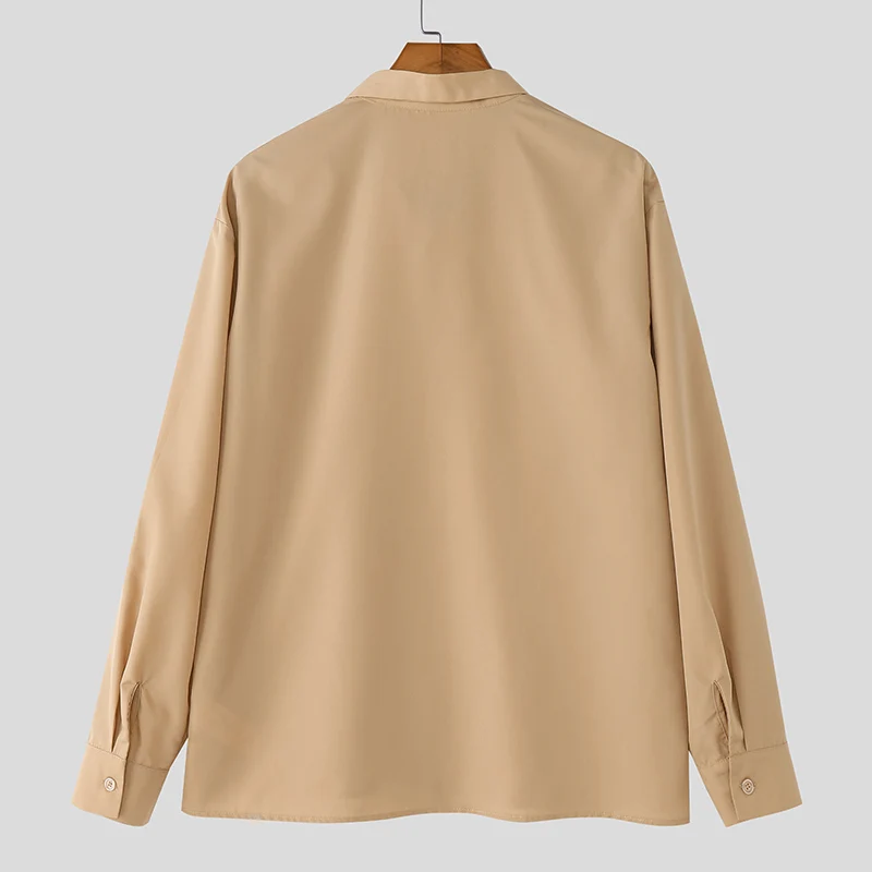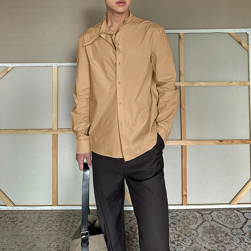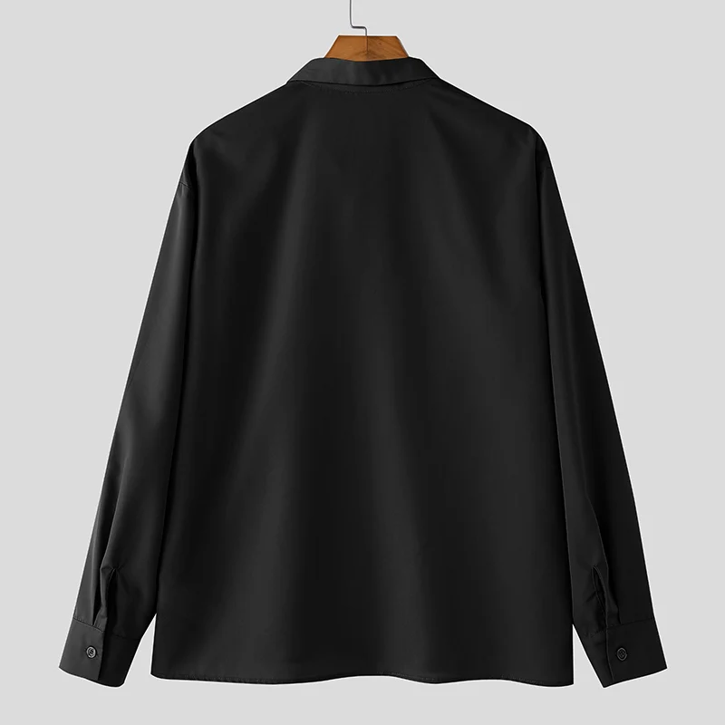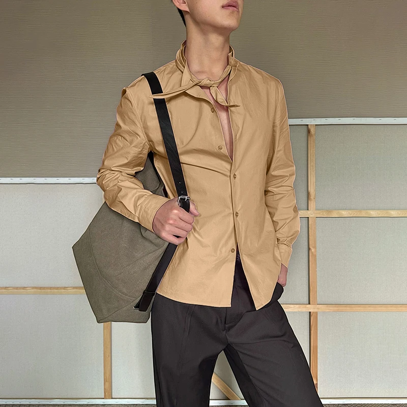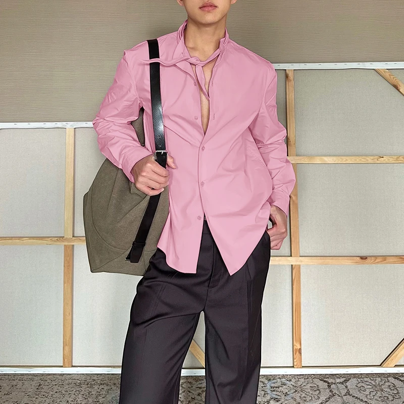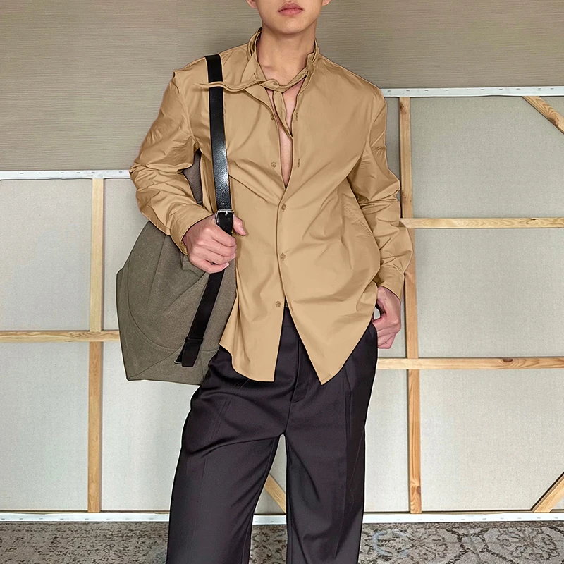 AIDASE - Men Shirt Solid Color Lapel Long Sleeve Lace Up Casual Men Clothing Streetwear Loose 2025 Fashion Male Shirts S-5XL