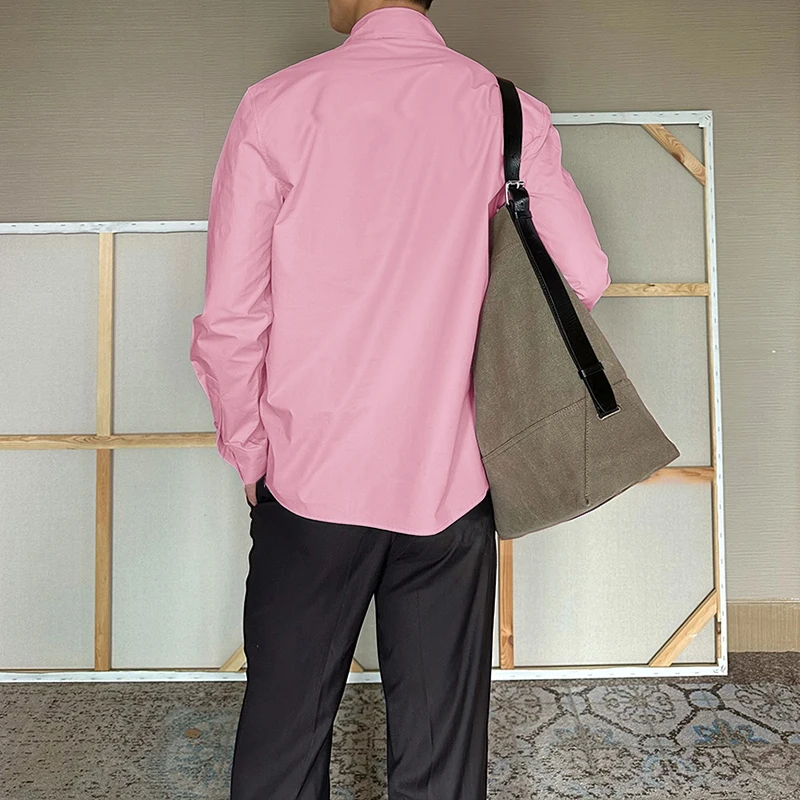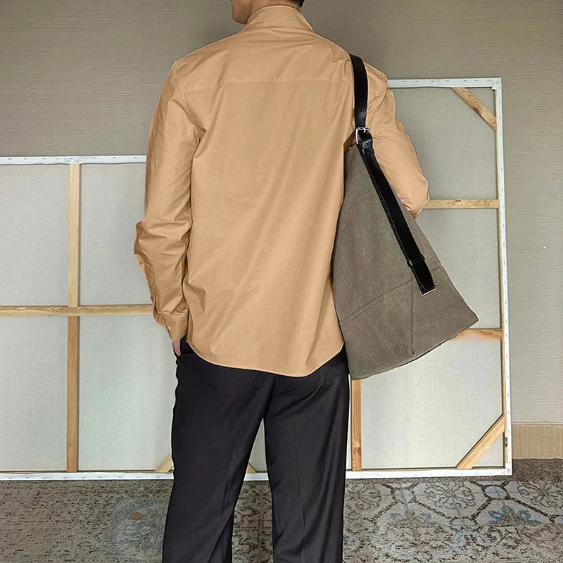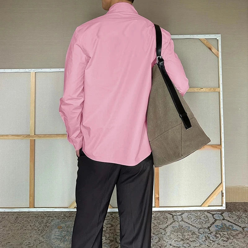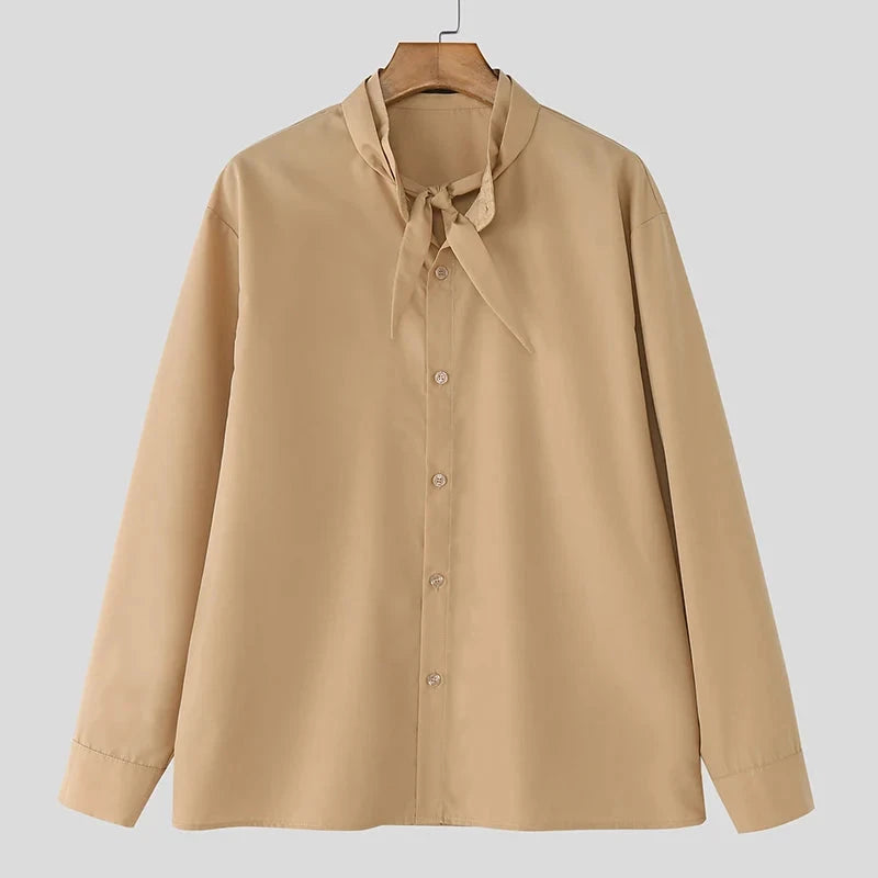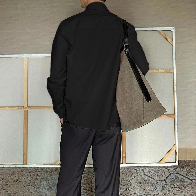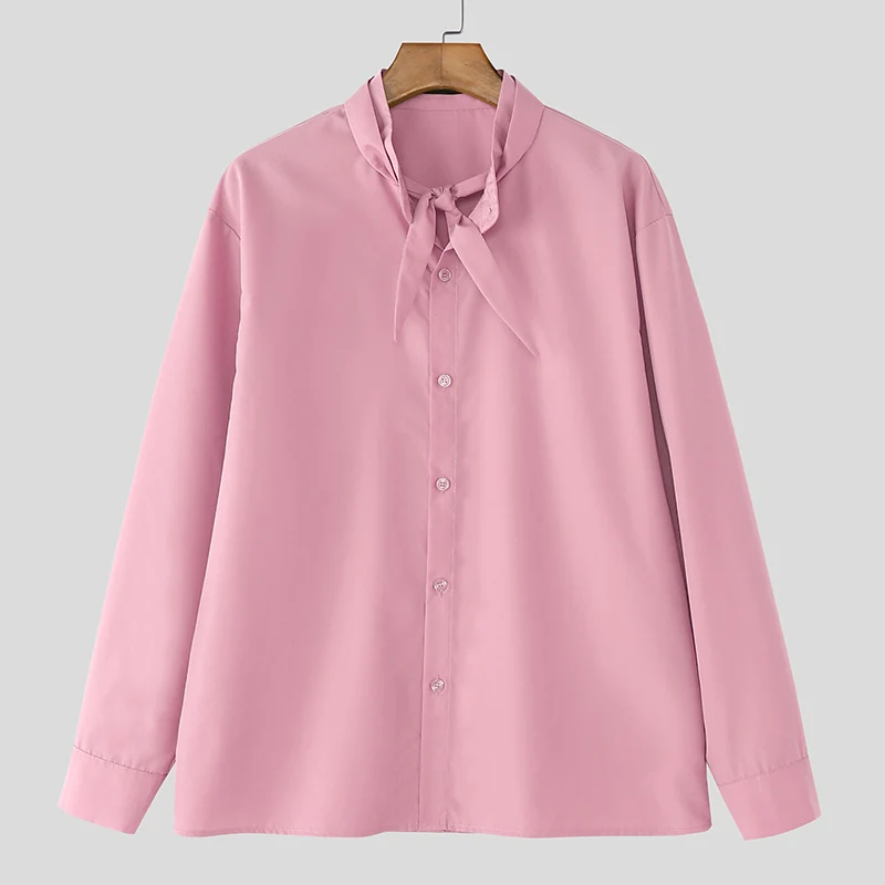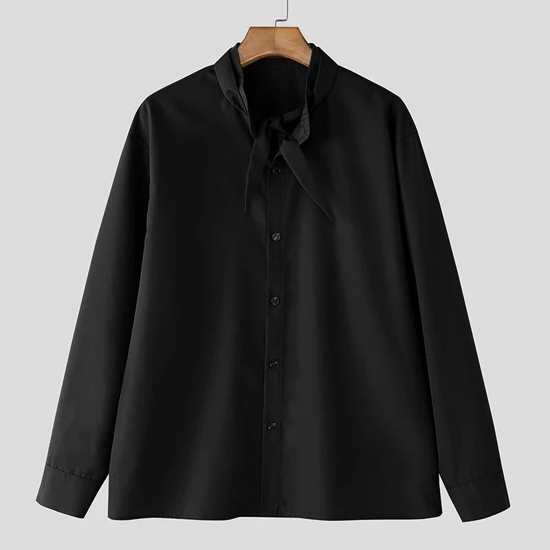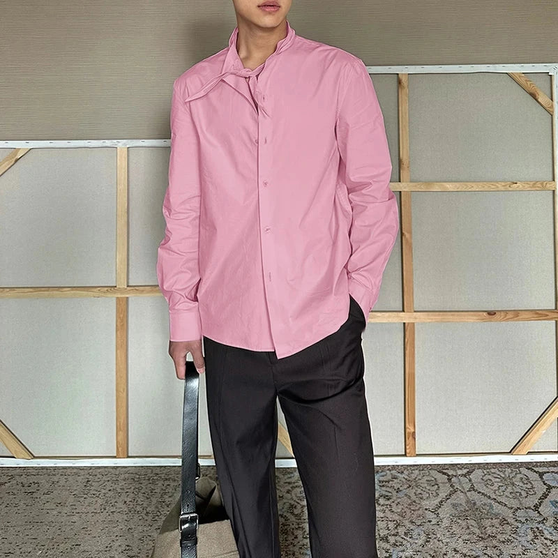 AIDASE - Men Shirt Solid Color Lapel Long Sleeve Lace Up Casual Men Clothing Streetwear Loose 2025 Fashion Male Shirts S-5XL