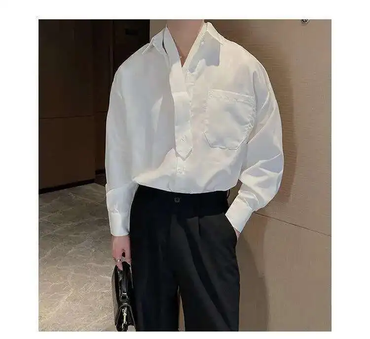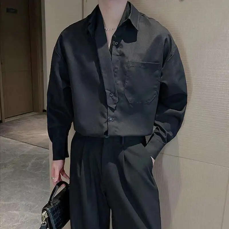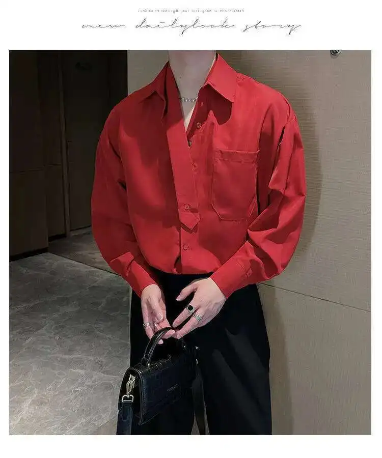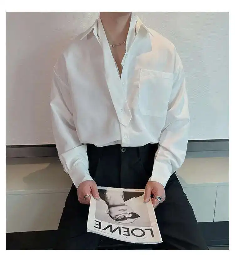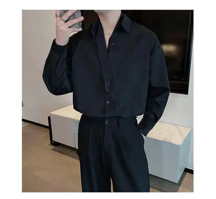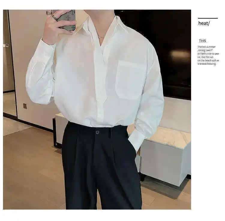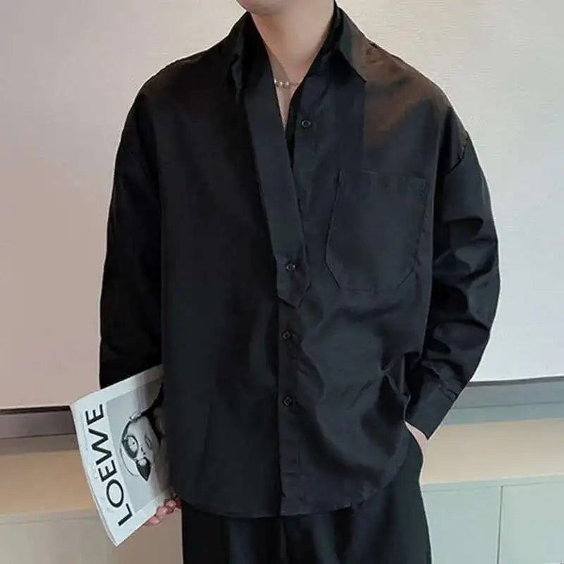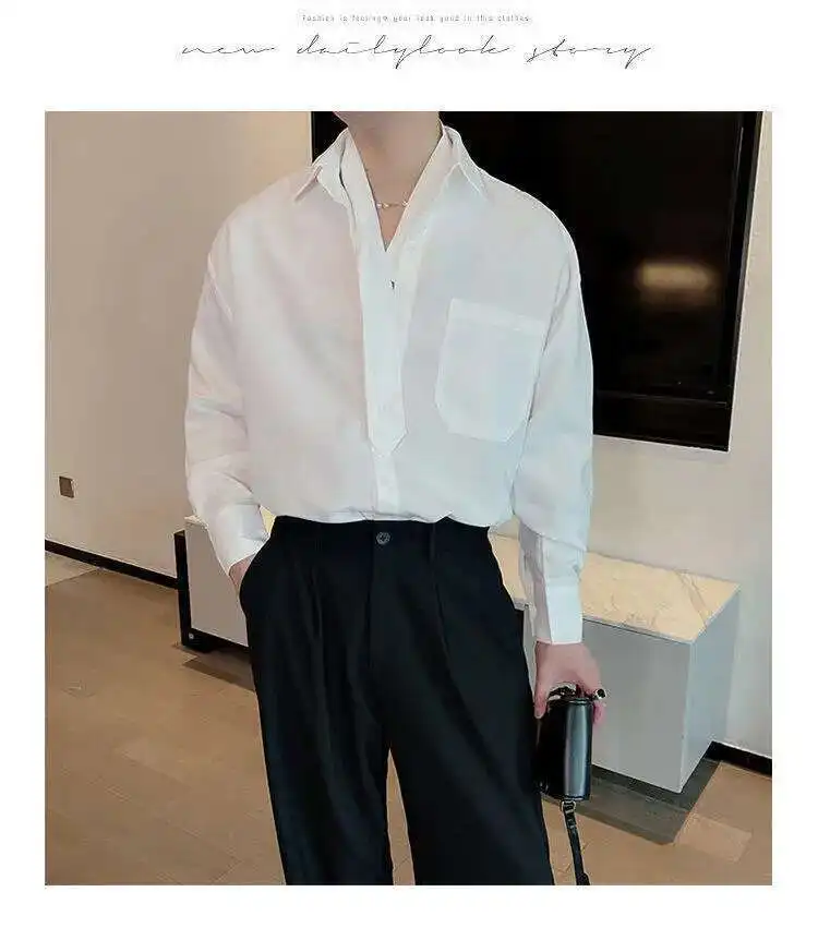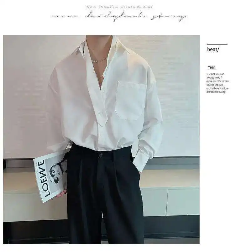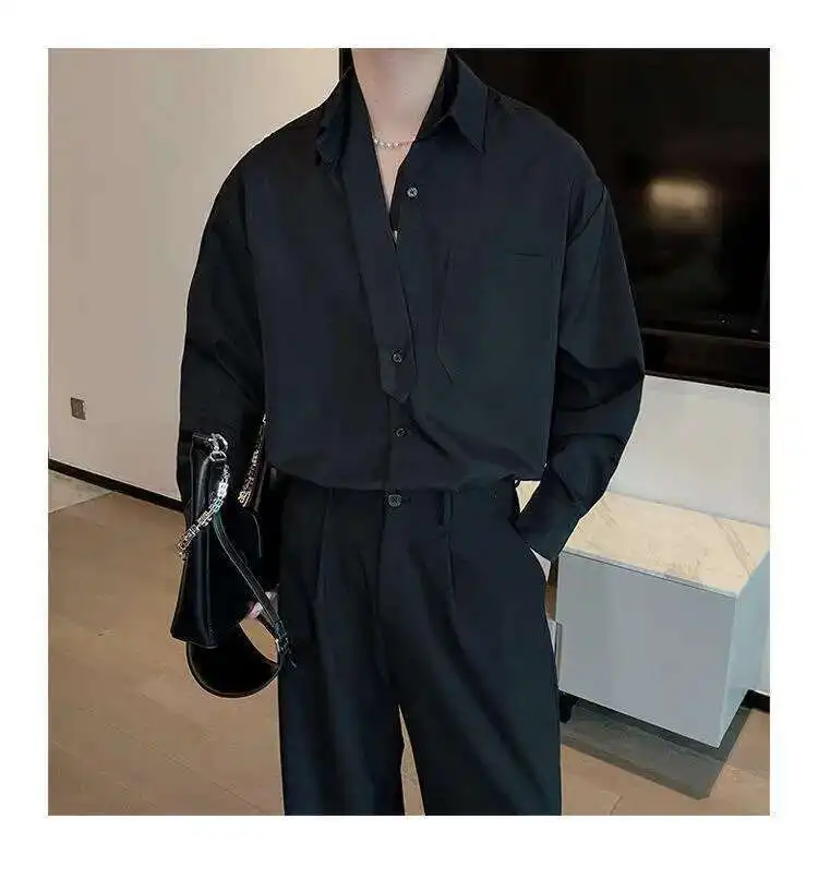 AIDASE - Men Tie Design Turn-down Collar Shirts Spring New Fashion Long Sleeve Shirt Business Casual Male Clothing Solid Color