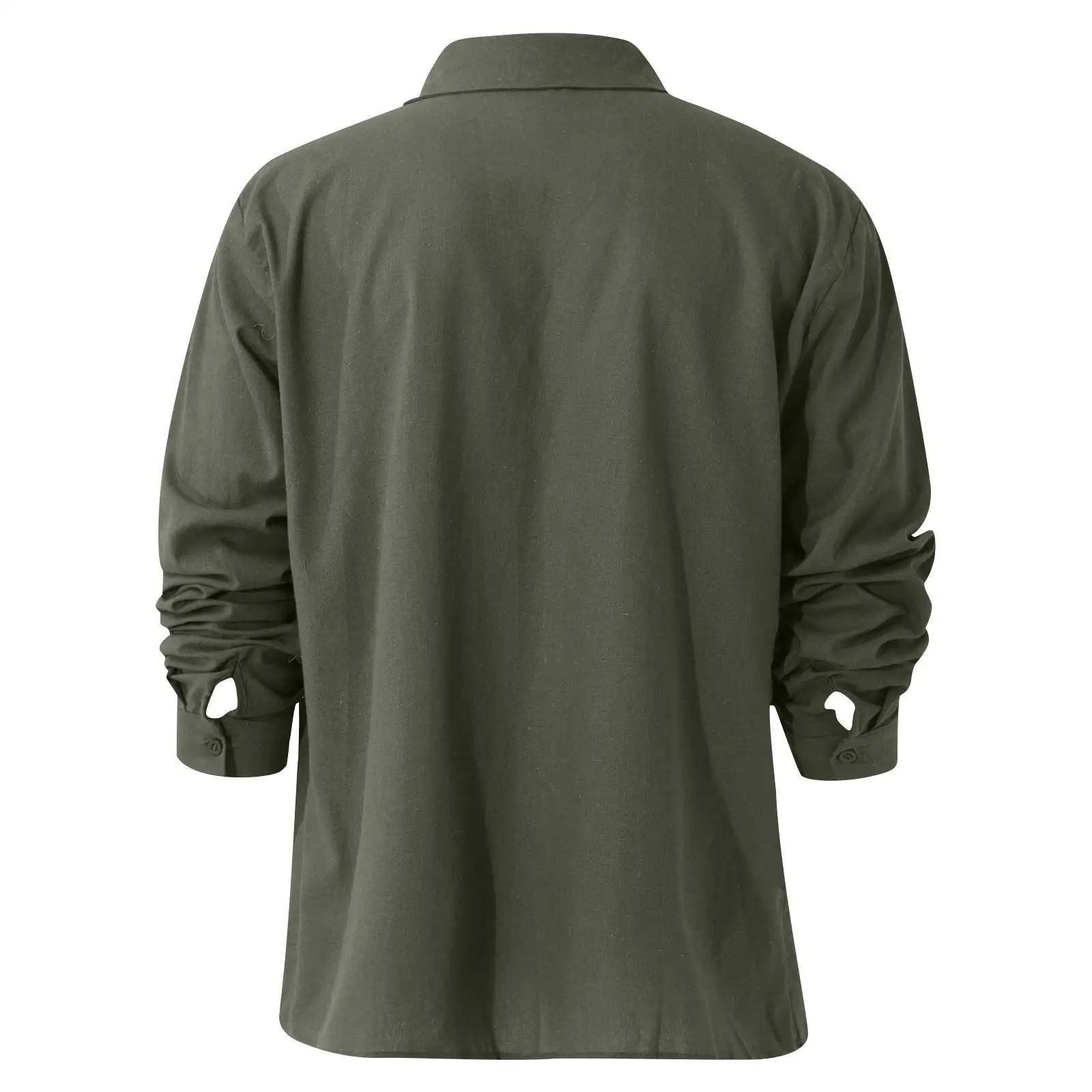 Aidase Men's Clothing Autumn and Winter New Temperament Versatile Fashion Splice Button Lapel Long Sleeve Solid Color Commuting Shirt