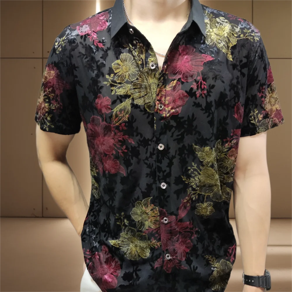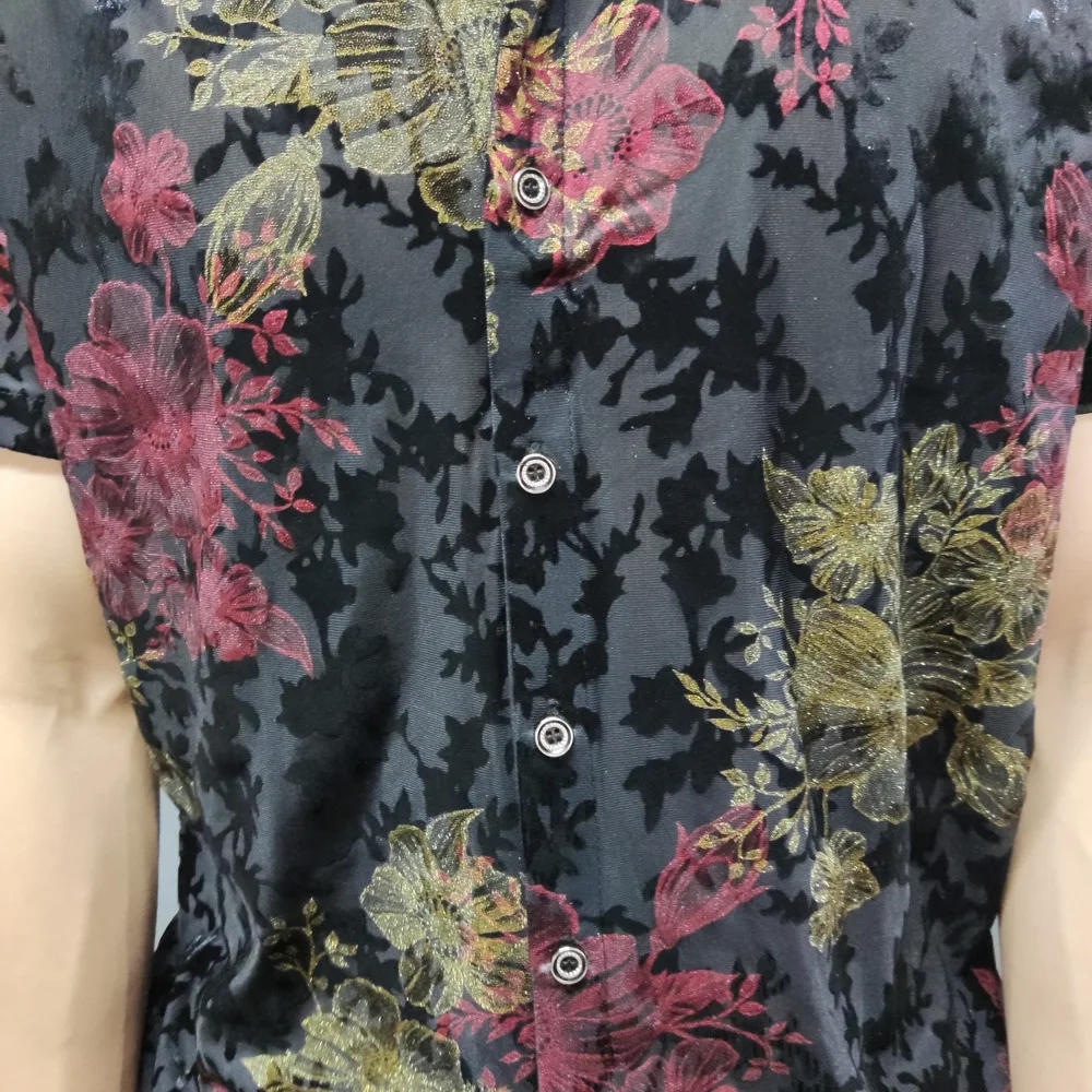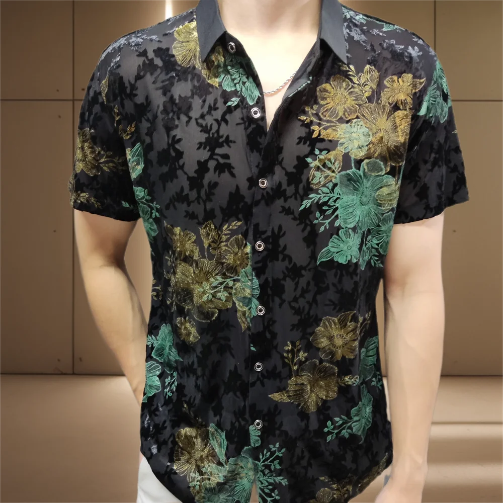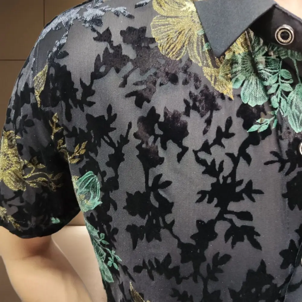 Aidase Mens Embroidery Transparent Shirt 2024 Summer Sexy Lace Shirt For Male See Through Mesh Shirt Club Party Prom Chemise Homme 98kg