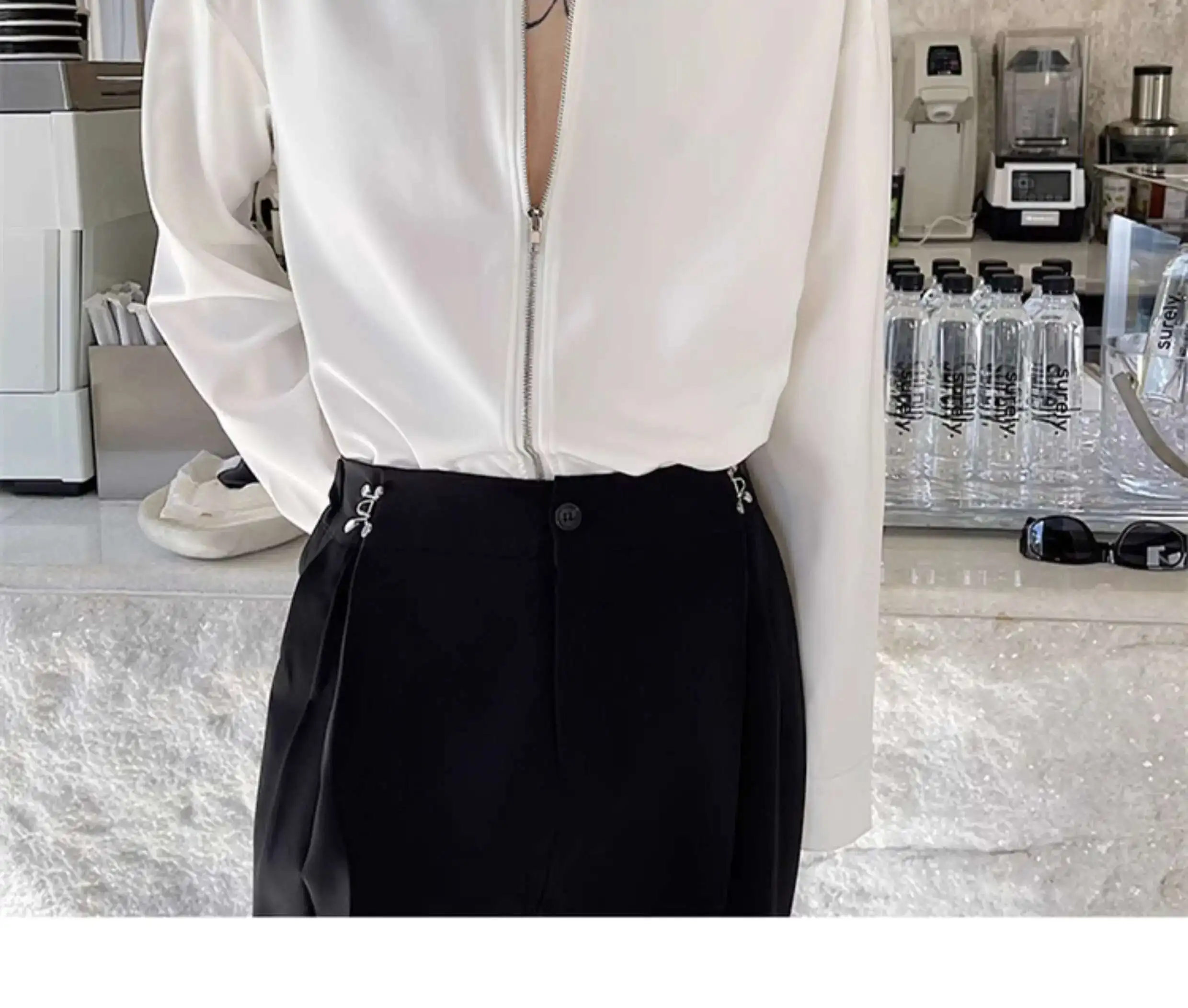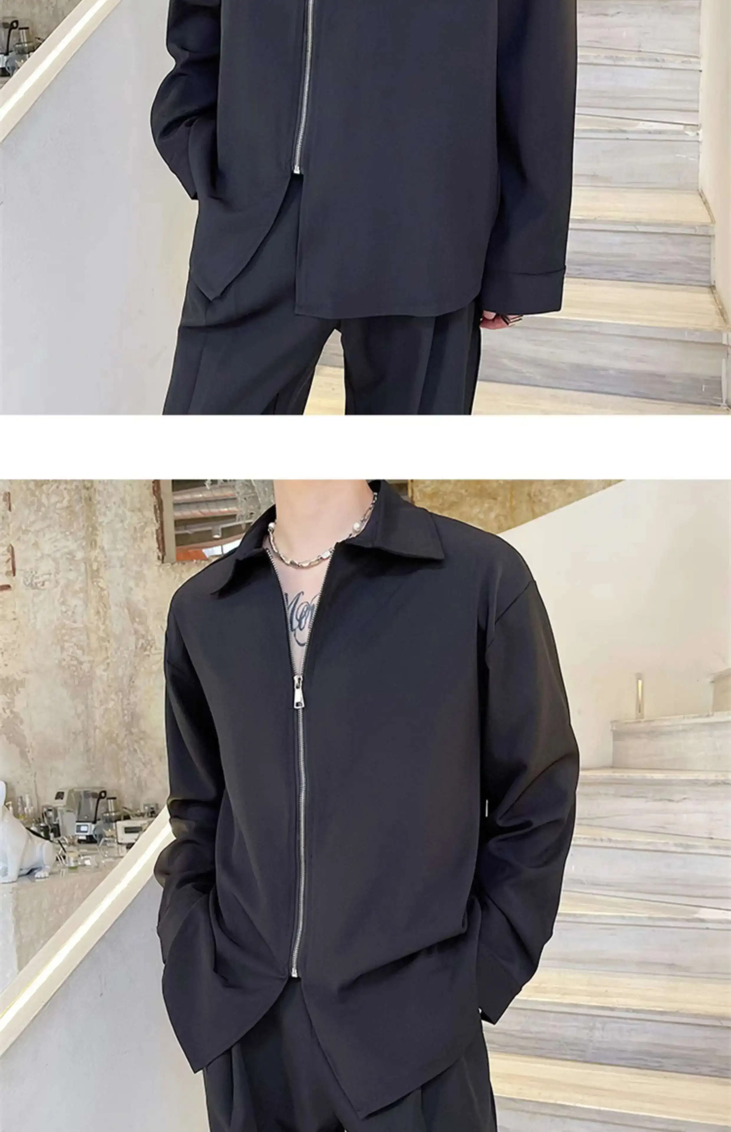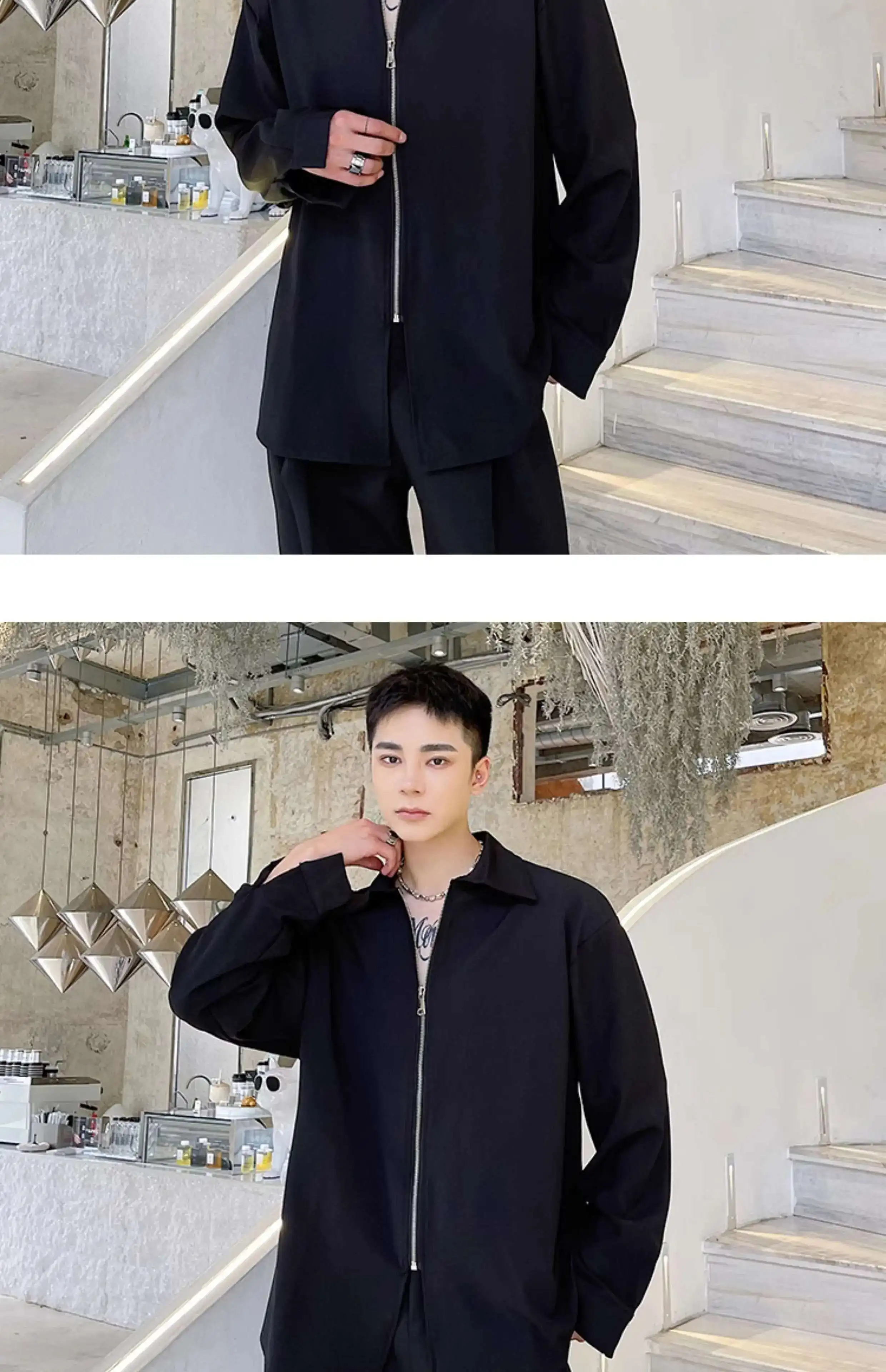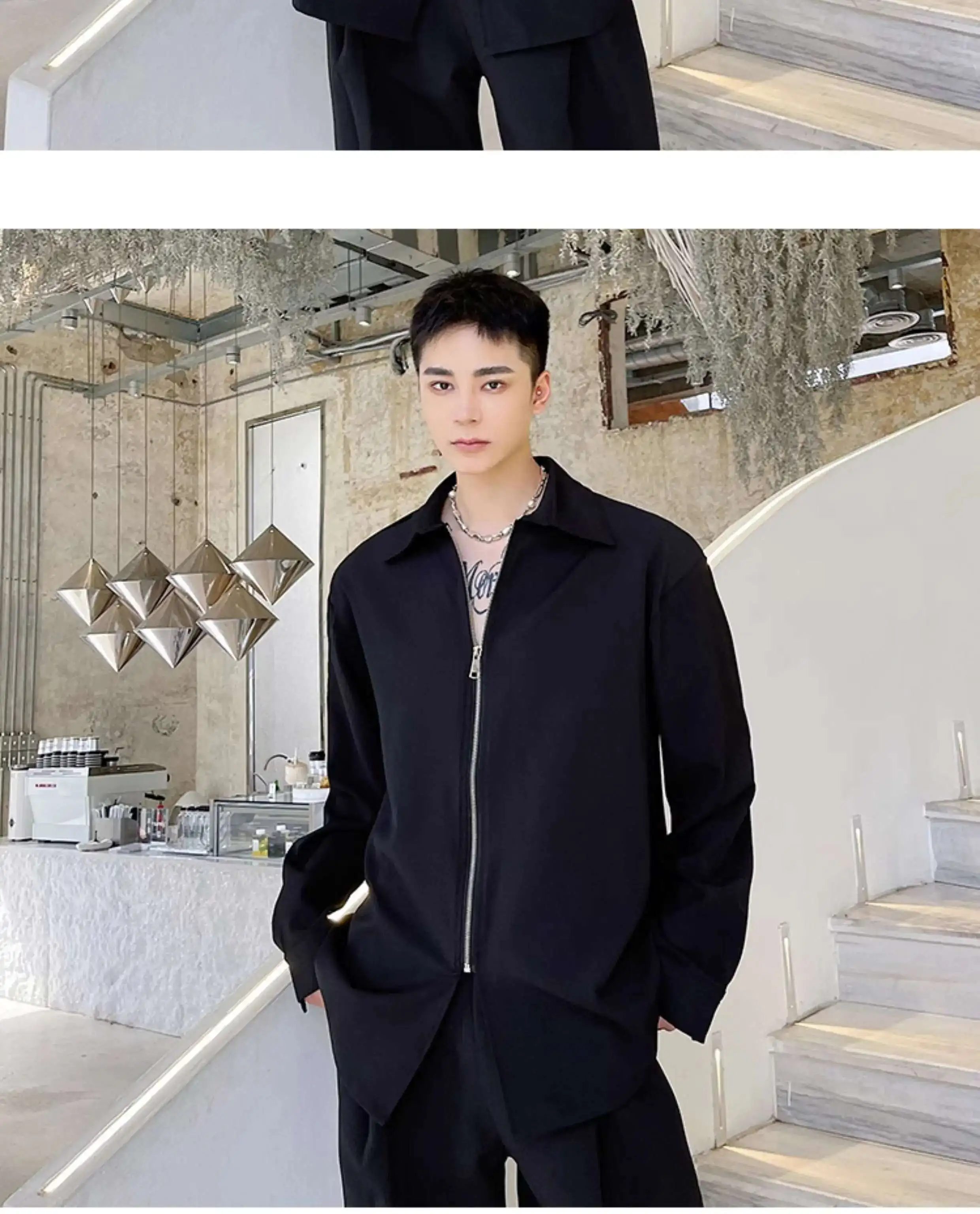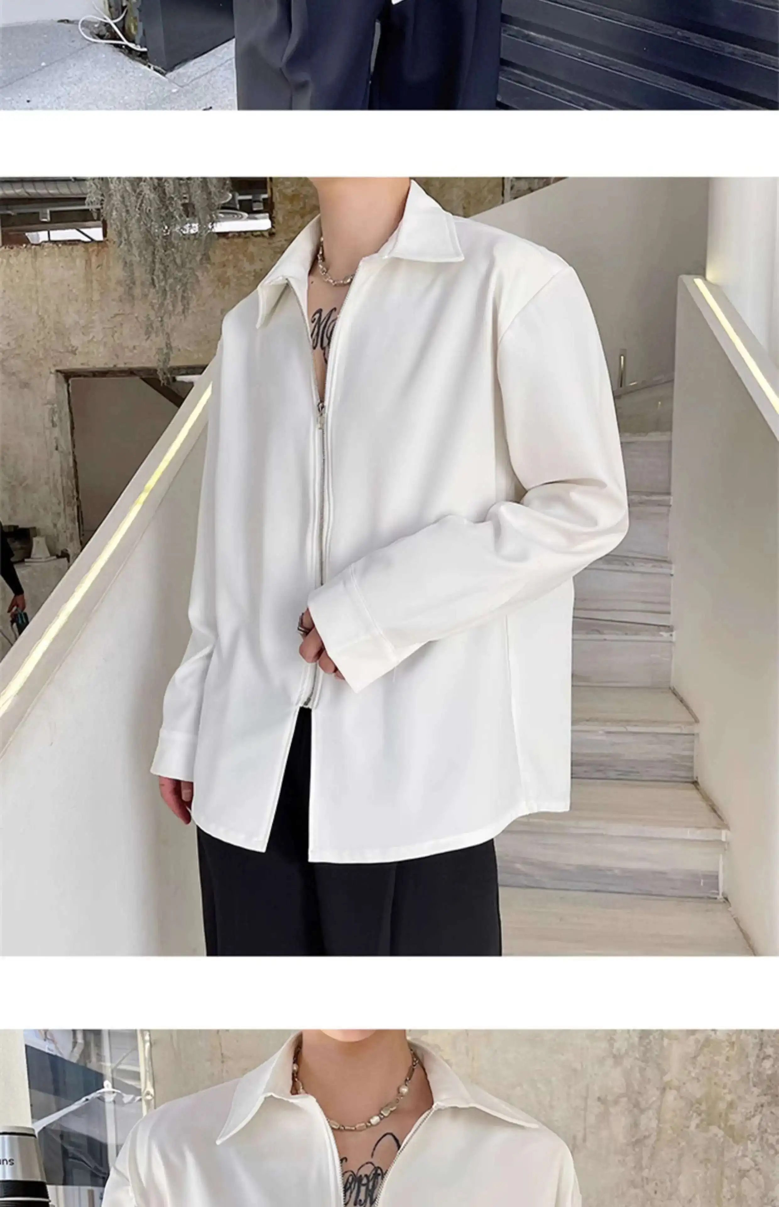 AIDASE - Men's Long Sleeves Shirts New Korean Solid Color Trendy Casual Shoulder Pads Zipper Design Male Loose Shirts Spring