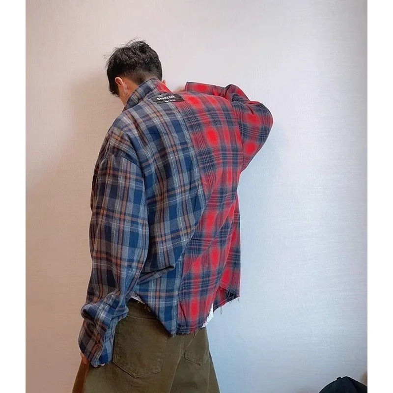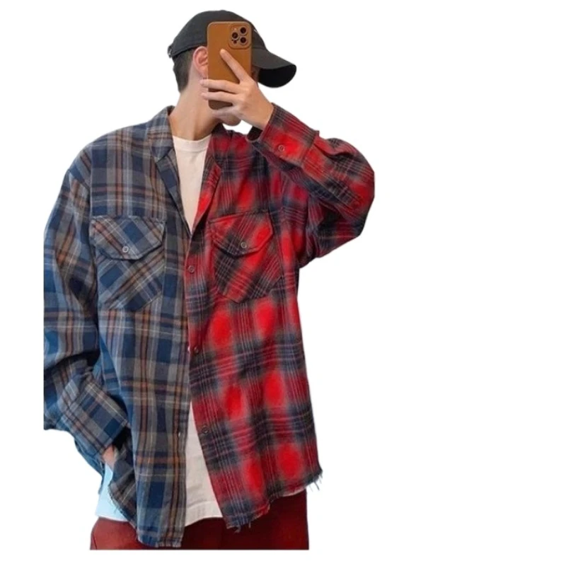 AIDASE - Men's Spliced Long Sleeved Shirt Unique Contrasting Color Design Shirt Coat American High Street Style Male Clothing