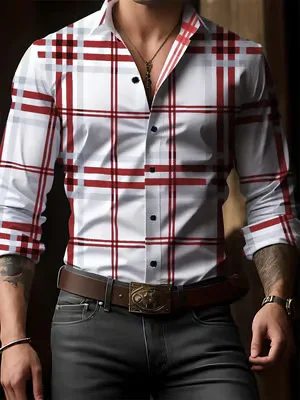 AIDASE - New Casual Digital Printing Plaid Men's Long-Sleeved Shirt
