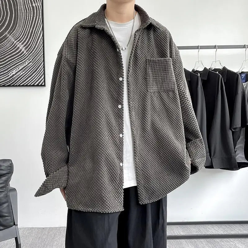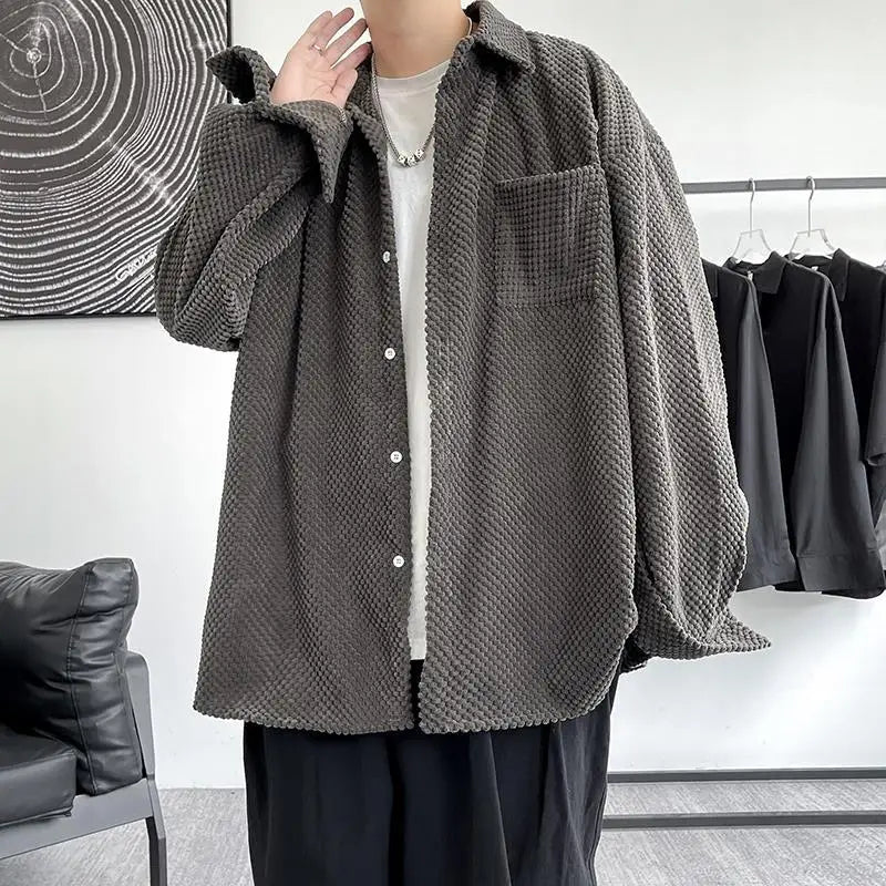 Aidase New Korean Style Shirt Plus Size 5Xl-M Corduroy Shirts Men Harajuku Pineapple Cubes Mens Shirt Long Sleeve Streetwear Fashions