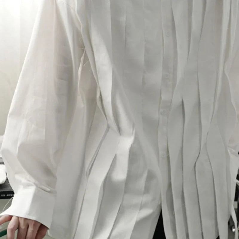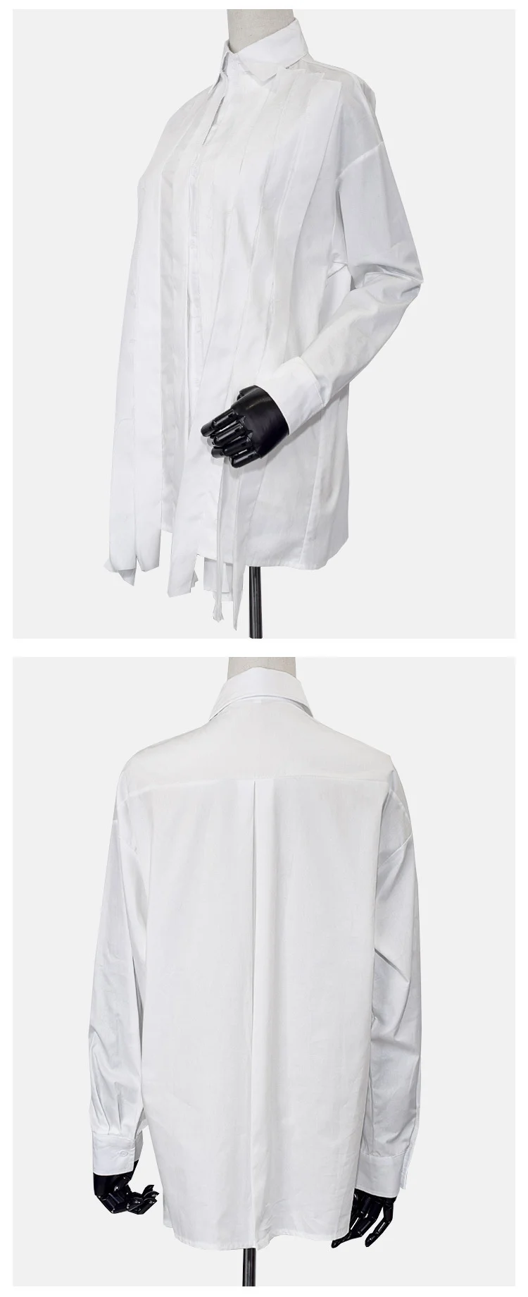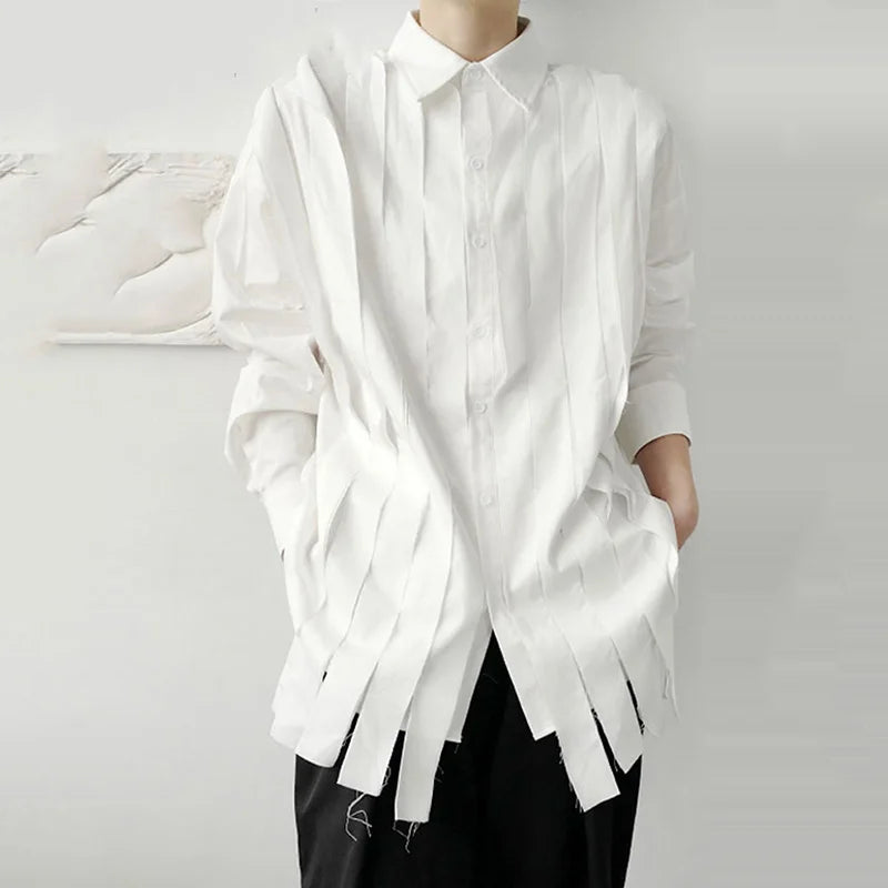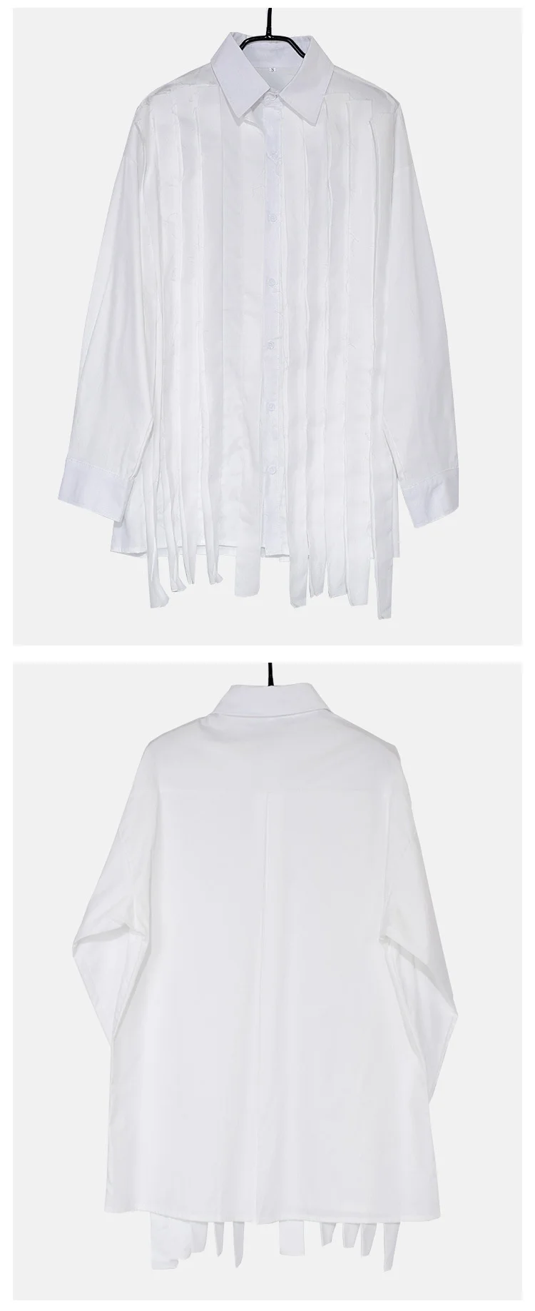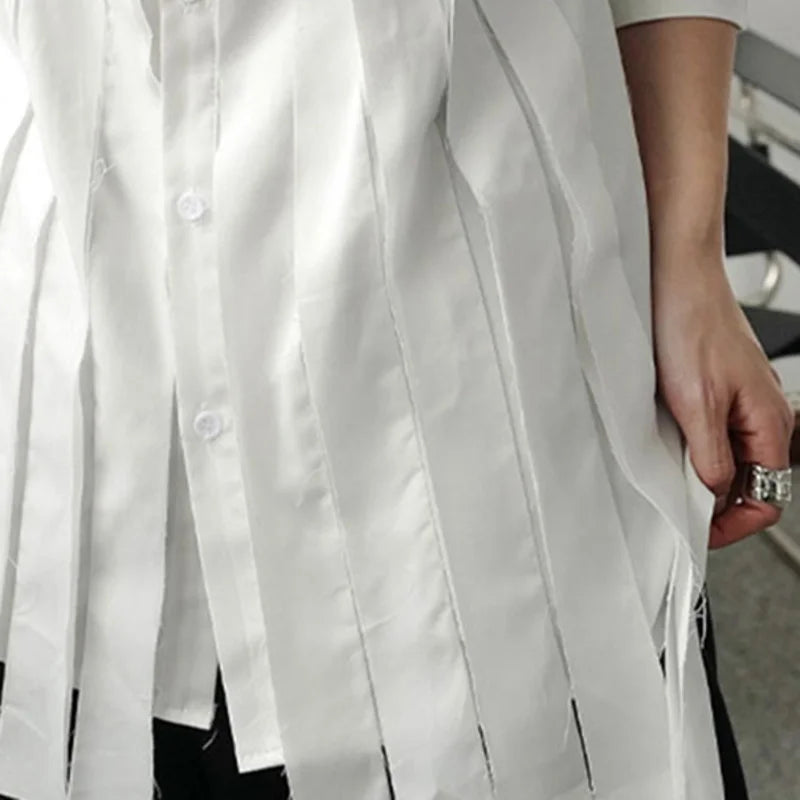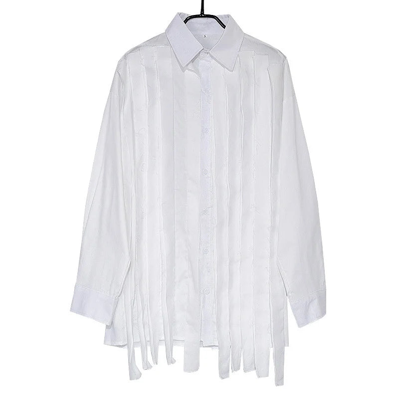 Aidase New Large Loose Patchwork Fringed Ribbon Long Sleeve Irregular Shirt Single Breasted Simple Temperament
