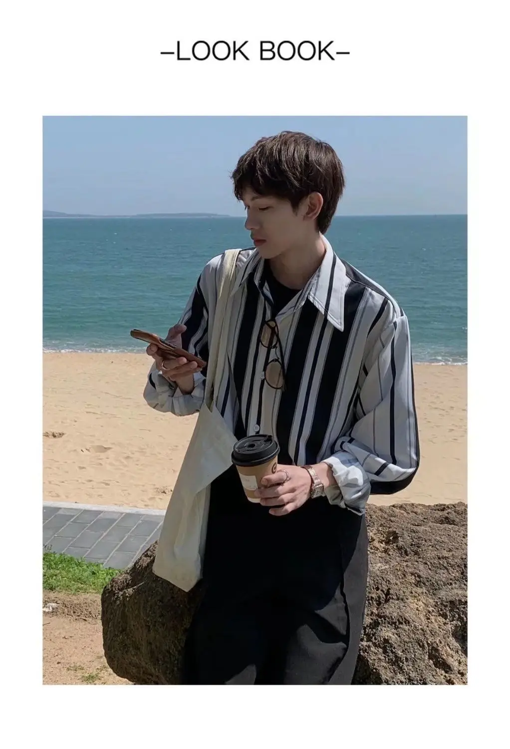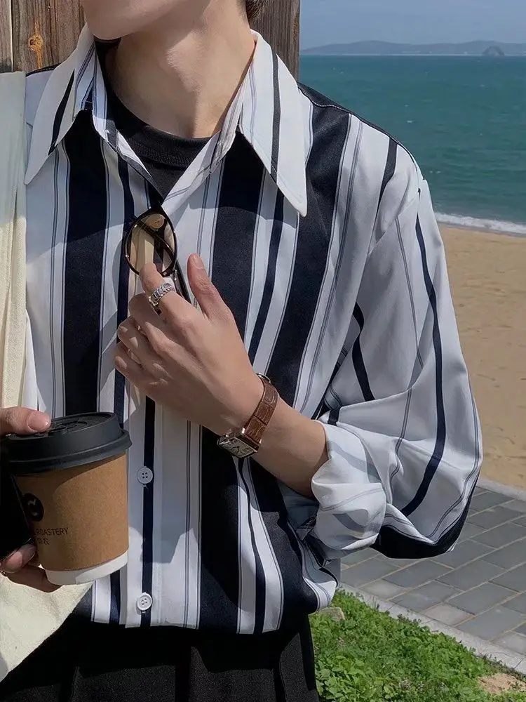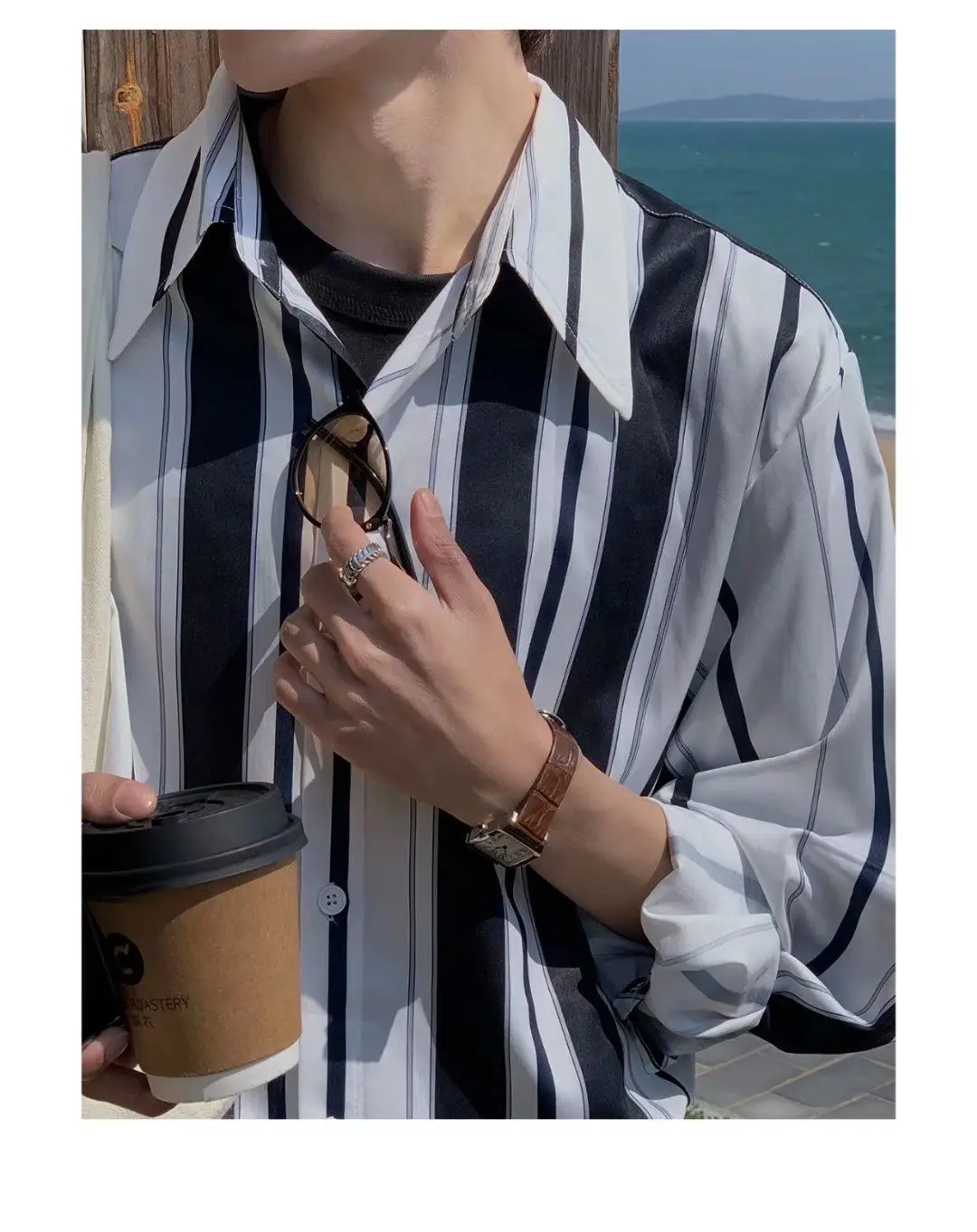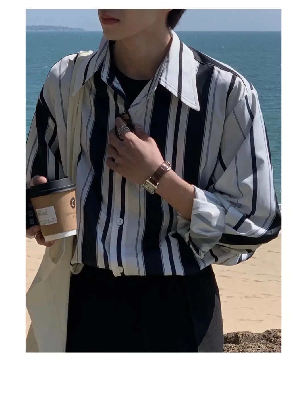 AIDASE - New Spring and Autumn Fashion Trend Men's Polo Neck Stripe Contrast Color Long Sleeve Handsome Versatile Casual Loose Shirt