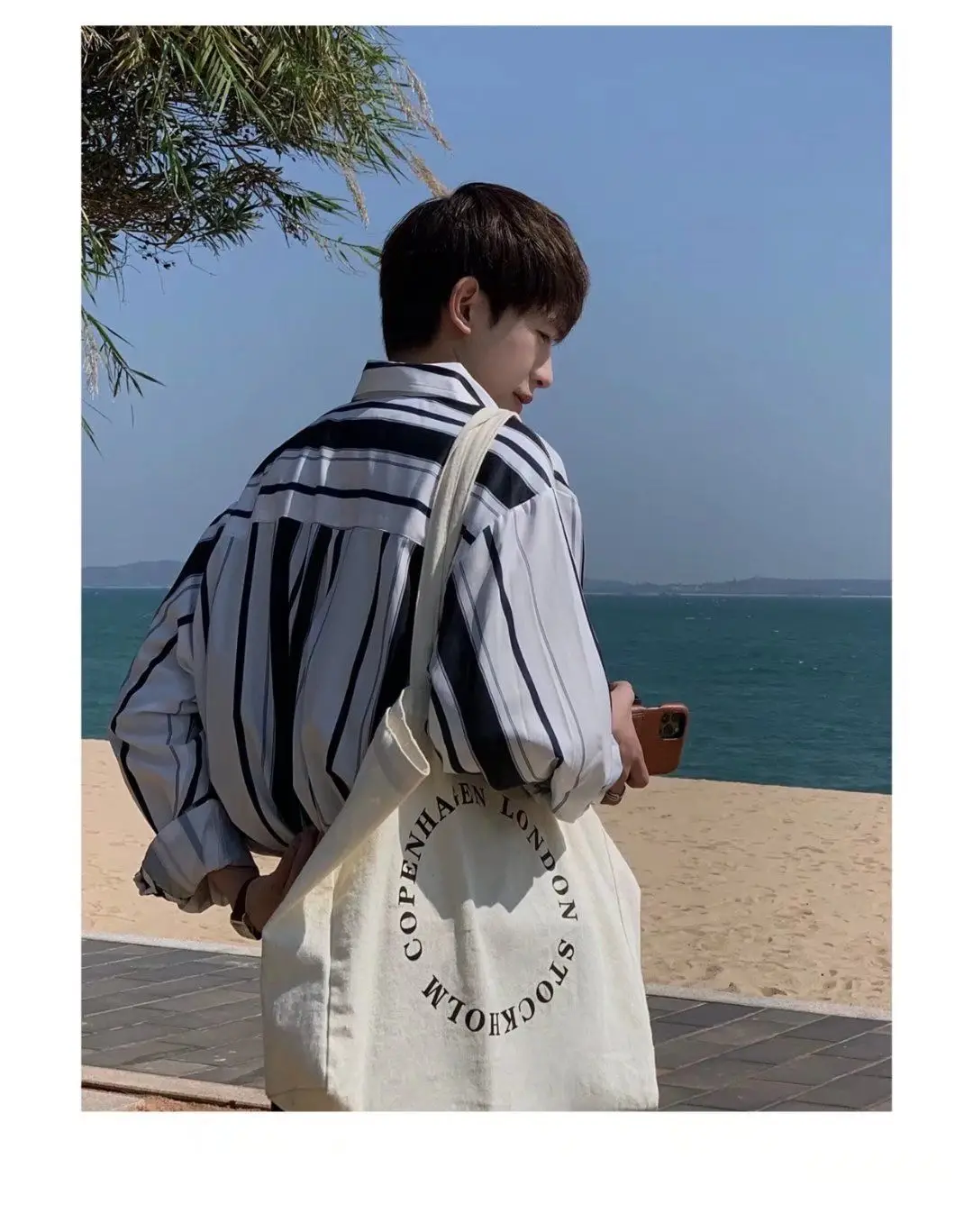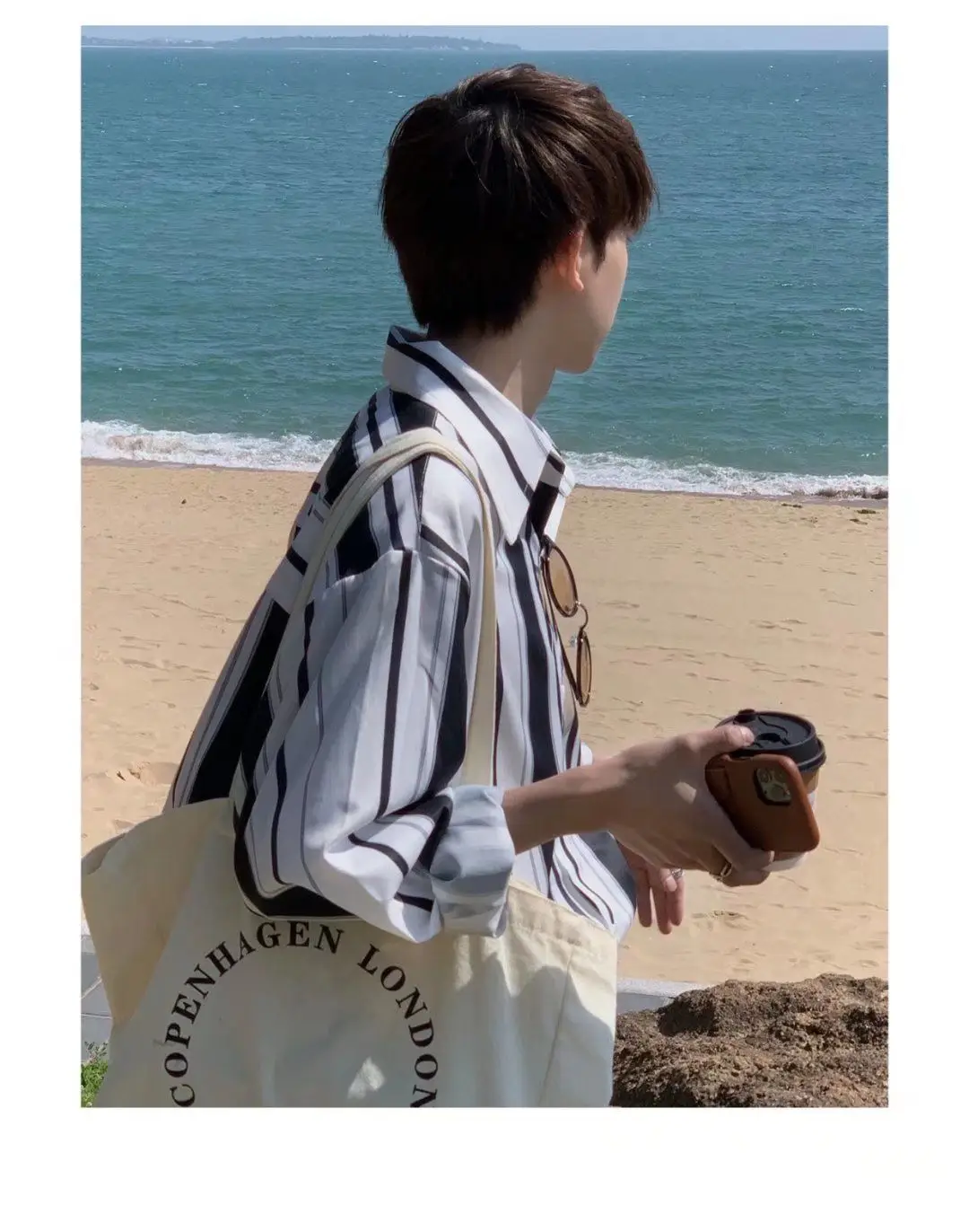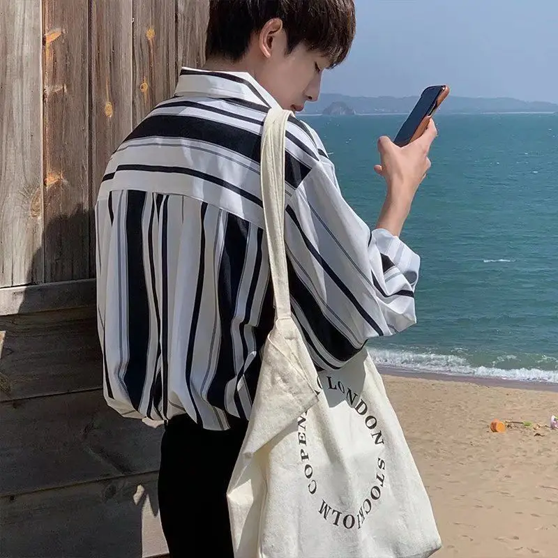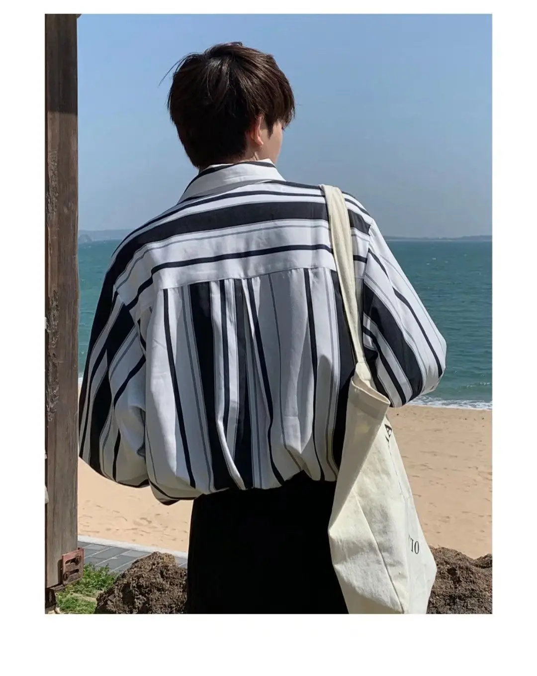 AIDASE - New Spring and Autumn Fashion Trend Men's Polo Neck Stripe Contrast Color Long Sleeve Handsome Versatile Casual Loose Shirt