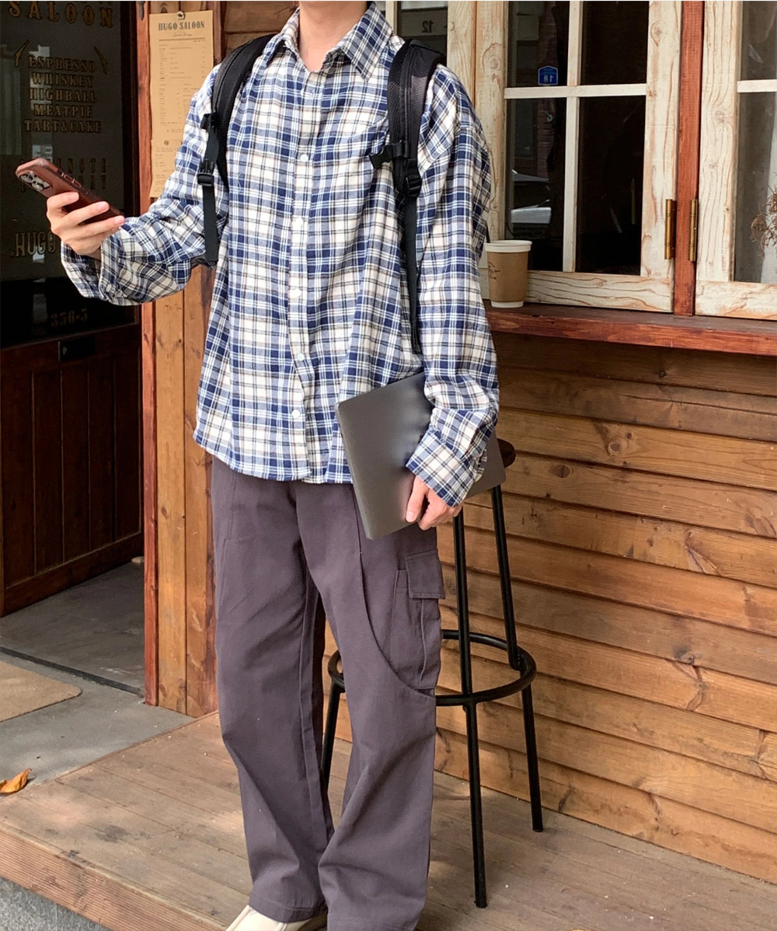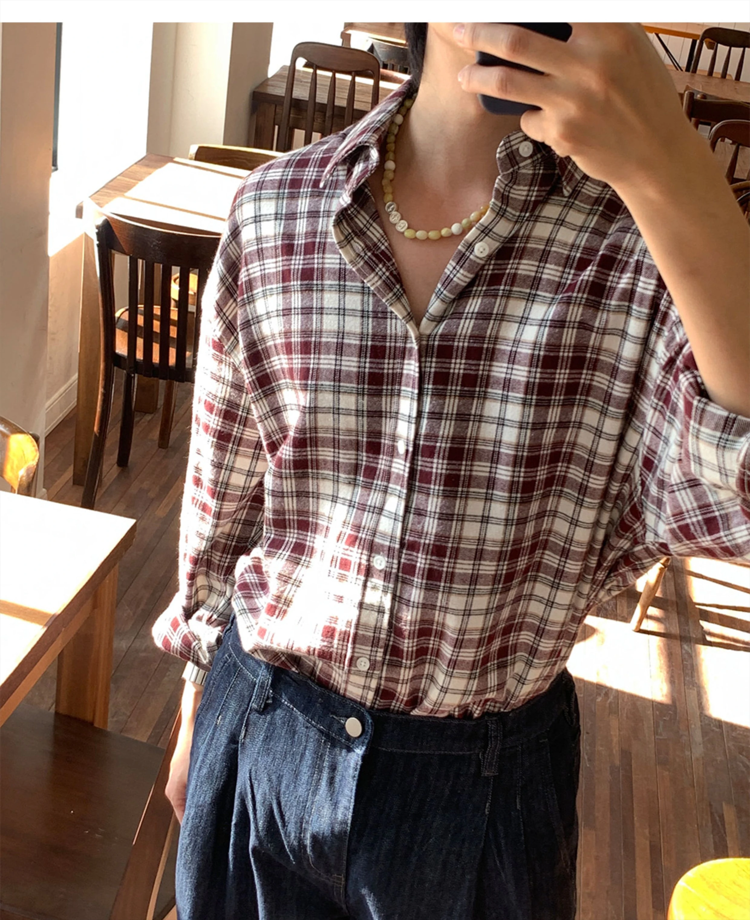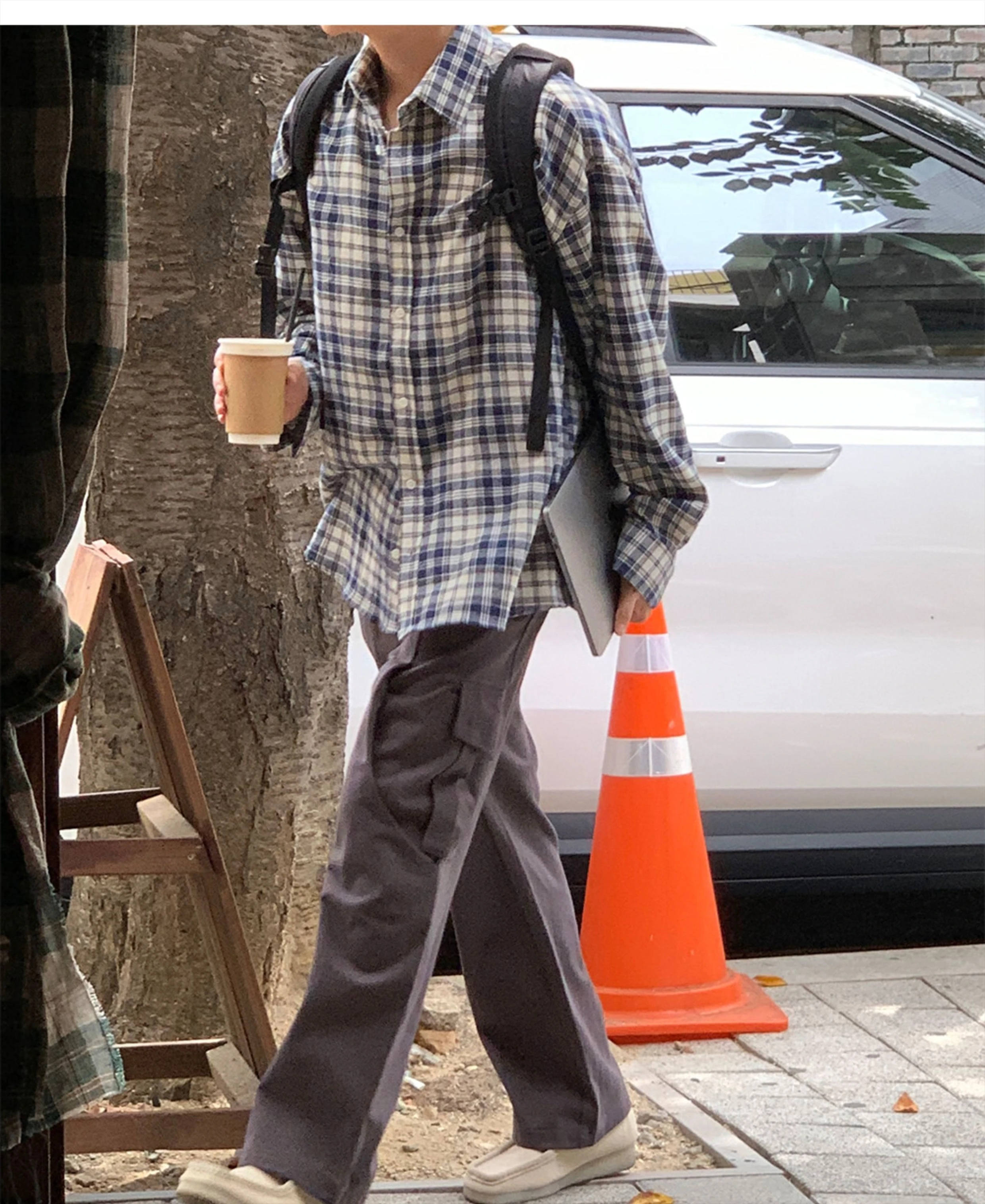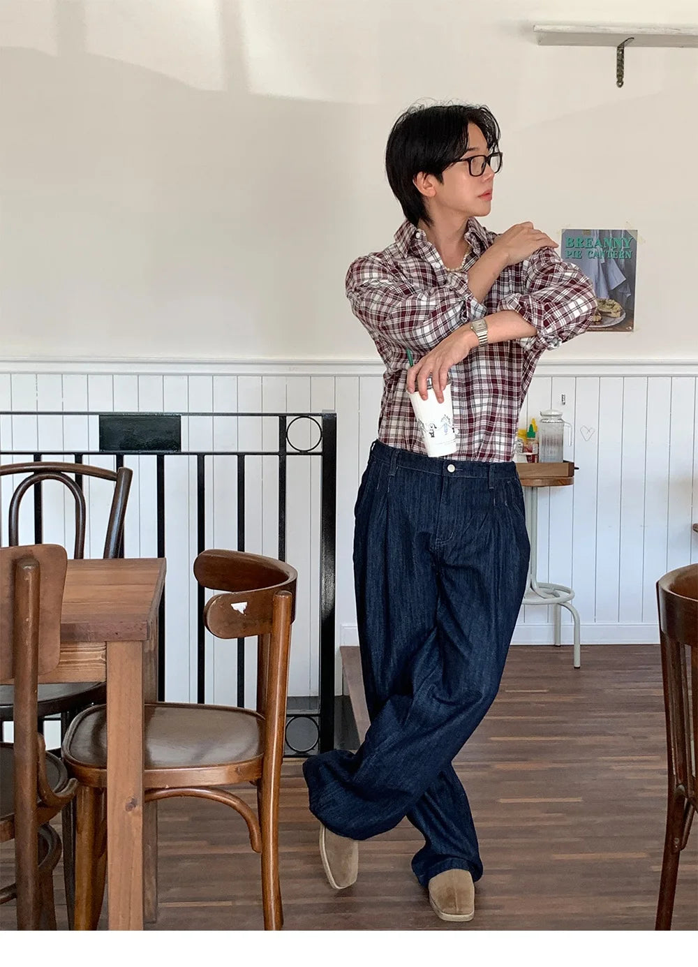 AIDASE - Oversized Men's Plaid Long Sleeve Korean Style Shirt, Trendy Loose Plaid Shirt, Handsome Jacket, Unisex American Retro Plaid