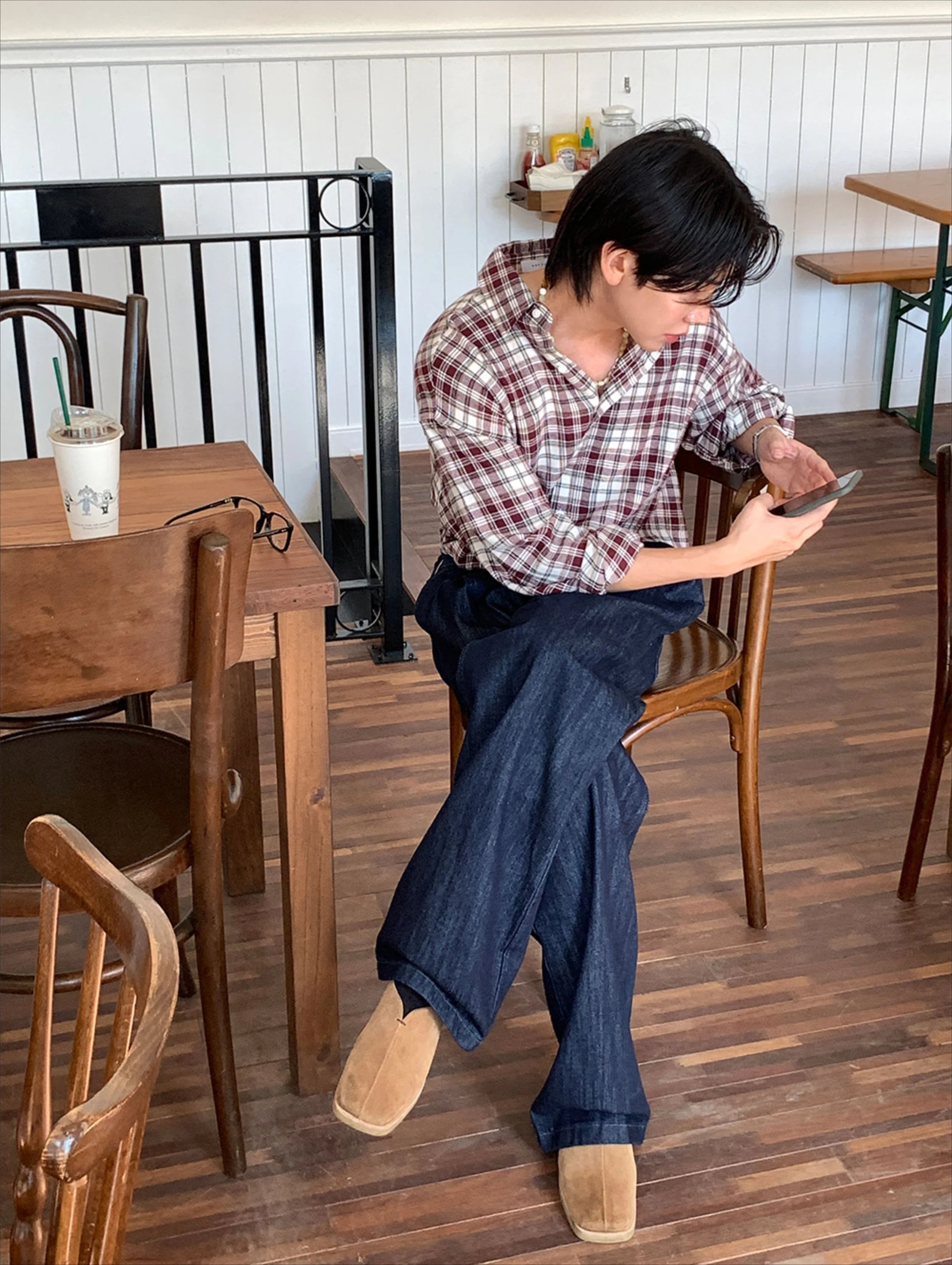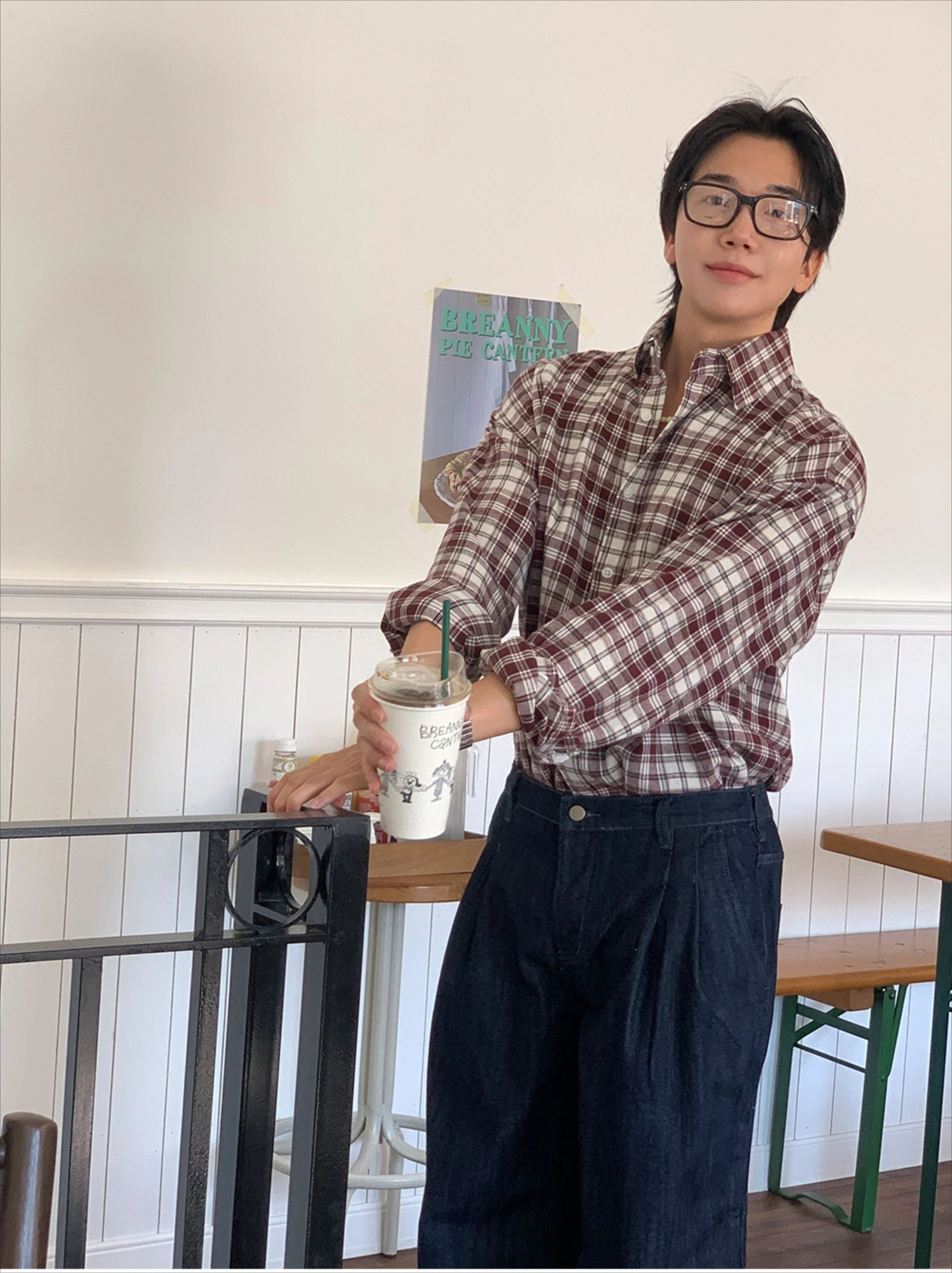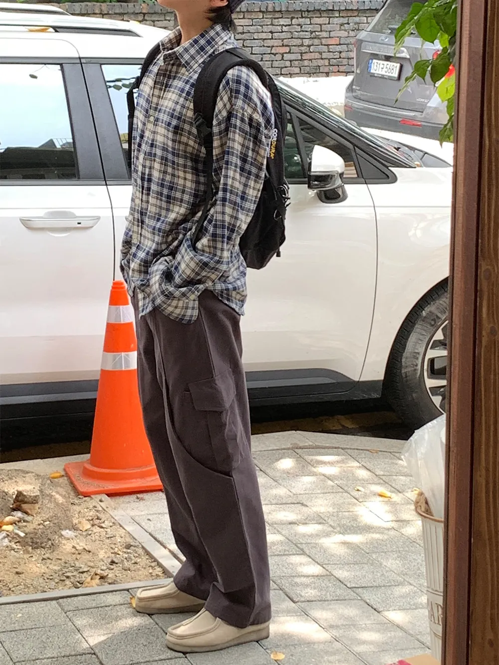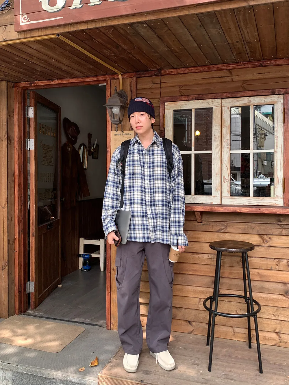 AIDASE - Oversized Men's Plaid Long Sleeve Korean Style Shirt, Trendy Loose Plaid Shirt, Handsome Jacket, Unisex American Retro Plaid
