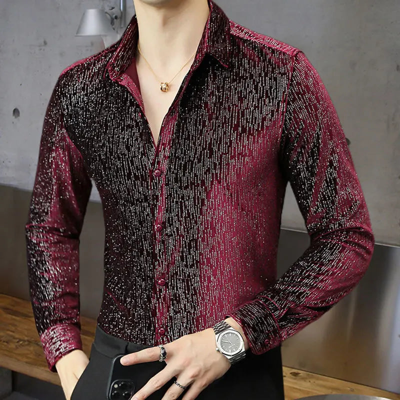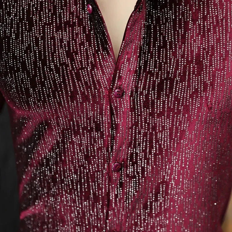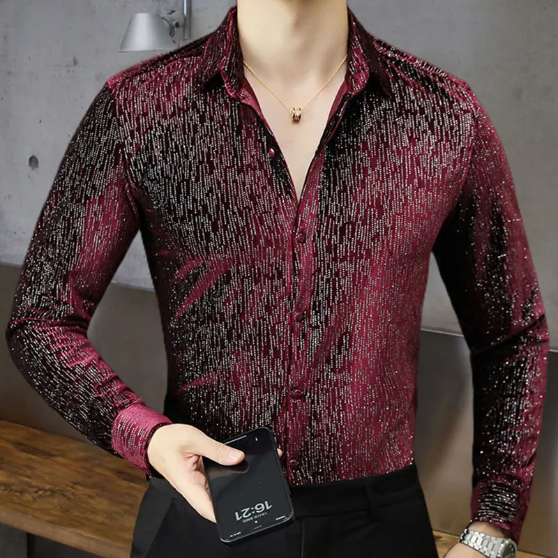 Shiny Shirt Men Fancy Shirt Men Long Sleeve Shirt Ropa De Hombre Camisa Social Masculina Manga Longa Dark Red Ropa Hombre Casual