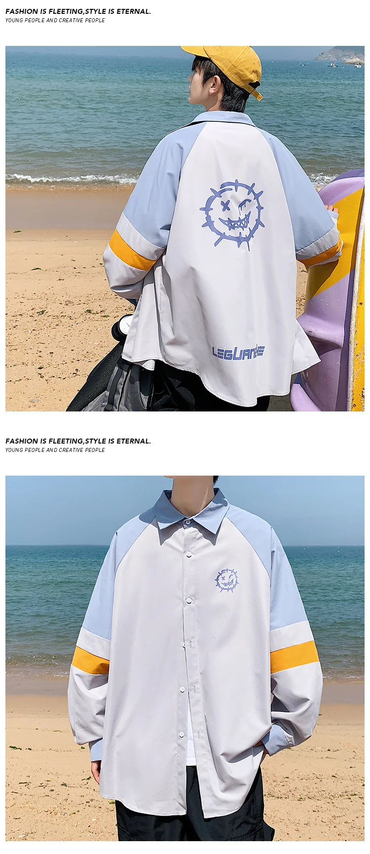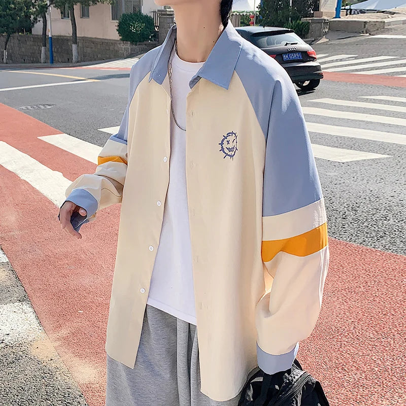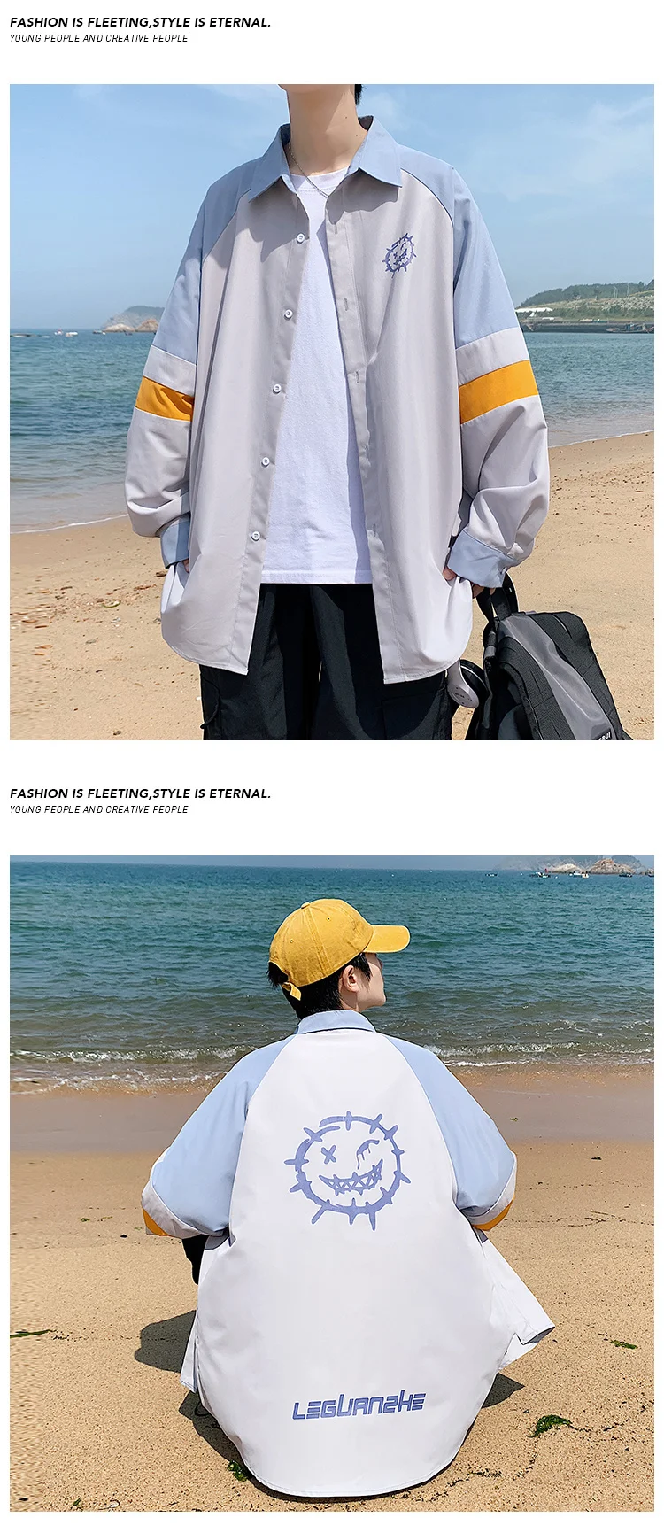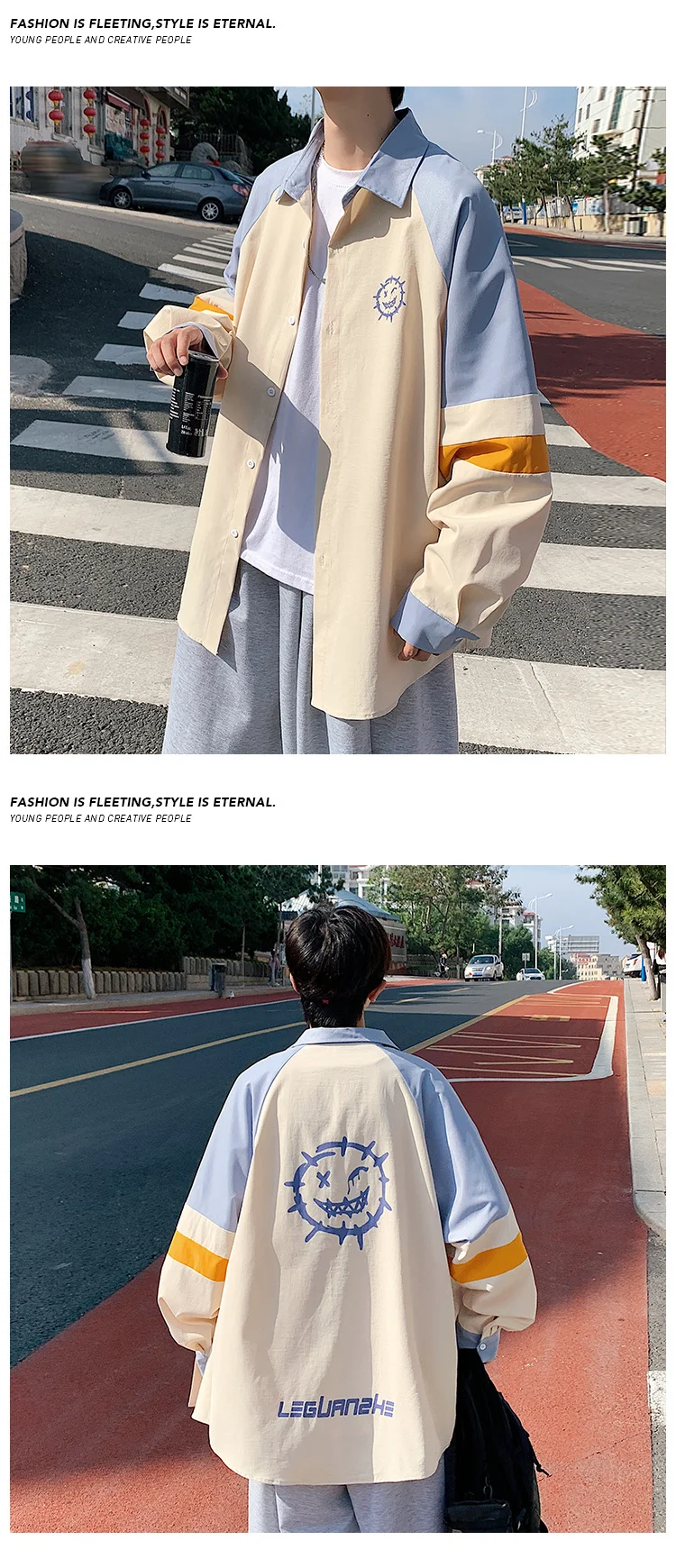 Aidase Shirt men's spring and Autumn New Korean fashion ins large loose splicing contrast casual lining Jacket Genuine Promotion