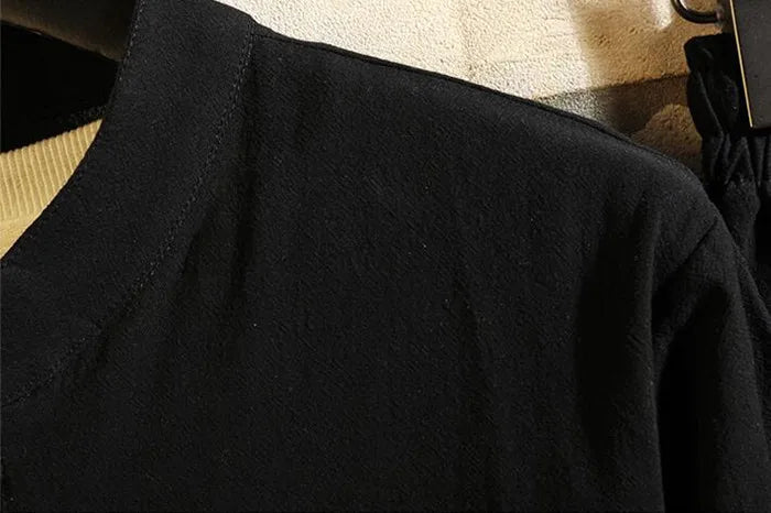 AIDASE - (Shirt + trousers) spring Chinese Style men shirt Cotton and linen shirts men's casual shirts A set of clothes size M-5XL