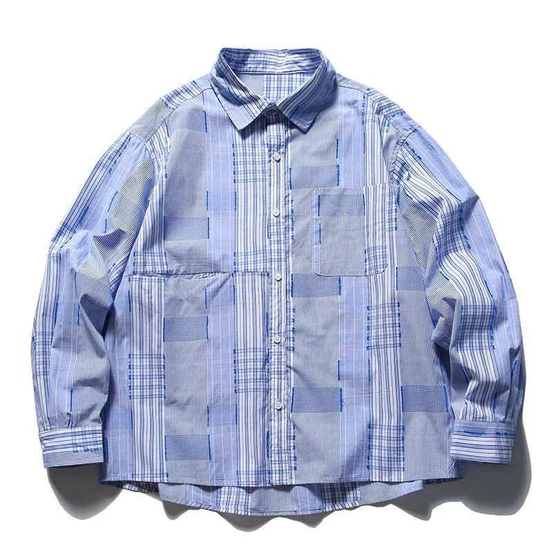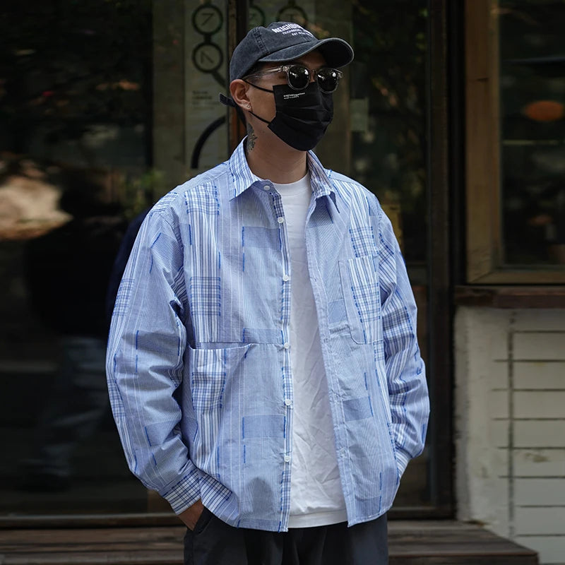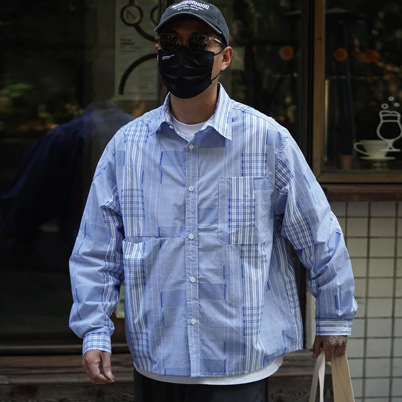 Aidase Spring New Japan fashion Retro Patchwork Plaid Long sleeve Shirts All-Matching Men's Shirt Casual Outerwear