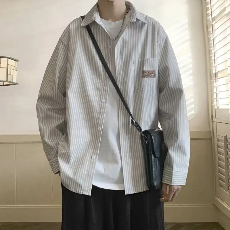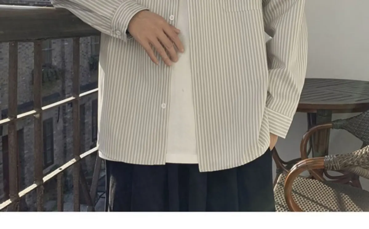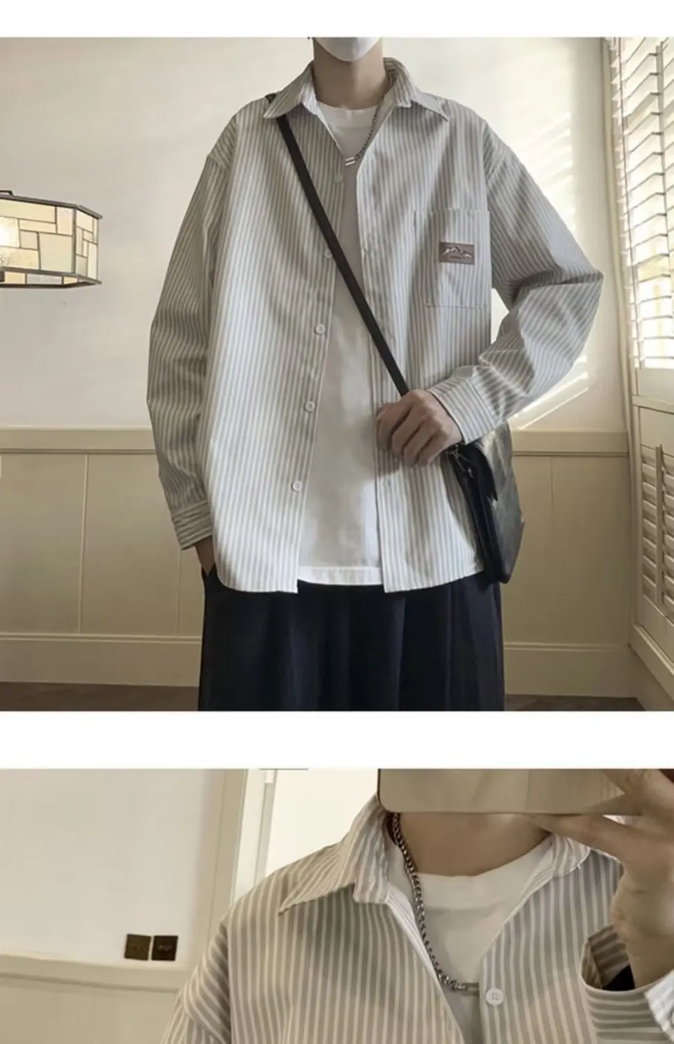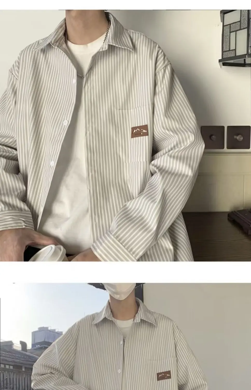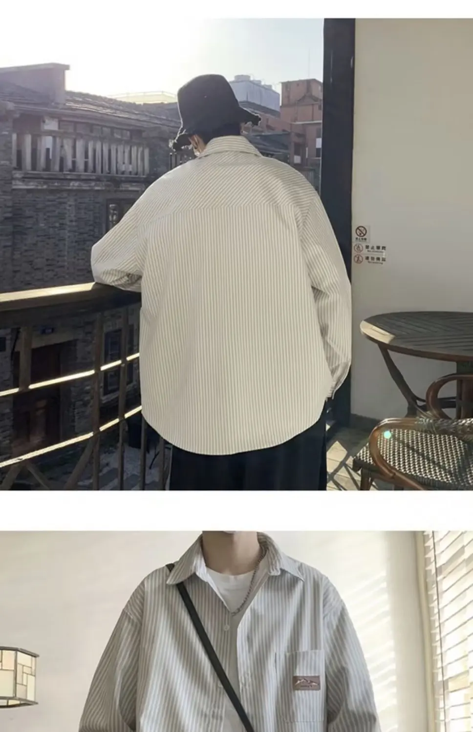 Aidase Striped Shirt Men's Long-sleeved Retro Handsome Loose Casual Versatile Trendy Jacket
