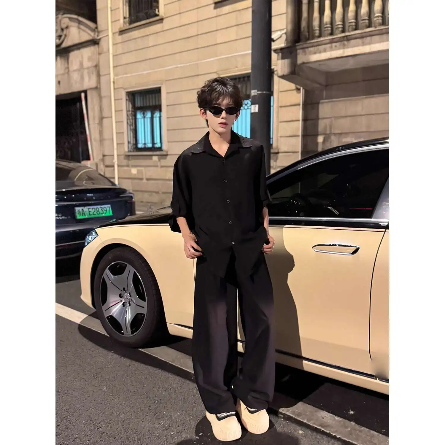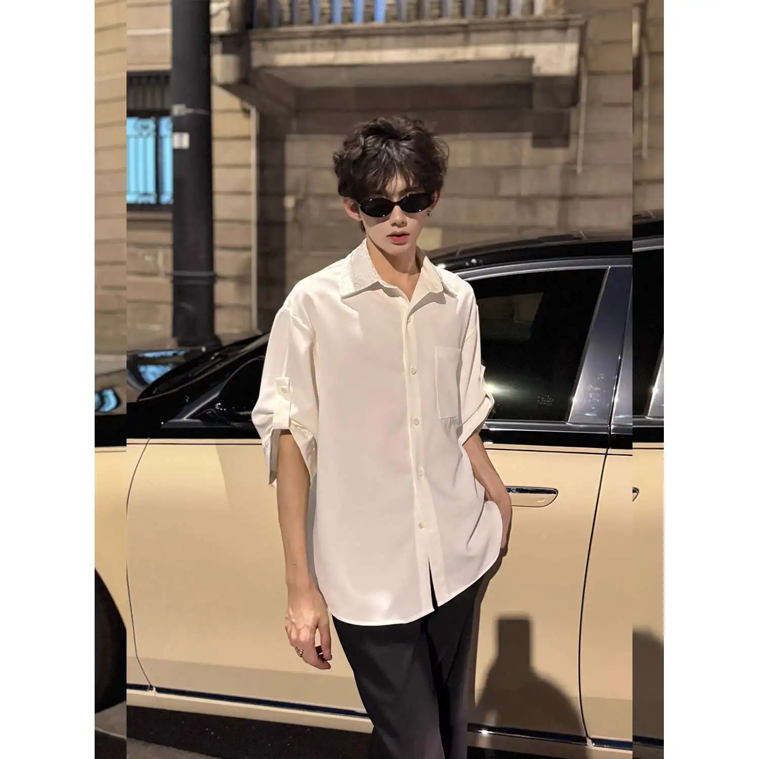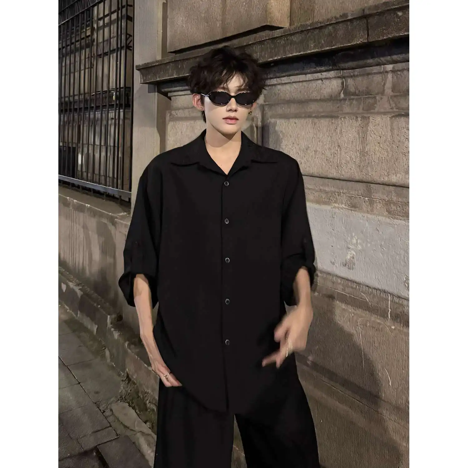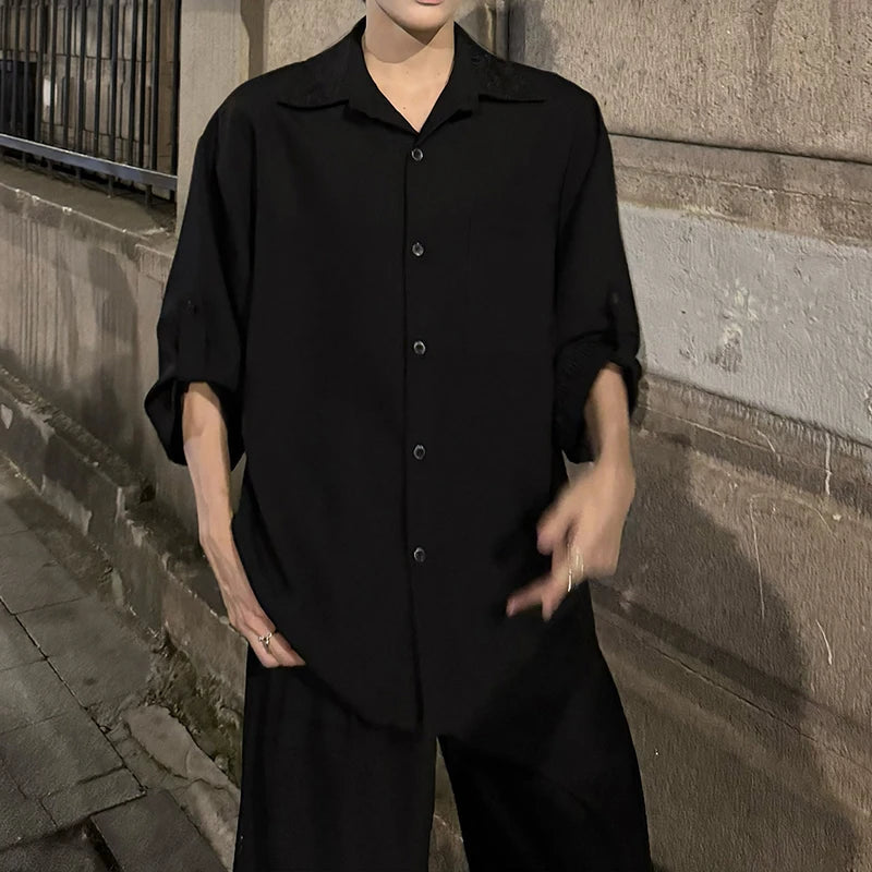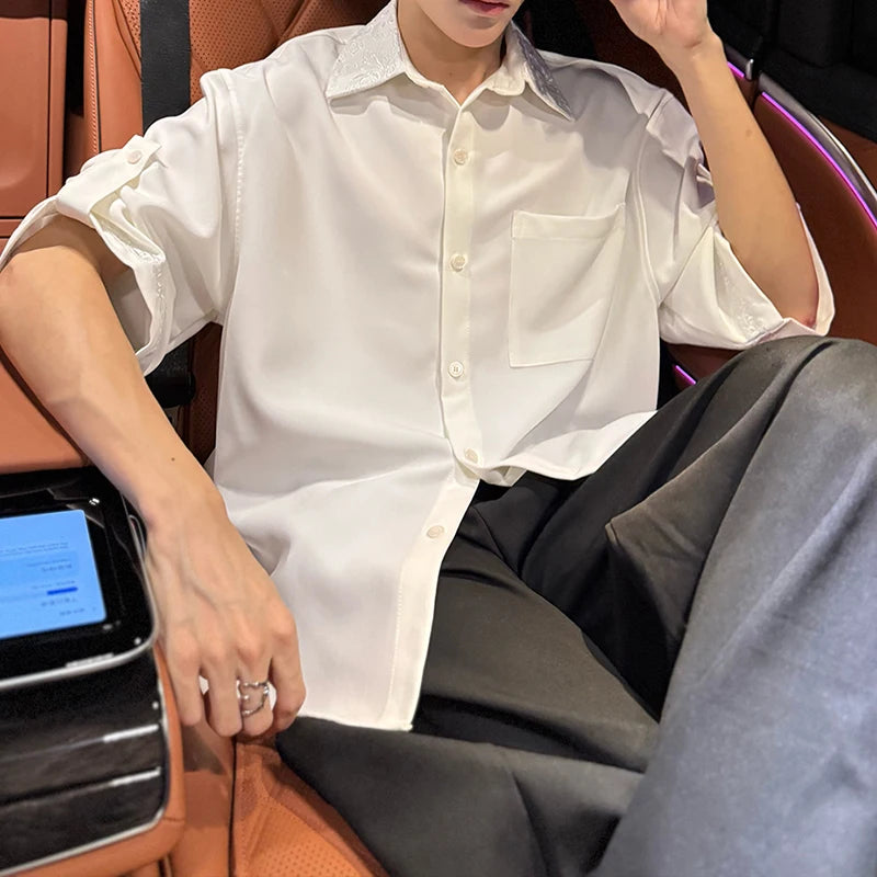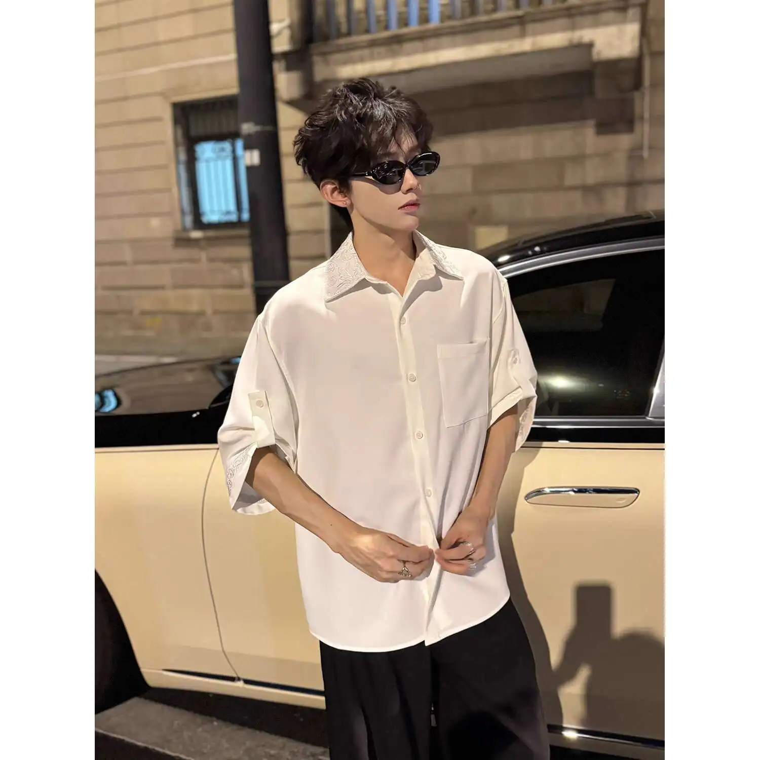 AIDASE - Summer New Men's Shirt Three-Quarter Sleeve Embroidery Design Fashion Versatile Lapel Single Breasted Male Blouse