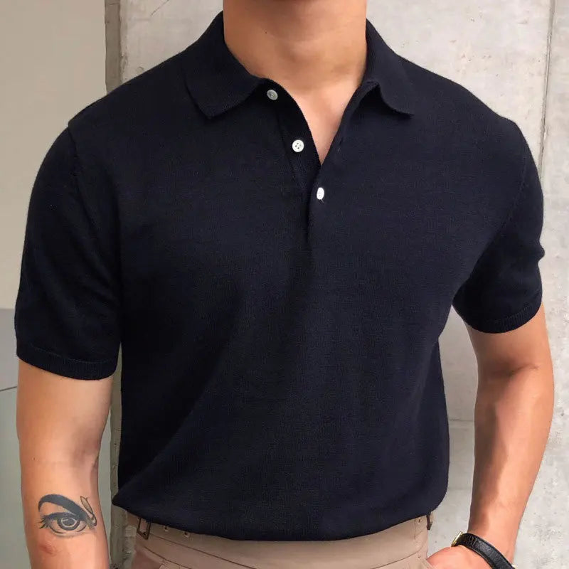Summer Simple Solid Color Casual Slim Lapel Polo Knit Breathable Polo Camisa Hombre British Men's Shirt Mannen Polo