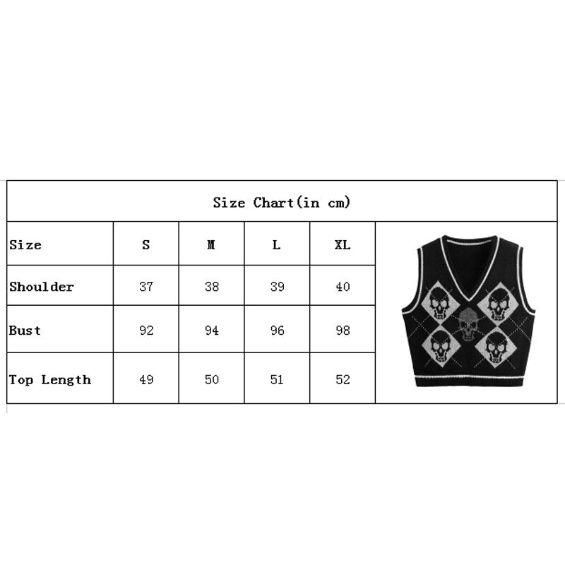 Aidase Y2K Gothic Knit Sweater Vest Skull Argyle Print Pattern Knitwear V-neck Pullover Fashion Jumper Top Women Halloween Streetwear