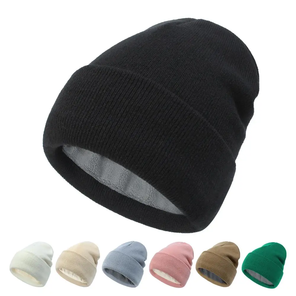 Aidase Winter Soft Thick Fleece Lining Beanie Hat for Men Women Warm Kniting Cuffed Beanie Outdoor Ski Hats Unisex Cycling Ski Caps