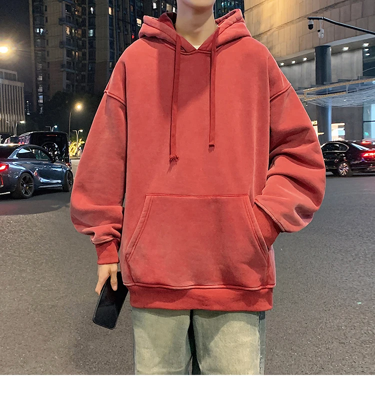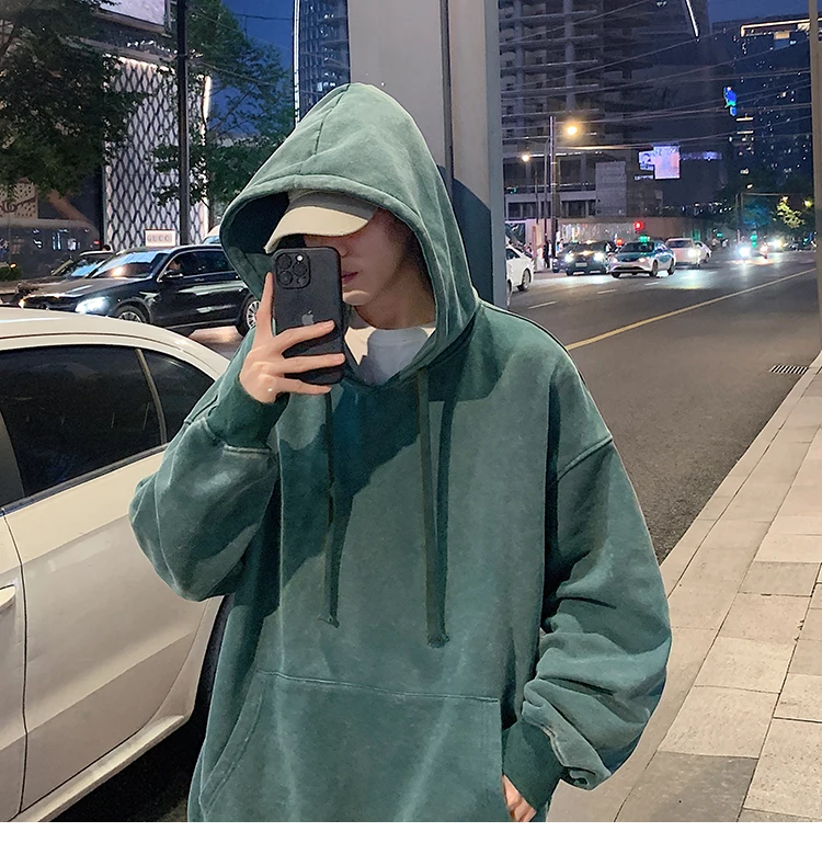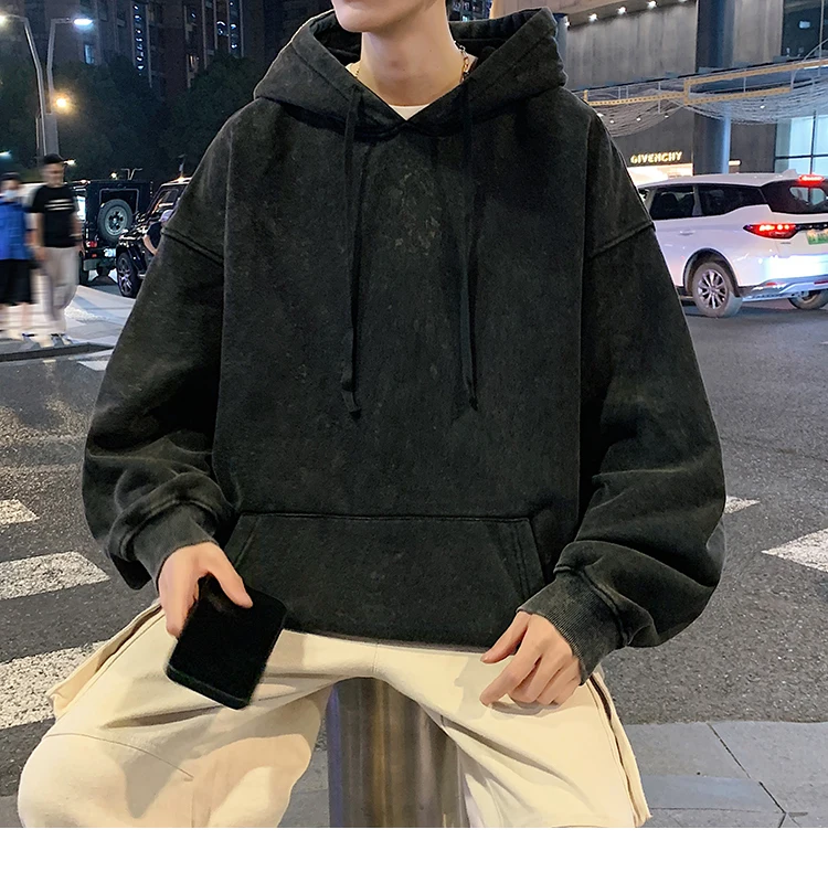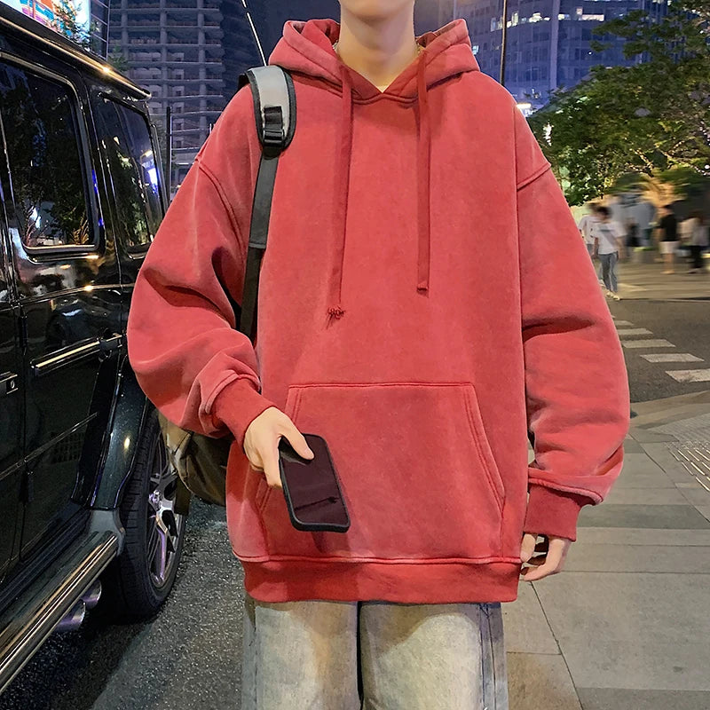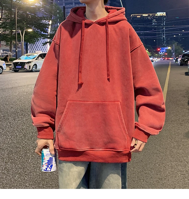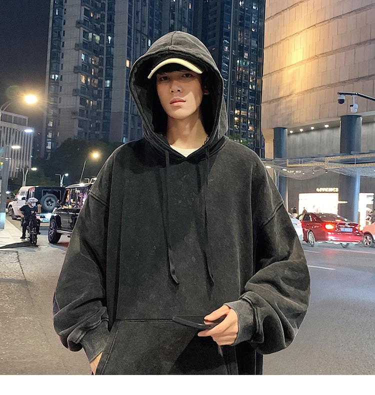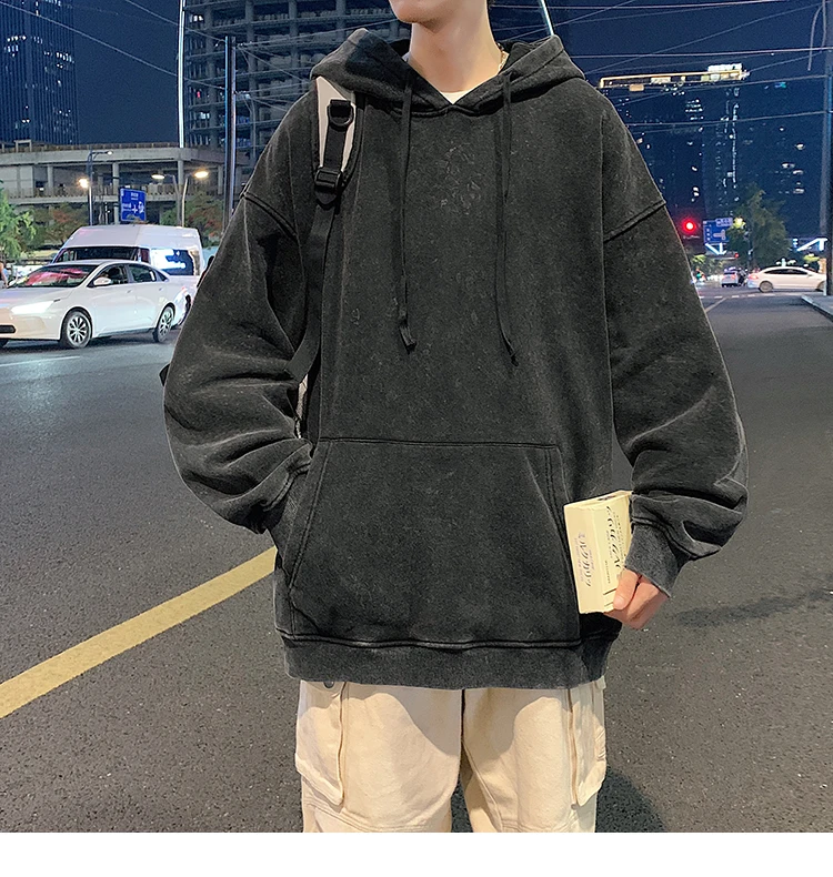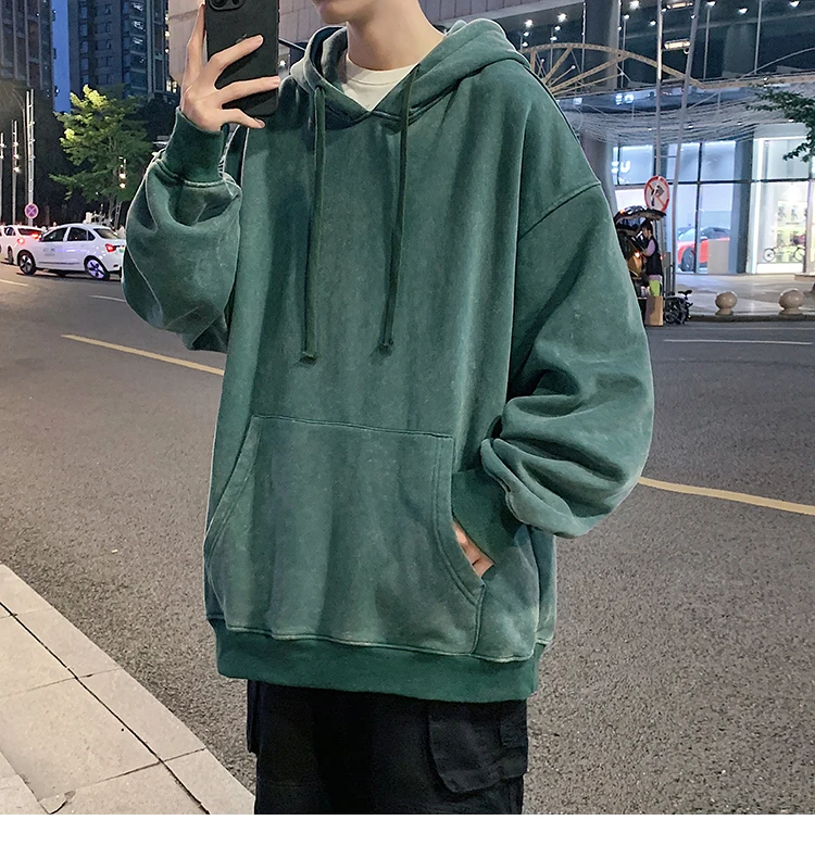 2024 Spring Autumn Men Hoodies Fashion Hip Hop Hooded Oversized Sweatshirt Solid Casual Streetwear Loose Hoody Sweatshirts M-5XL