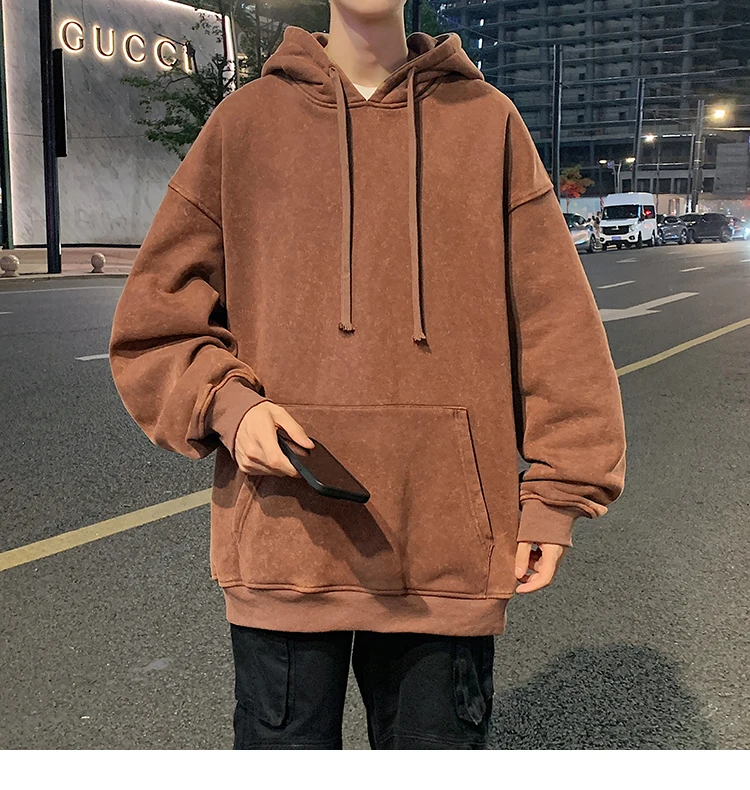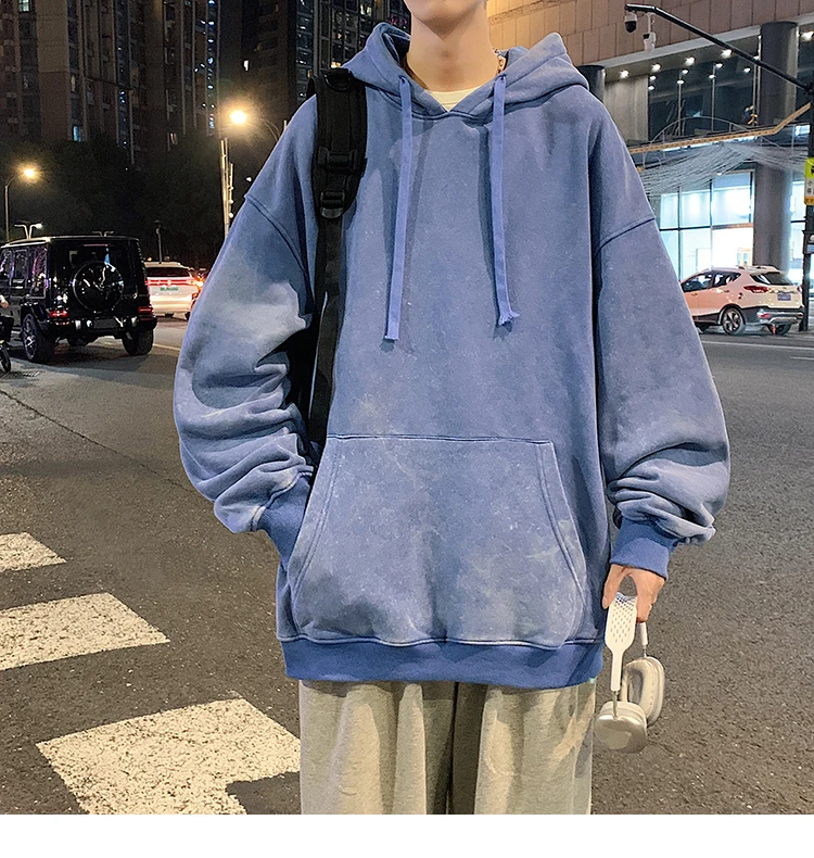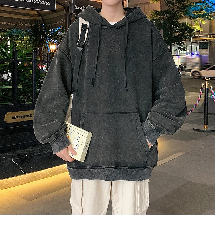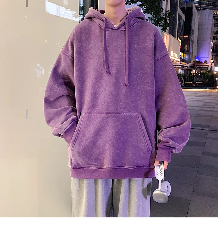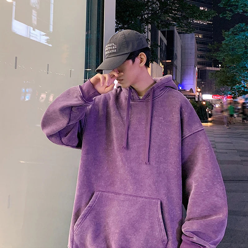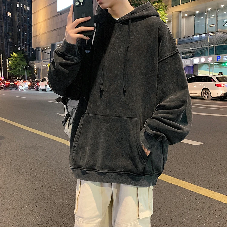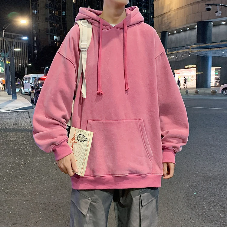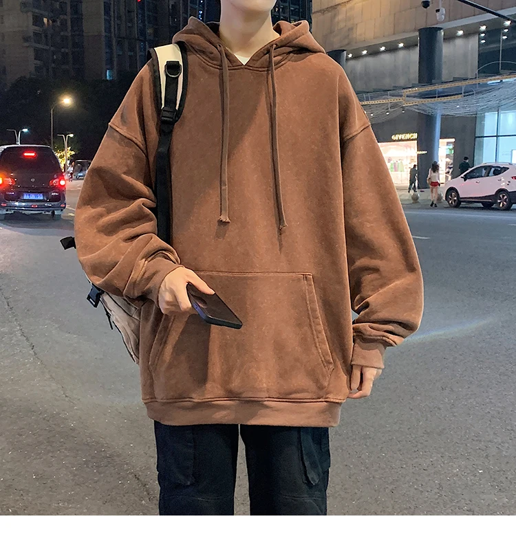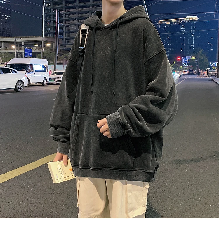 2024 Spring Autumn Men Hoodies Fashion Hip Hop Hooded Oversized Sweatshirt Solid Casual Streetwear Loose Hoody Sweatshirts M-5XL