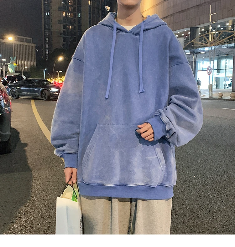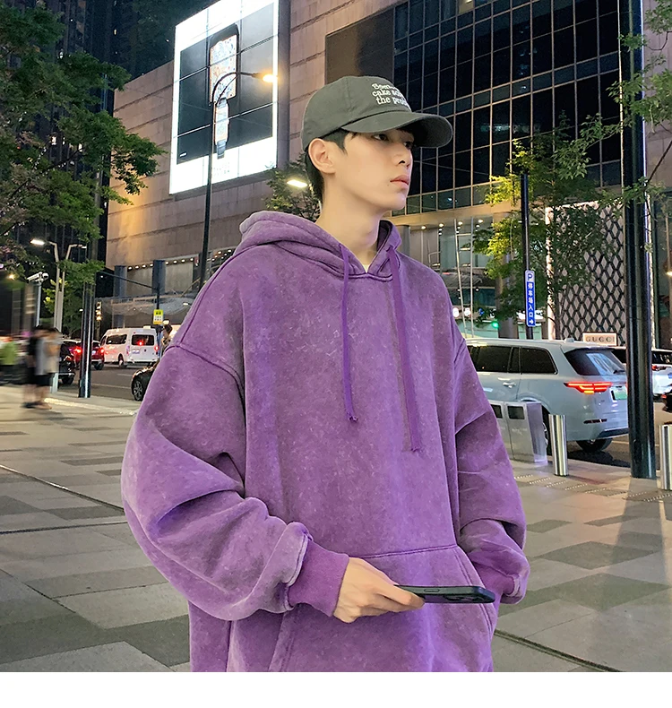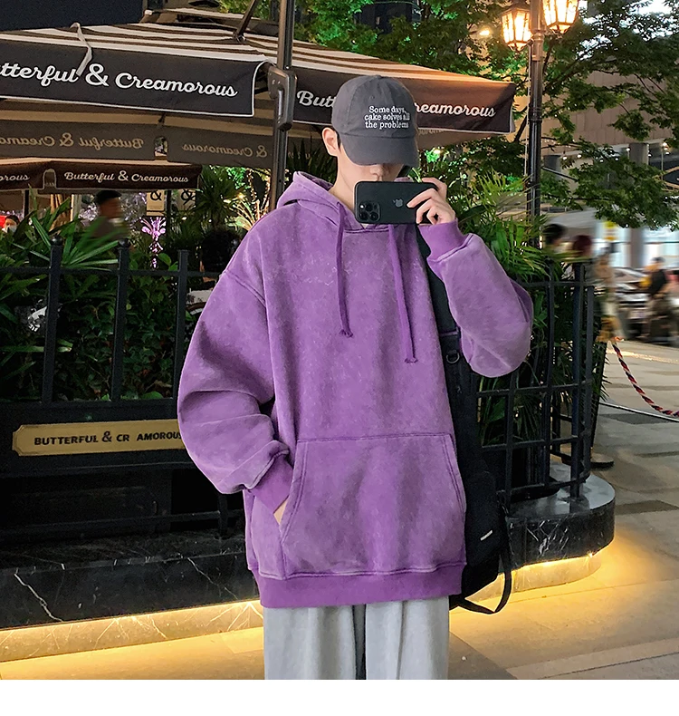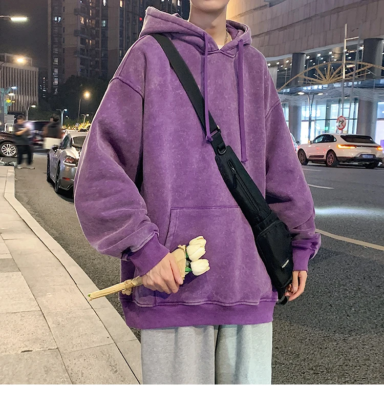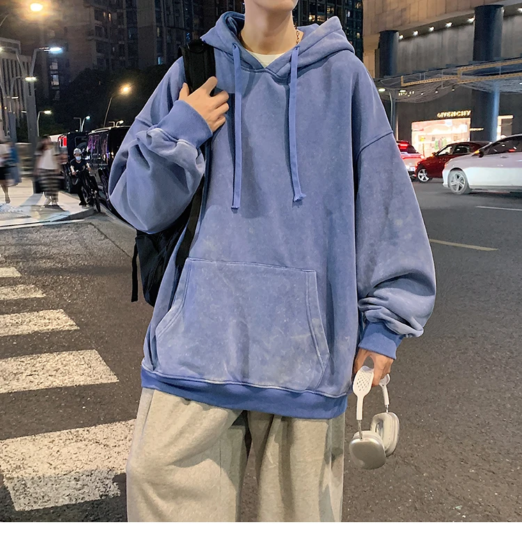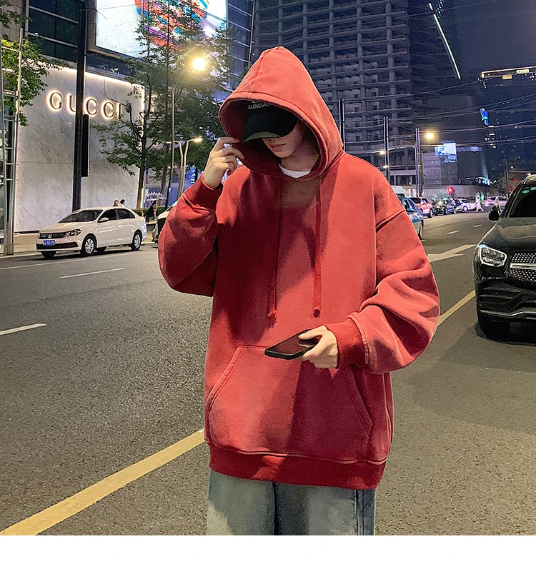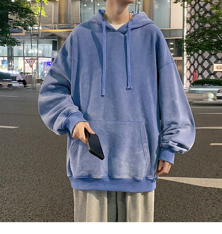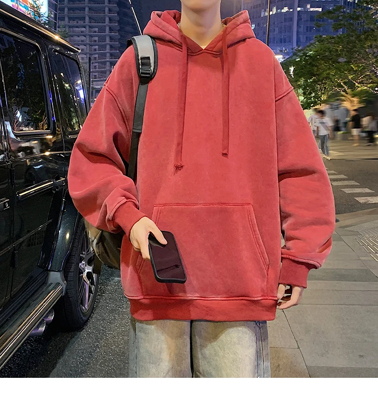 2024 Spring Autumn Men Hoodies Fashion Hip Hop Hooded Oversized Sweatshirt Solid Casual Streetwear Loose Hoody Sweatshirts M-5XL