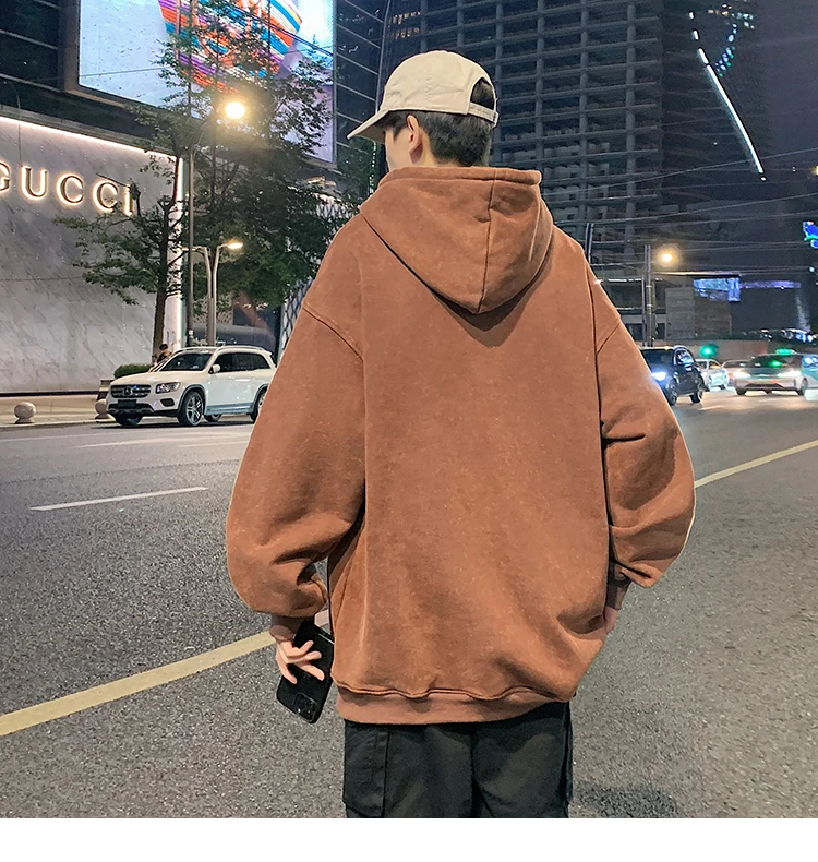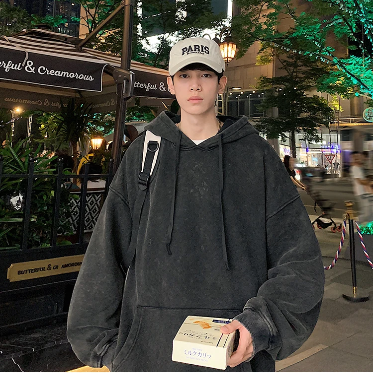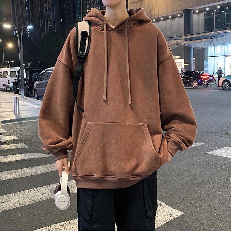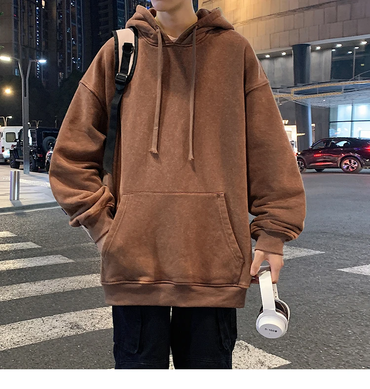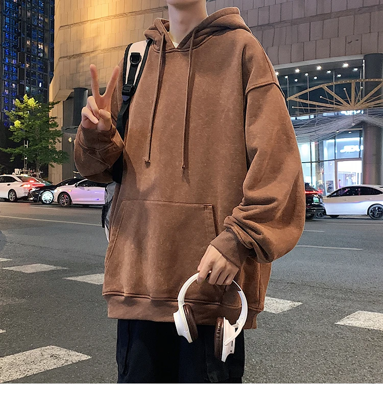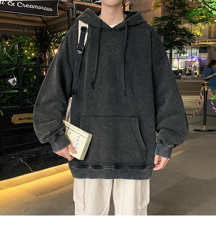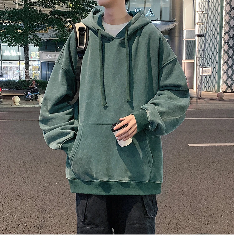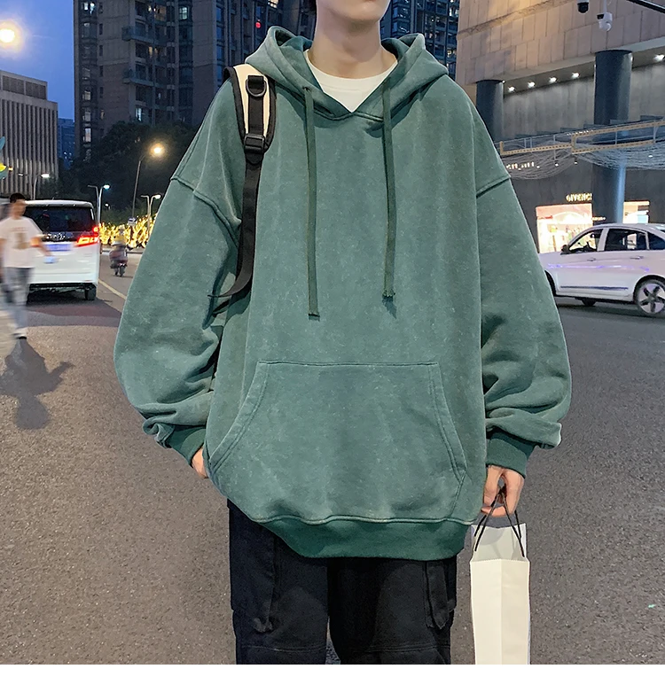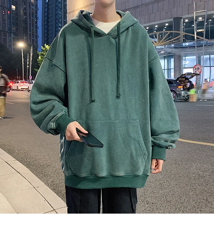 Aidase 2024 Spring Autumn Men Hoodies Fashion Hip Hop Hooded Oversized Sweatshirt Solid Casual Streetwear Loose Hoody Sweatshirts M-5XL