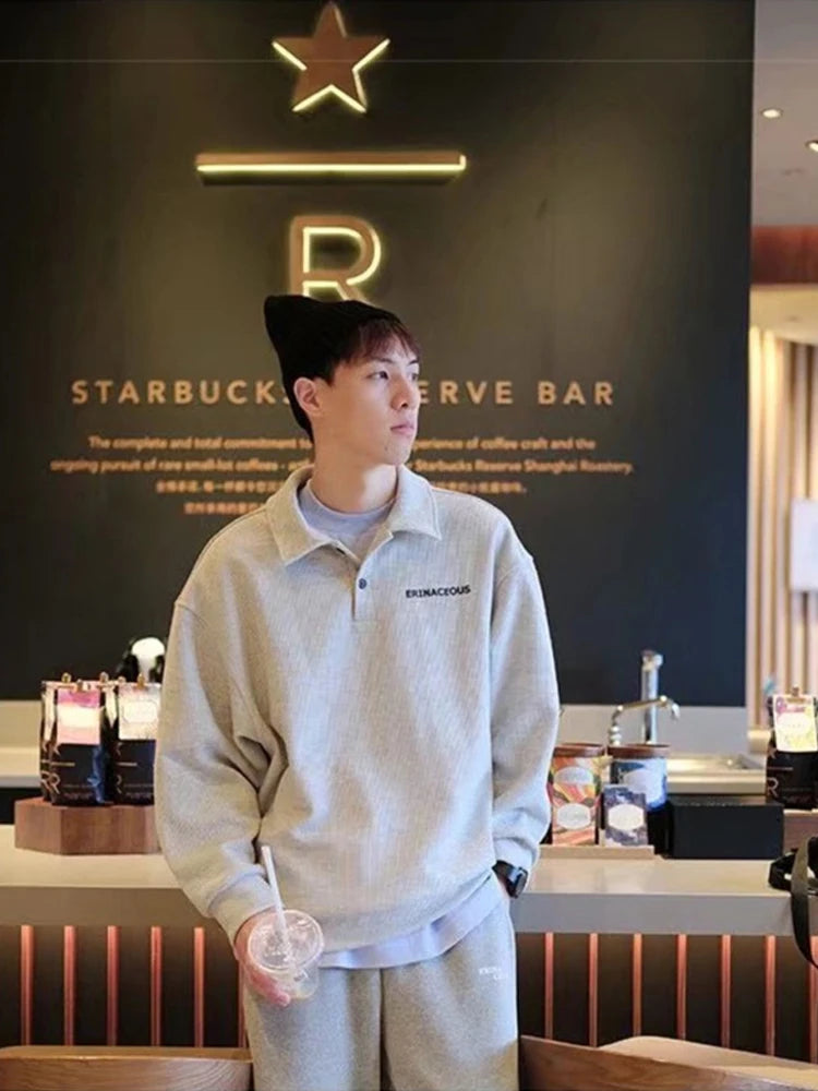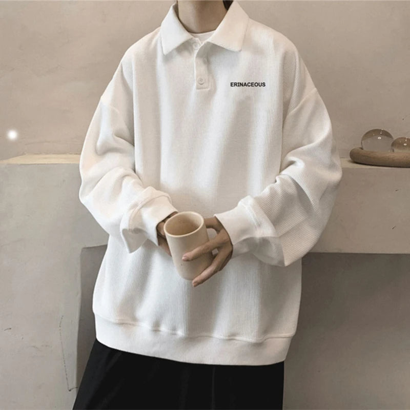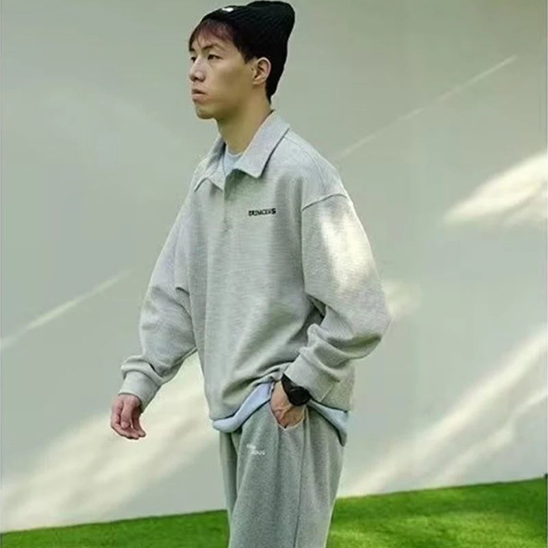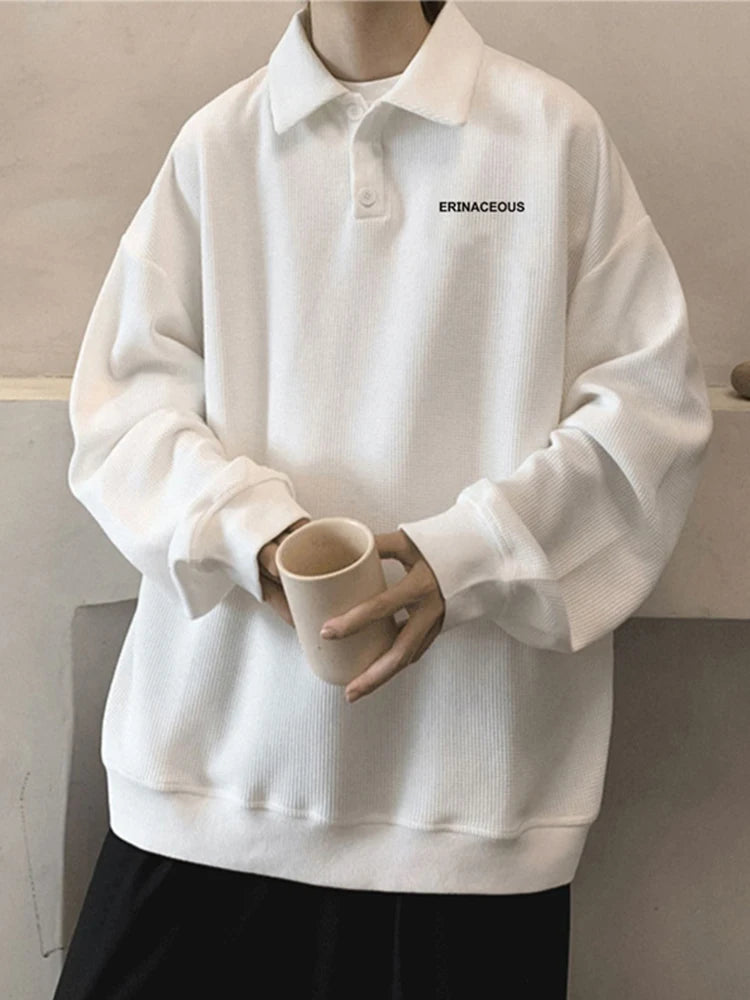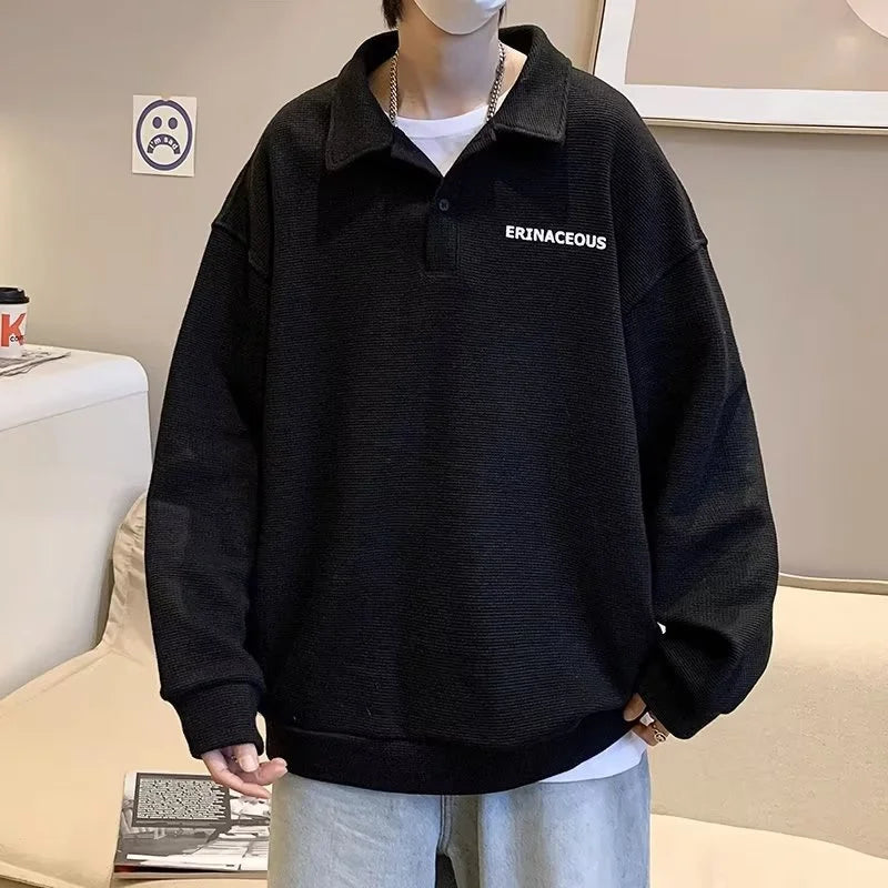 Aidase 2025 Autumn Japanese Polo Sweatshirts Men Casual Waffle Turn-down Collar Sweatshirt High Street Long Sleeve Tops New in Hoodie