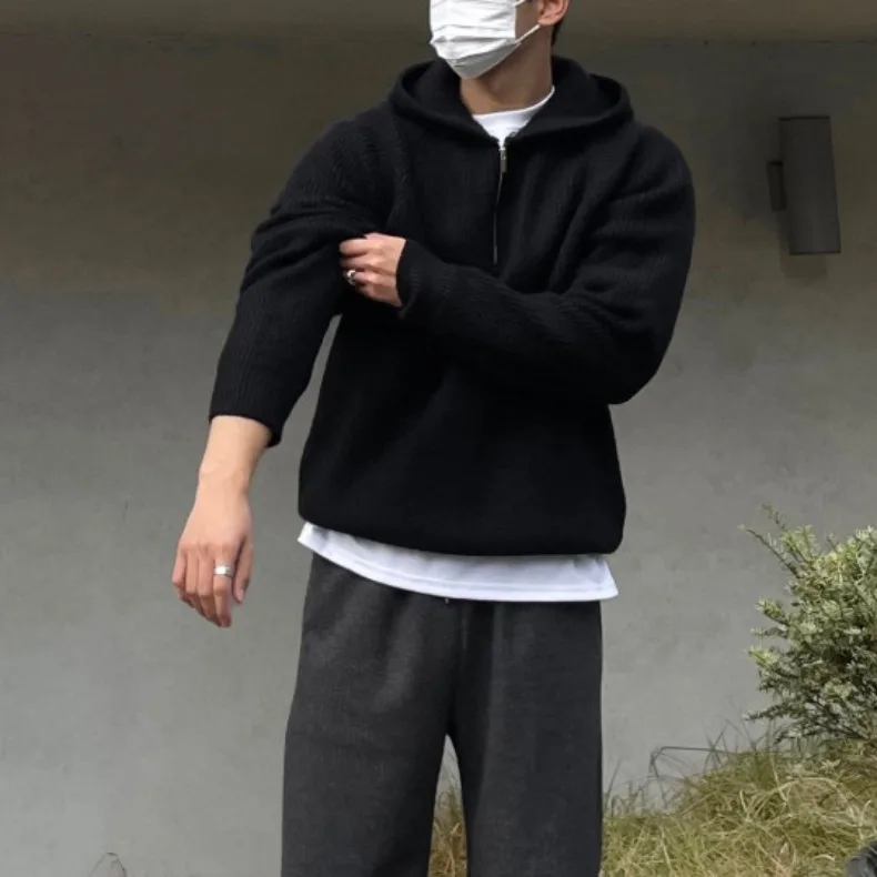 AIDASE - American Half Zipper Hooded Sweater for Men's Autumn Lazy Style Thickened Knitwear Pullover Wide Shoulder Casual Loose Hoodies