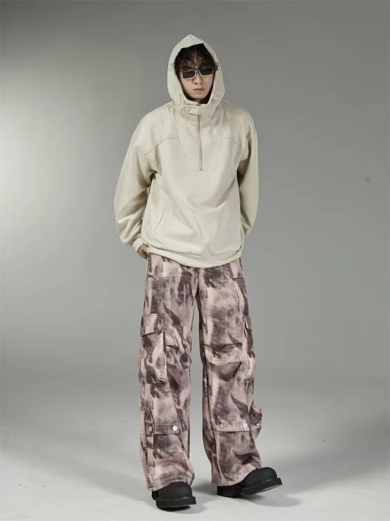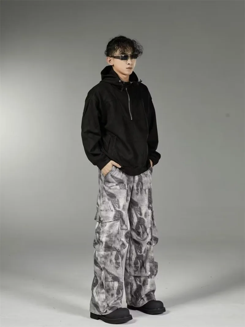 Aidase American Punk Set Mens Street Hip-hop Hoodie+Printed Multi Pocket Cargo Pants 2-pcs Set Trendy Streetwear Harajuku Loose Suit