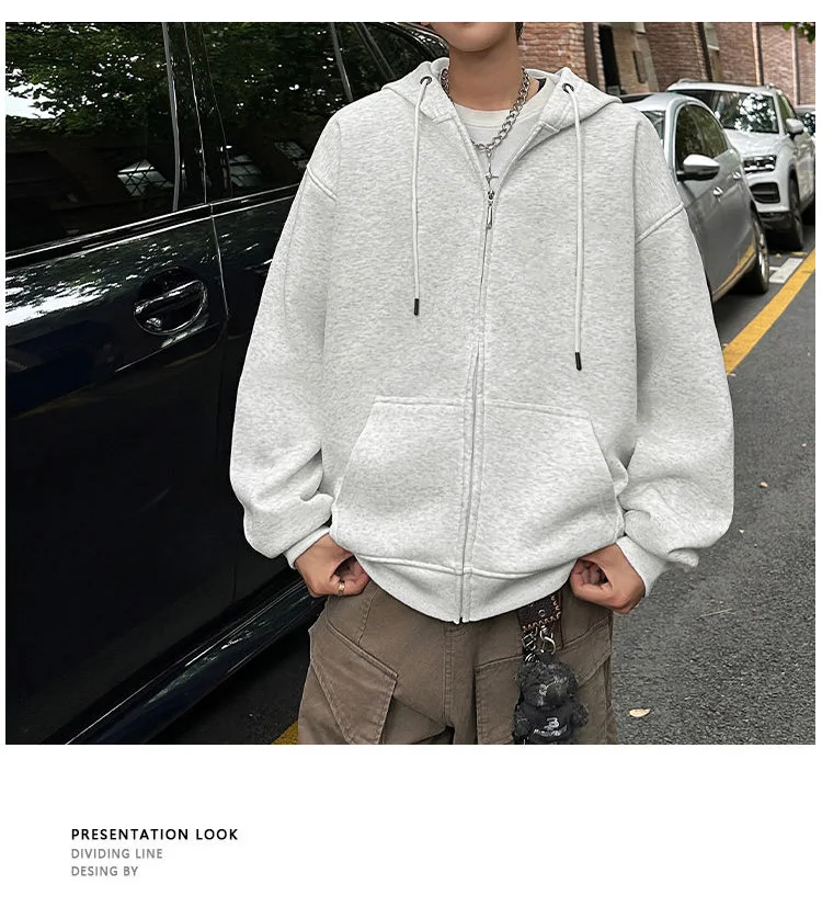 AIDASE - Autumn Fashion Men's Jacket Coat Long Sleeve Loose Zipper Hoodies Streetwear Hooded Casual Outwear Black Gray