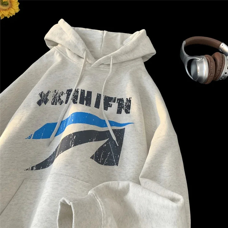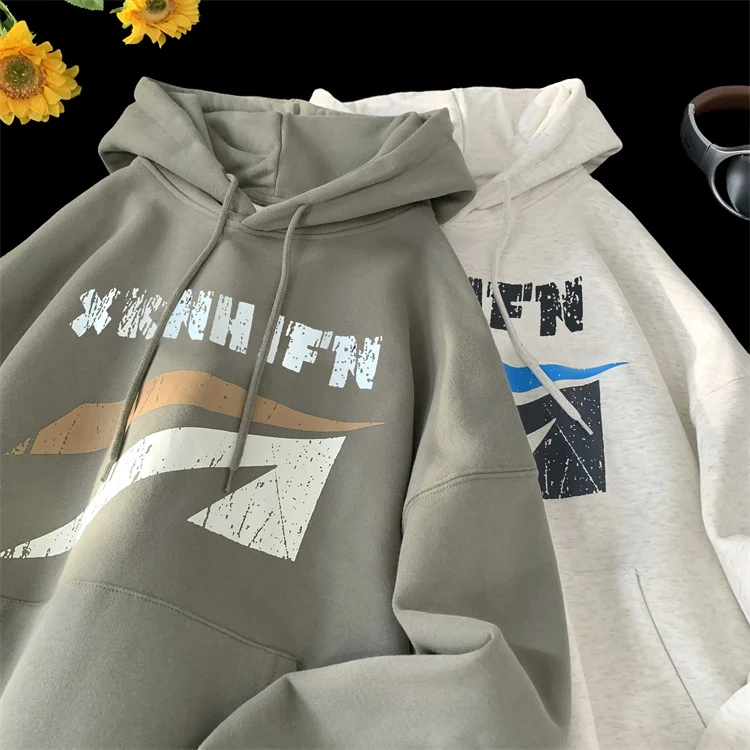 Autumn Winter New Hoodies for Men Oversized Hoodie Sweatshirt Letter Graphic Hip Hop Loose Casual Tops Simple Harajuku Hooded