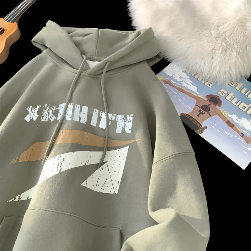 Aidase Autumn Winter New Hoodies for Men Oversized Hoodie Sweatshirt Letter Graphic Hip Hop Loose Casual Tops Simple Harajuku Hooded