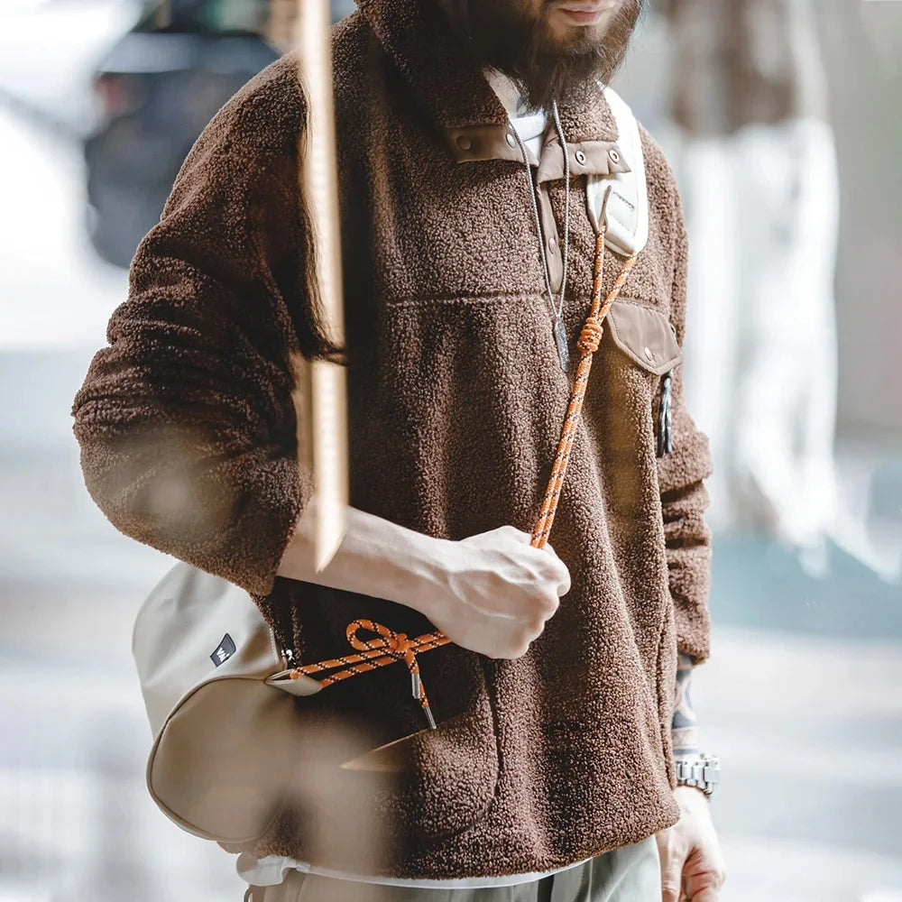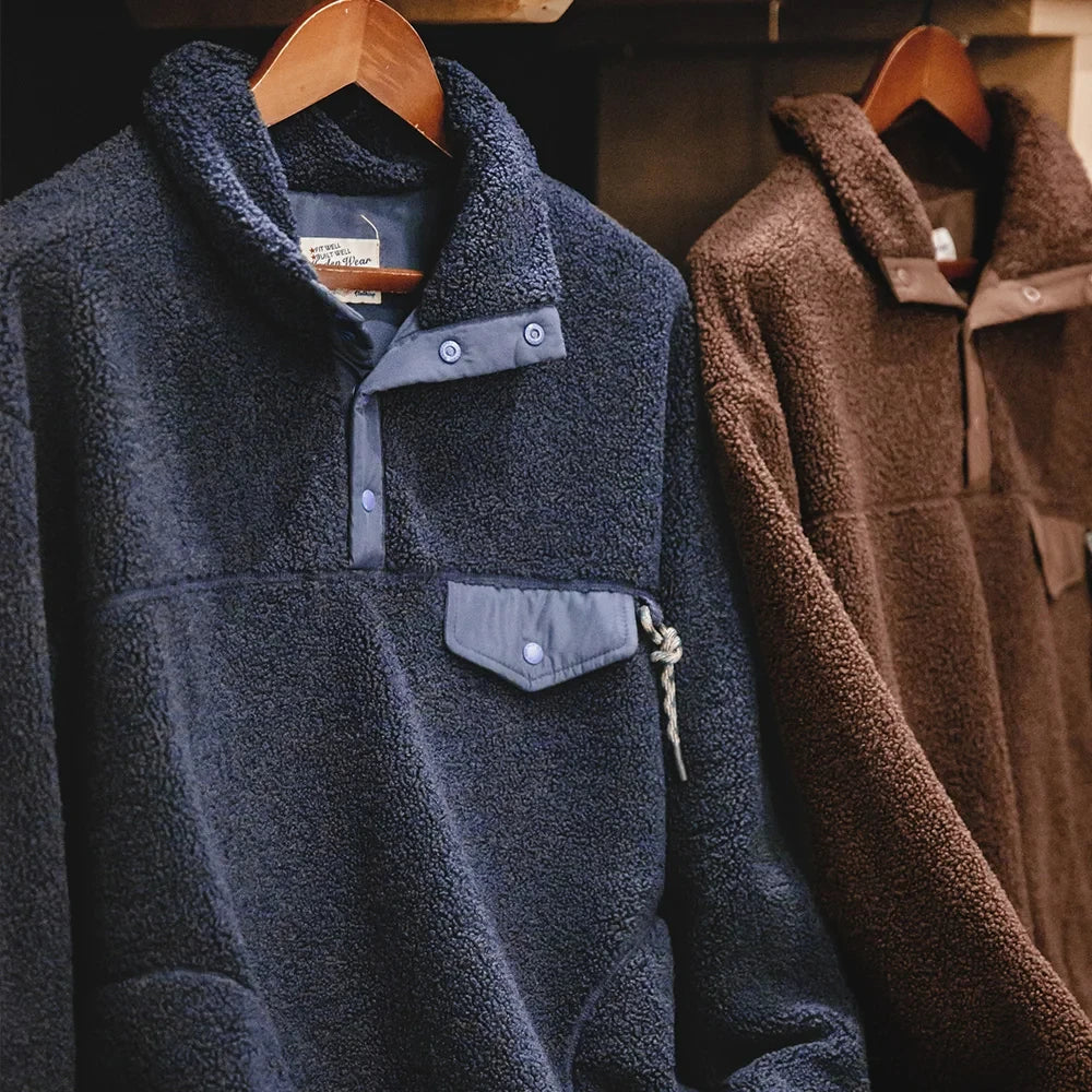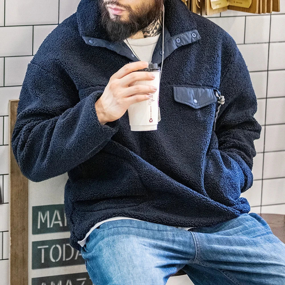Aidase Casual Half-breasted Fleece Hoodies Winter Navy Blue Warm Pullover Jacket Outdoor Oversize Workwear Thermal Outwear