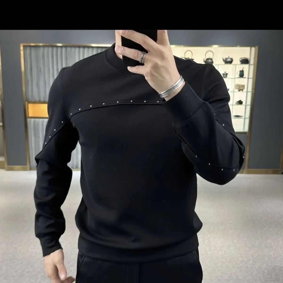 Aidase European Men's Autumn and Winter New High-quality Hoodie Round Neck Trendy and Versatile Long Sleeved Hoodie for Men