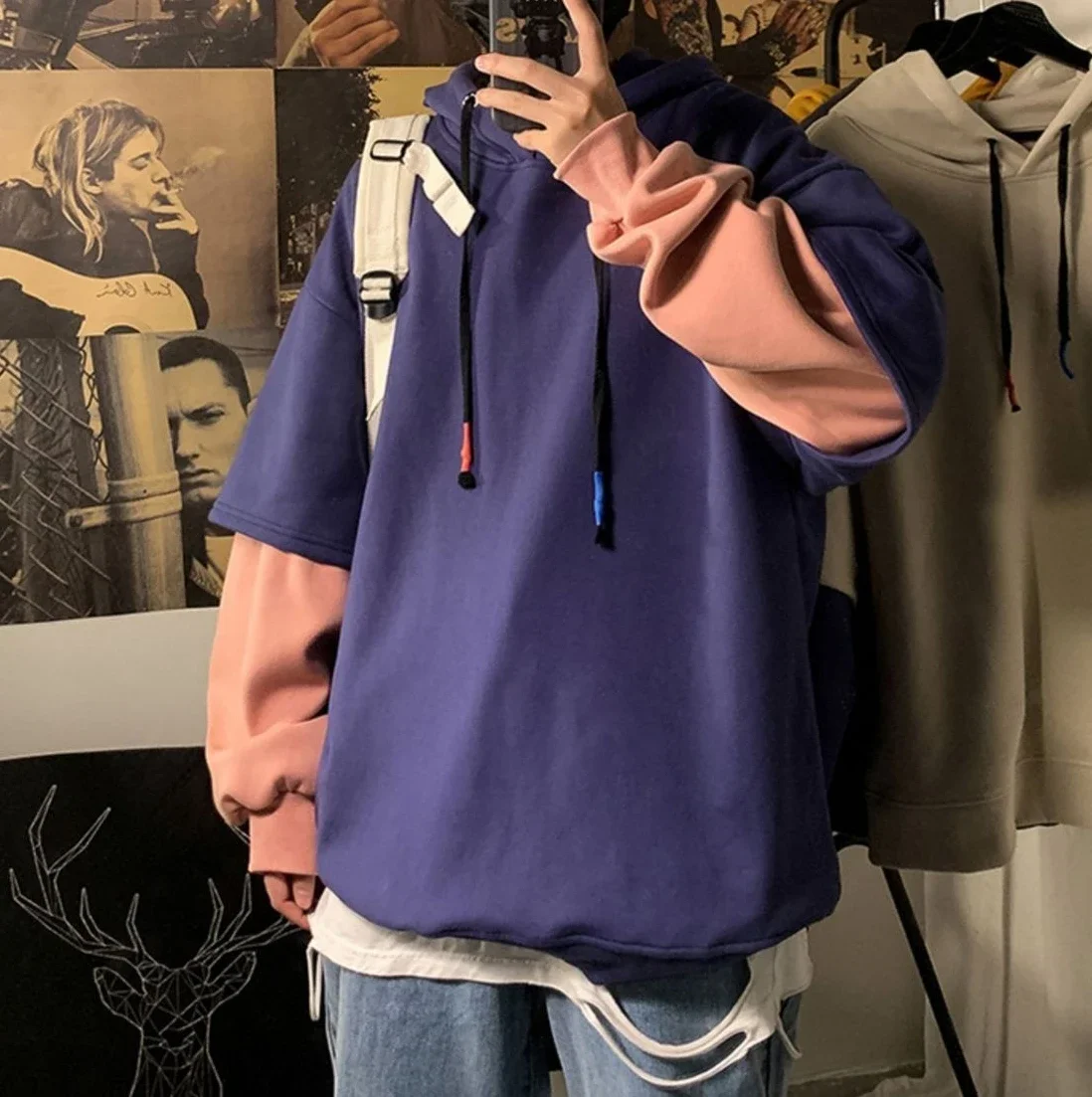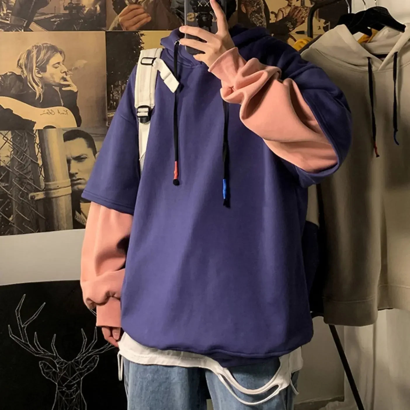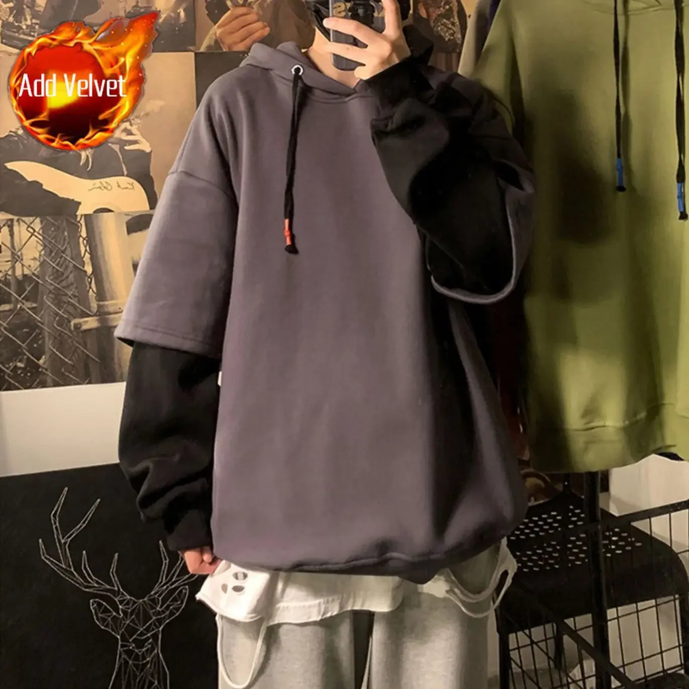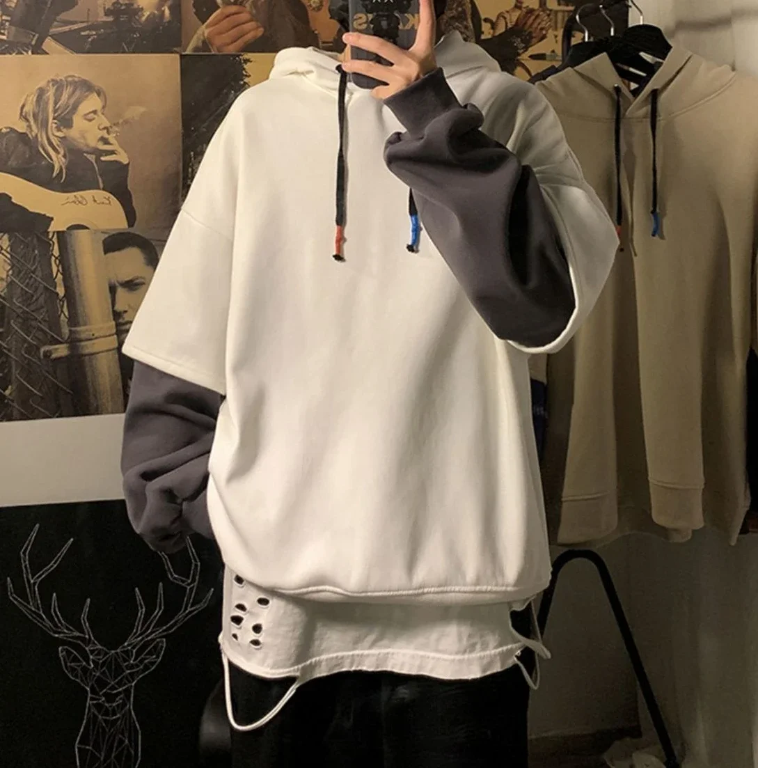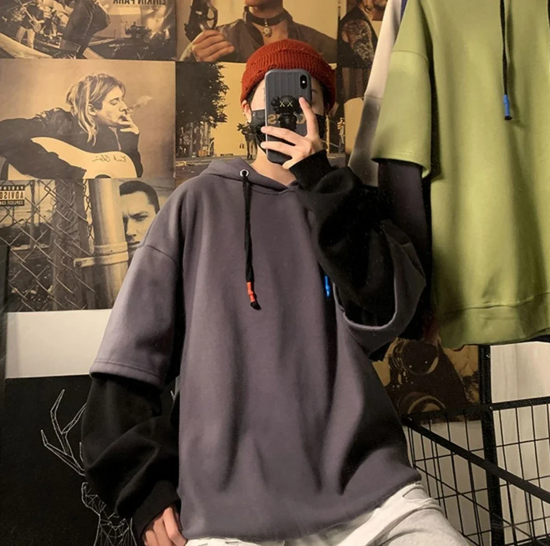 Aidase Hooded Sweatshirts for Man Black Hoodies Hip Hop Men's Clothing Sweat Shirt No Brand Funny Loose Overfit Streetwear Simple Cheap