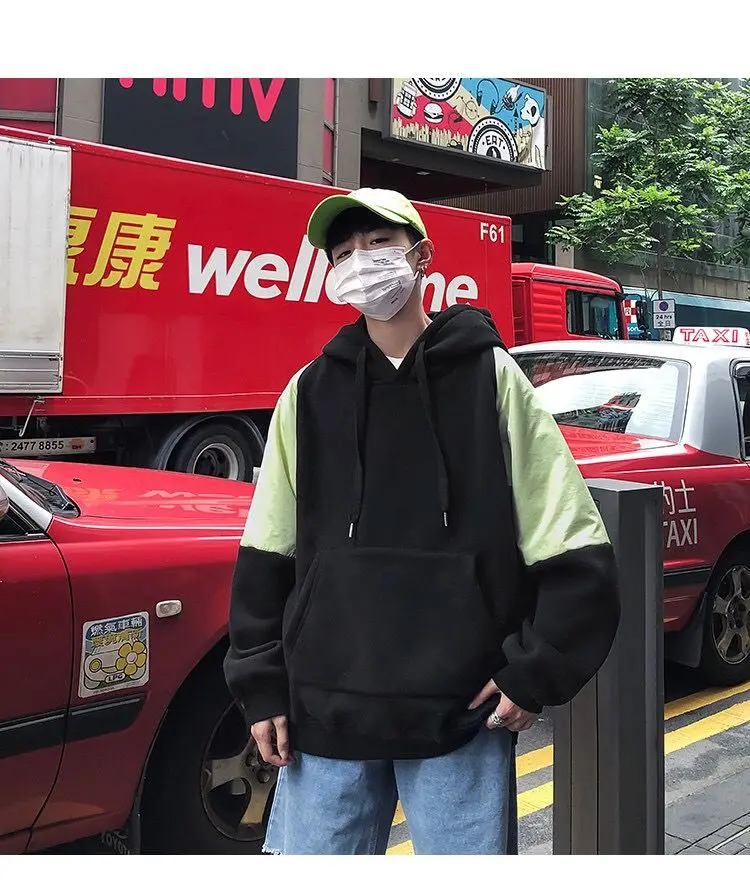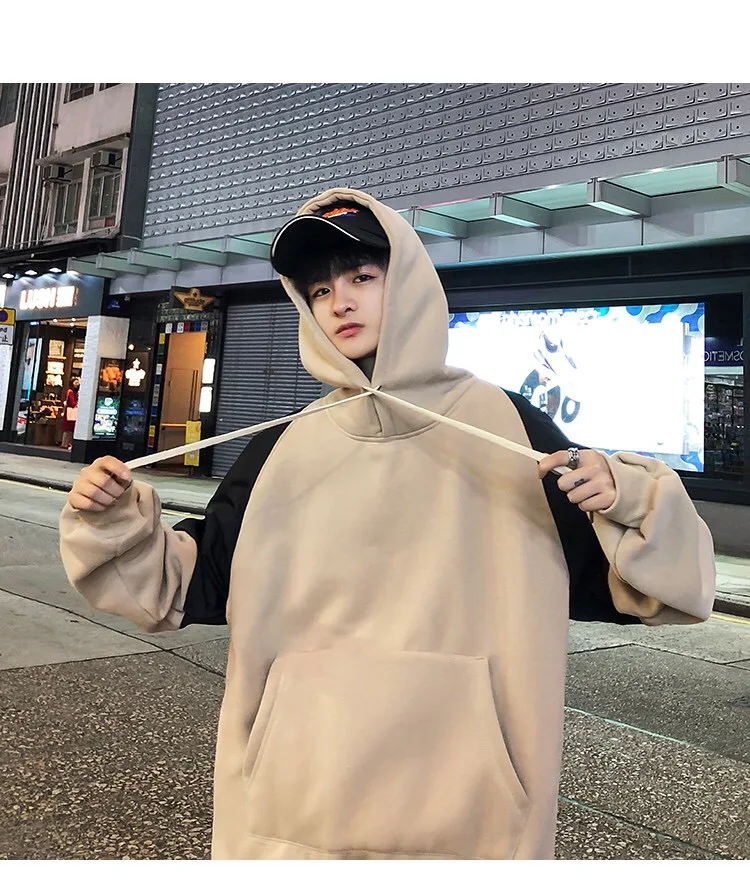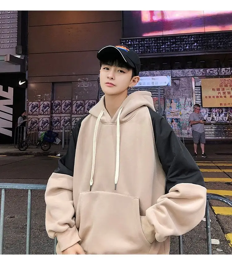 Aidase Hoodies Men Patchwork Hooded Sweatshirt Warm Winter Hoodie Loose Korean Style Casual Mens All-match Streetwear Students Chic New