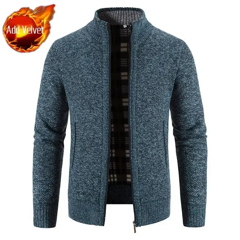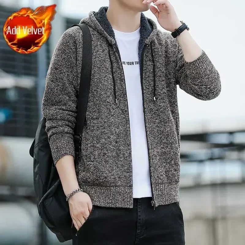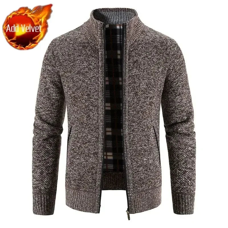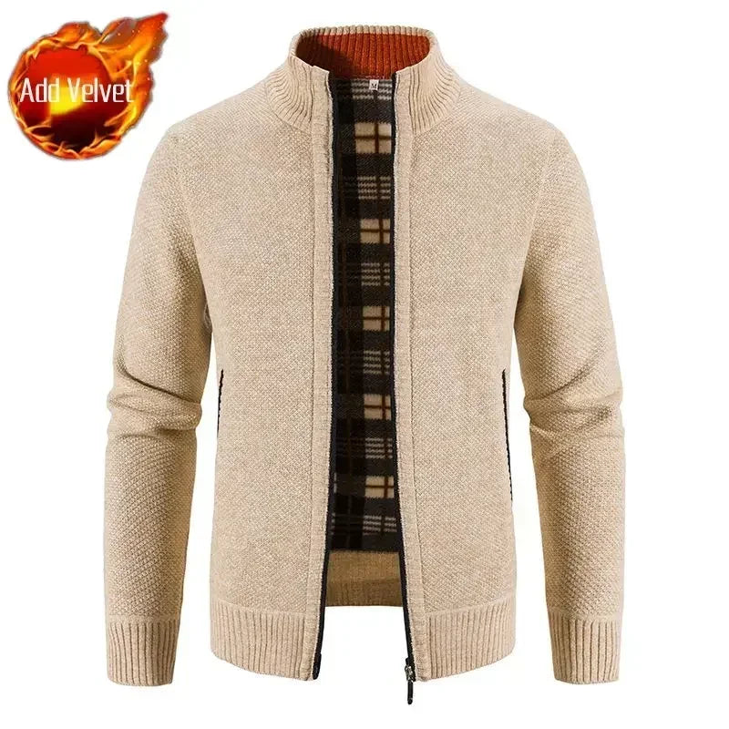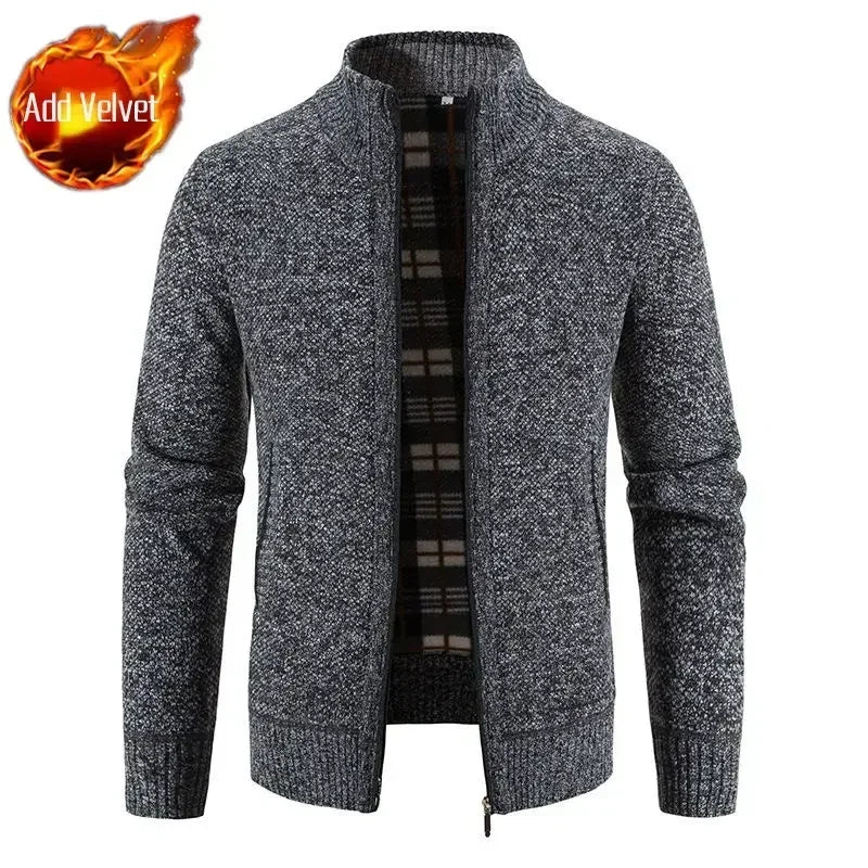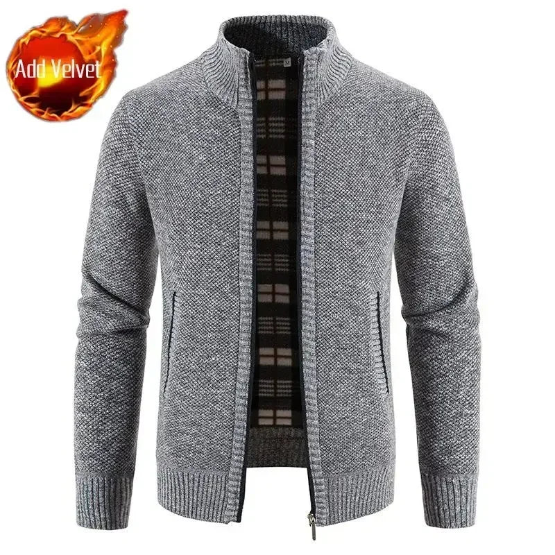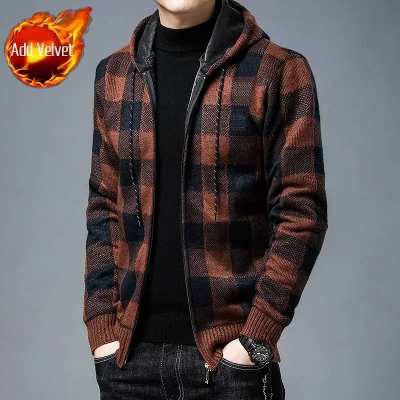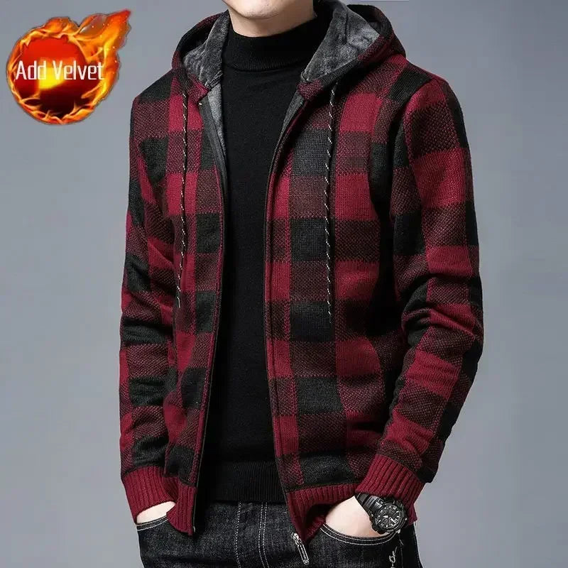 Aidase Knit Sweater Male Zipper Plaid Men's Clothing Cardigan Hoodies Zip-up Thick Winter Red Tops Jumpers Casual Stylish Hot