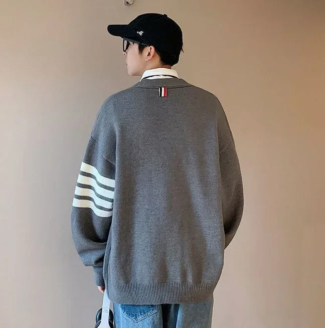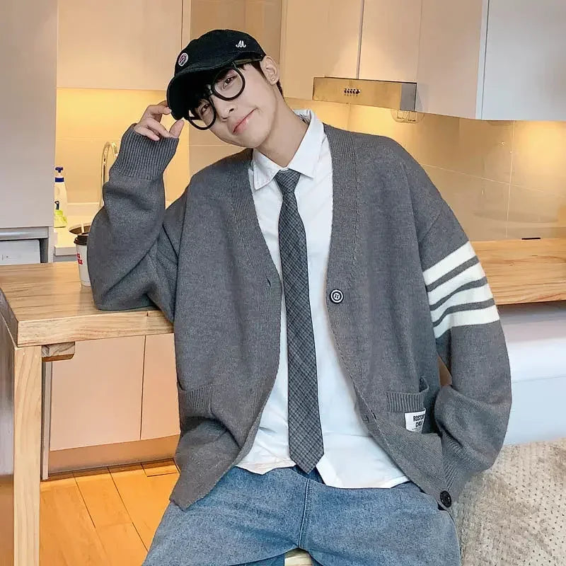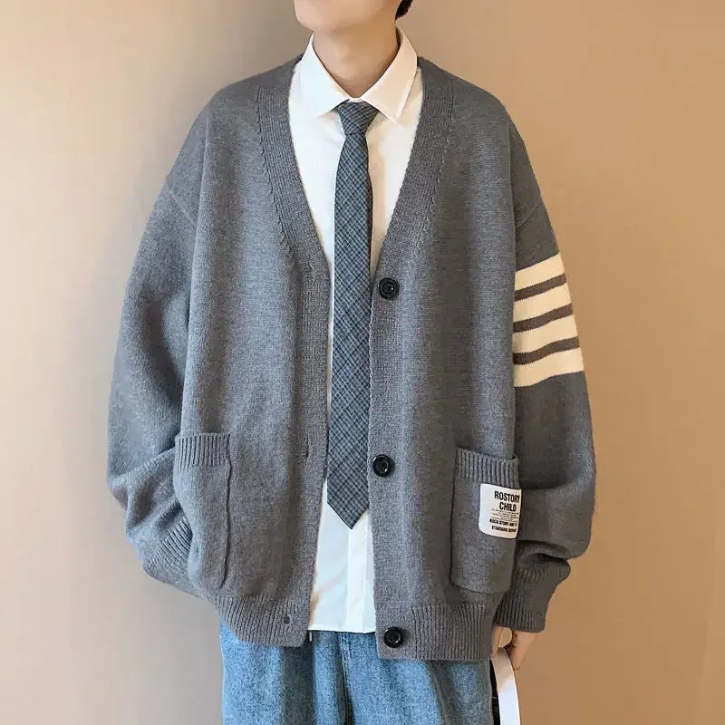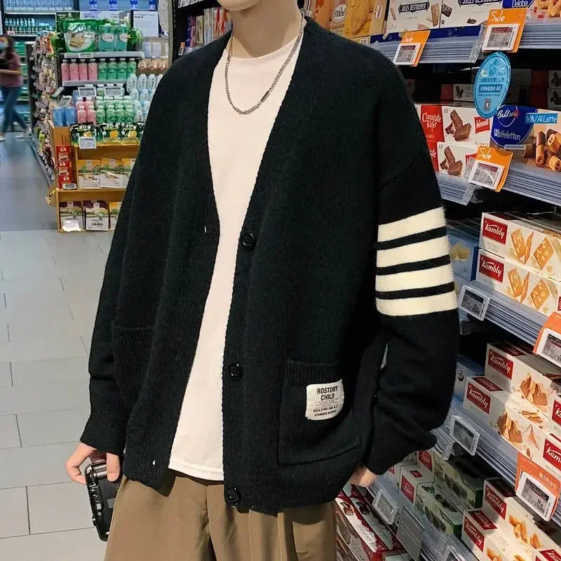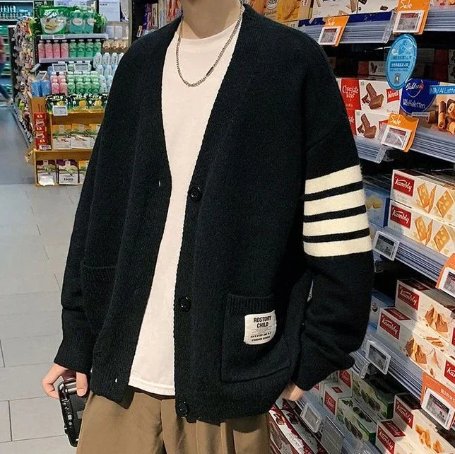 Aidase Knitted Sweaters for Men Cardigan Coat Jacket Man Clothes with Pockets Black Striped Icon Korean Autumn Sweatshirts Street S X A