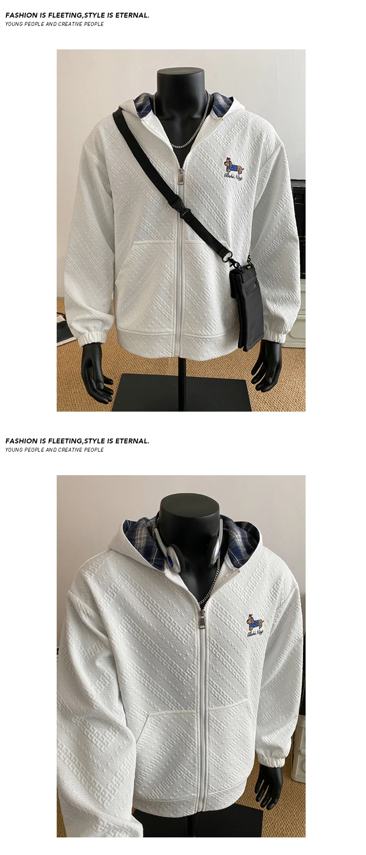 Aidase Korean Style Embroidered Puppy Pattern Hooded Cardigan Sweatshirt 2025 Spring Hoodie Sweatshirt Harajuku Textured Jacket