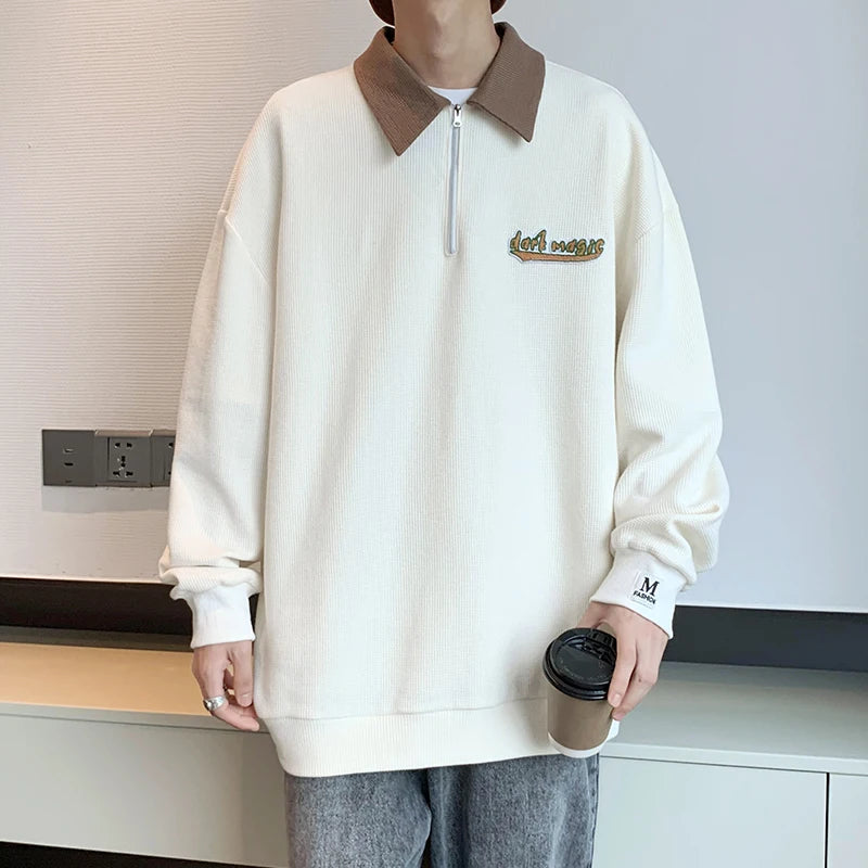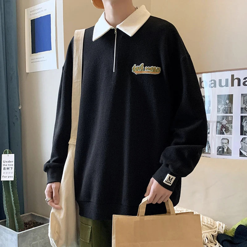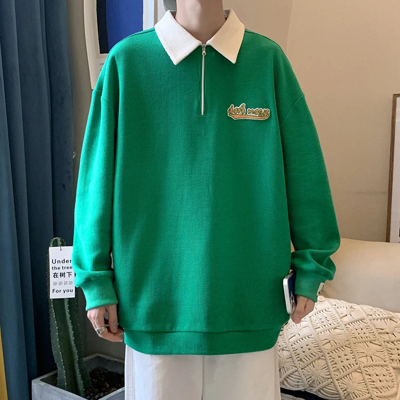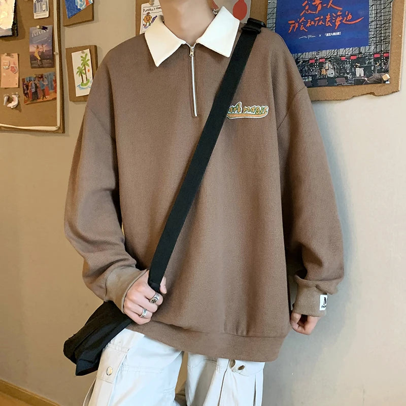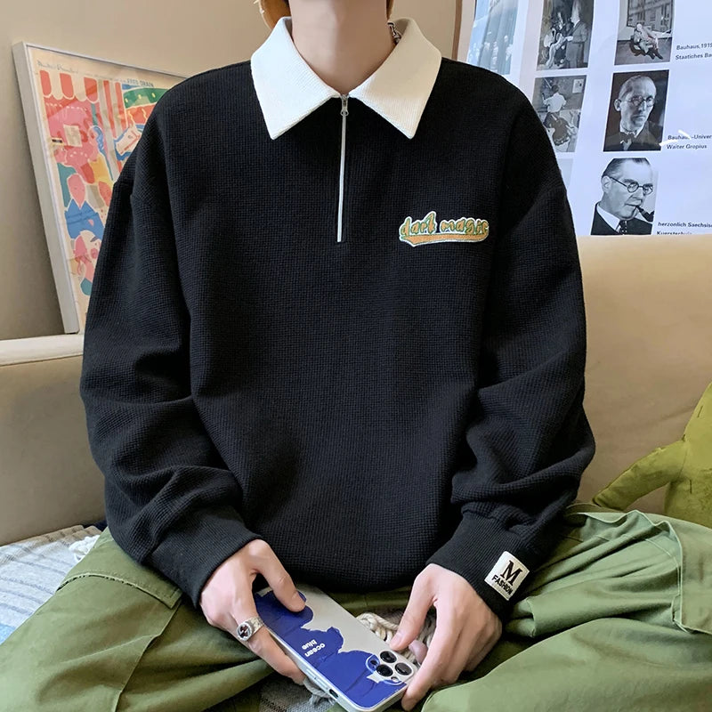 Korean wind Sweatshirt Men Women Lapel Collar Hoodie Trendy Harajuku College Style Oversize Casual Sports Polo lapel sweater