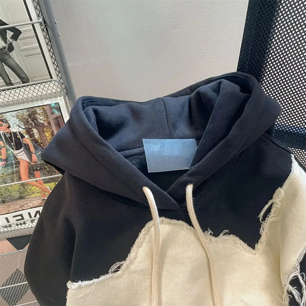 Aidase Male Clothes Hoodies Hooded Spliced Sweatshirt for Men Hip Hop Black Welcome Deal Novelty and Streetwear Luxury No Brand Loose S