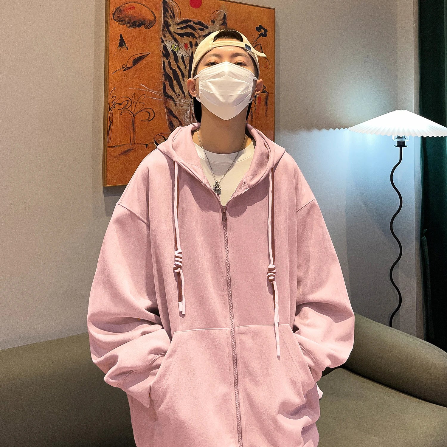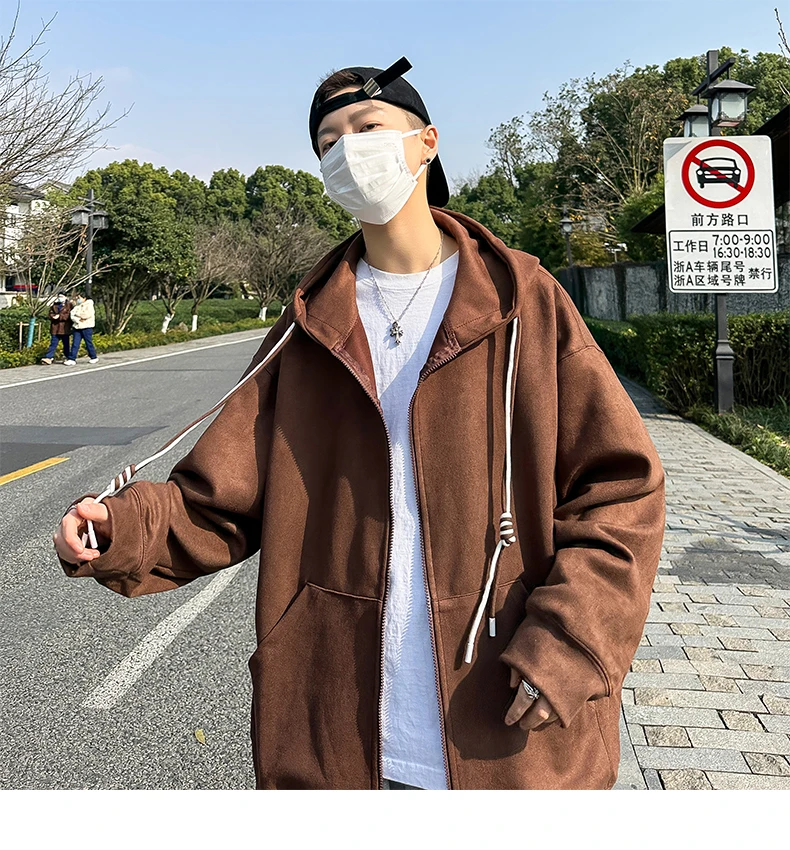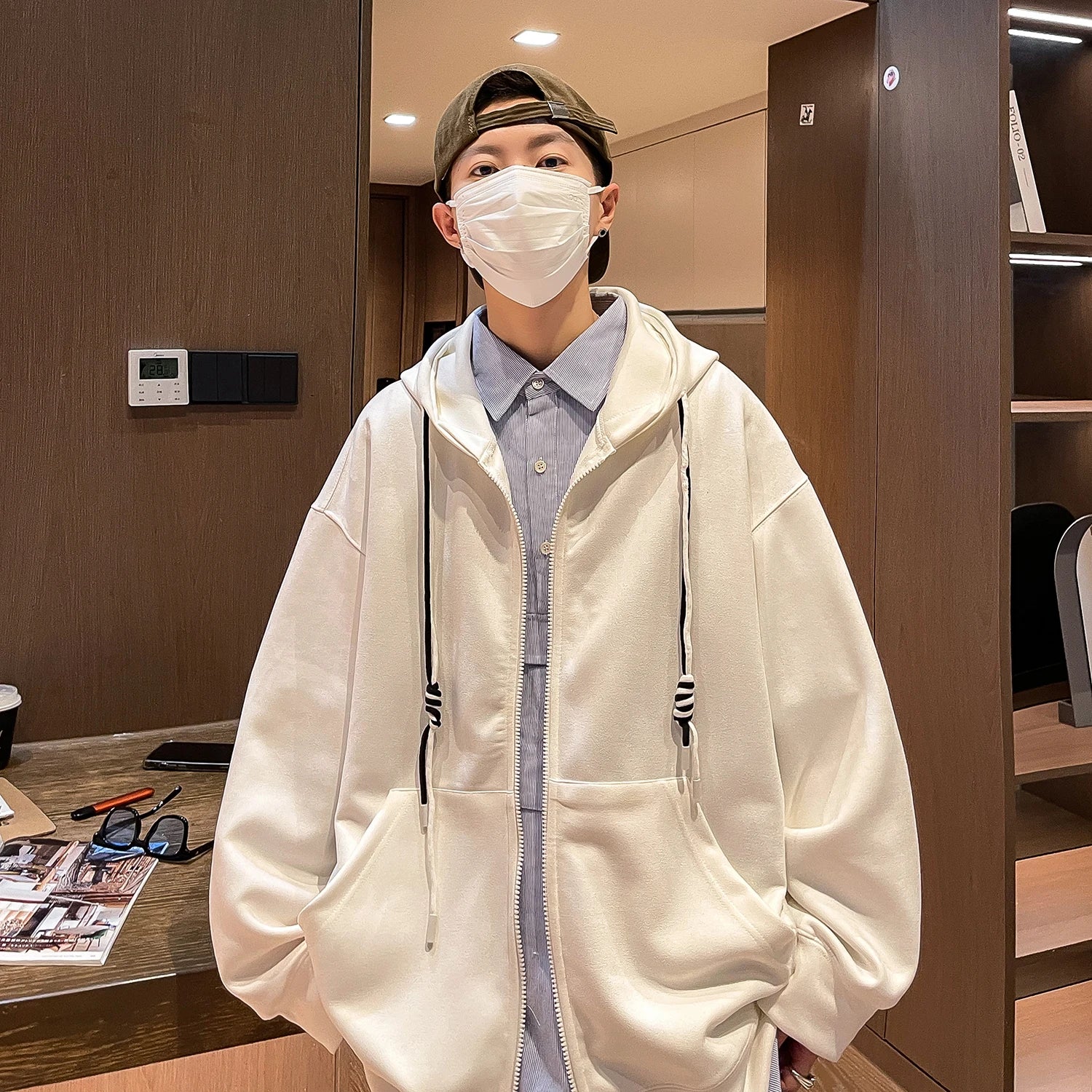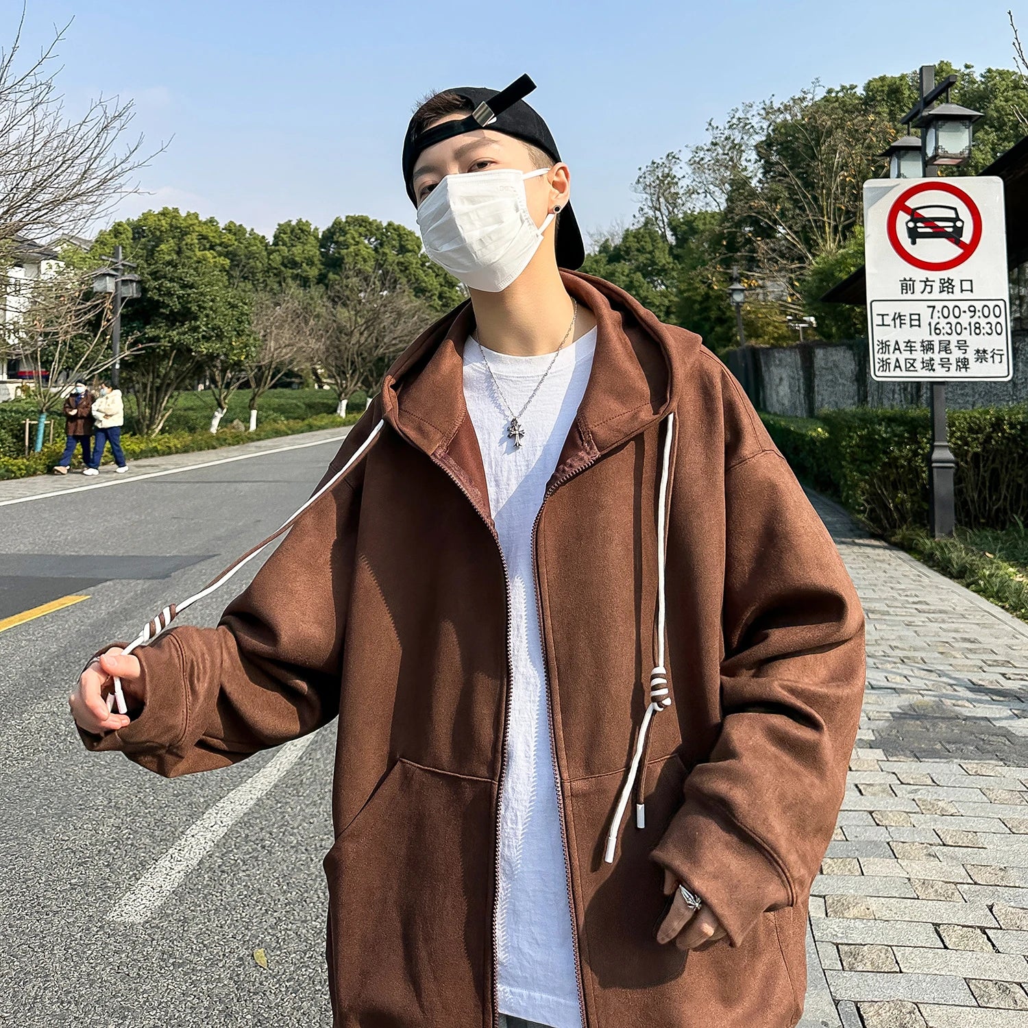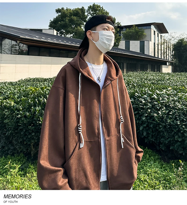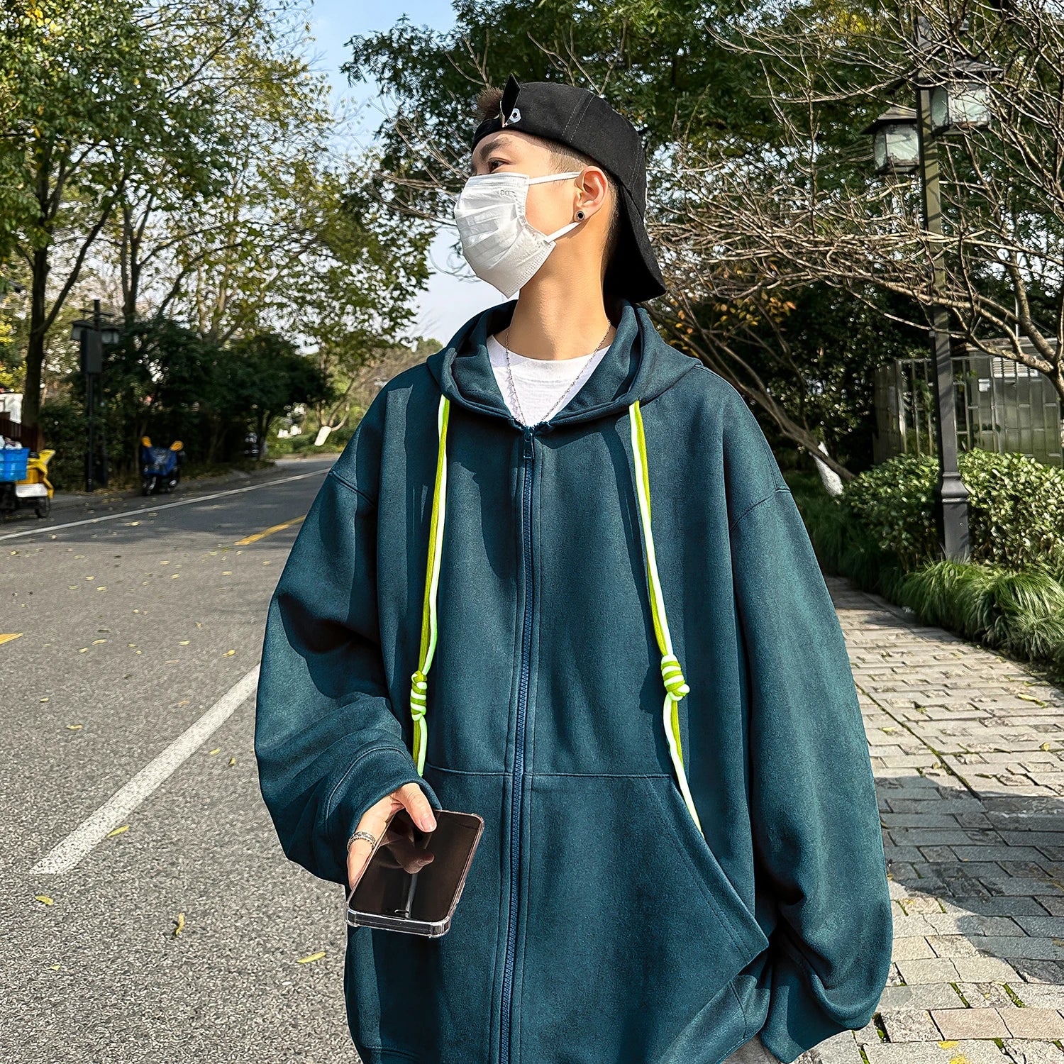 Men Hoodies Harajuku High Street Hooded Sweatshirts Y2K Streetwear Hip Hop Gothic Zip Up Loose Jacket Coats Pullover Tops