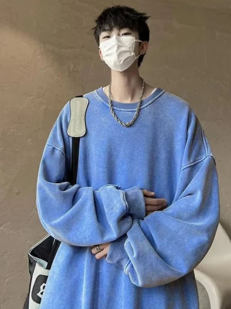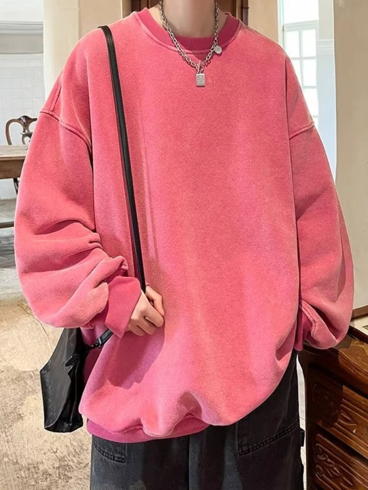 Aidase Men Sweatshirts Baggy Students American Style 4 Color Versatile Leisure Long Sleeve Round Neck Chic Cozy Advanced Handsome Soft