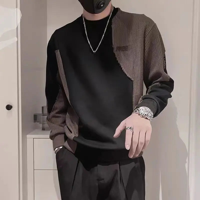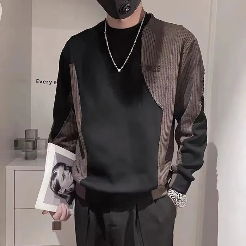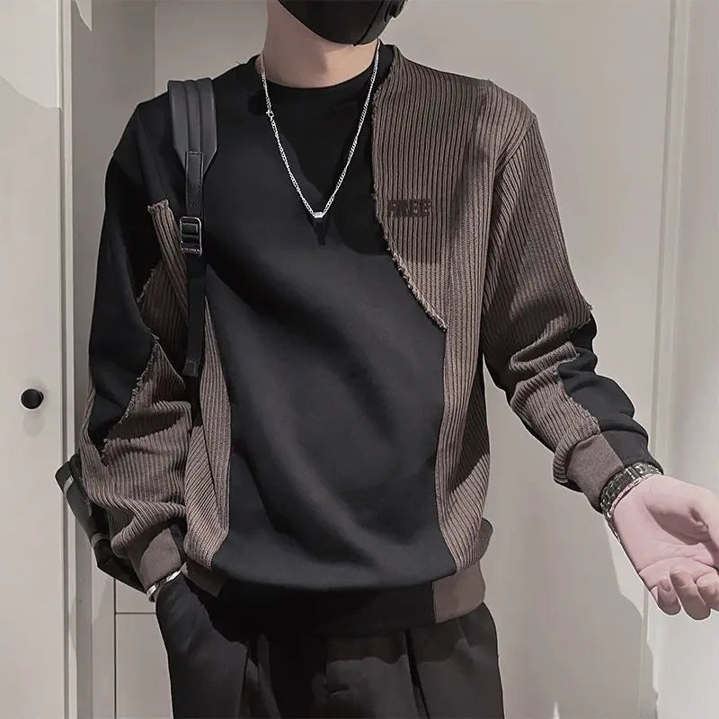 Aidase Men's Clothing Black Sweatshirts for Man Round Neck Hoodieless Crewneck Pullover Top No Brand Streetwear One Piece Luxury Emo
