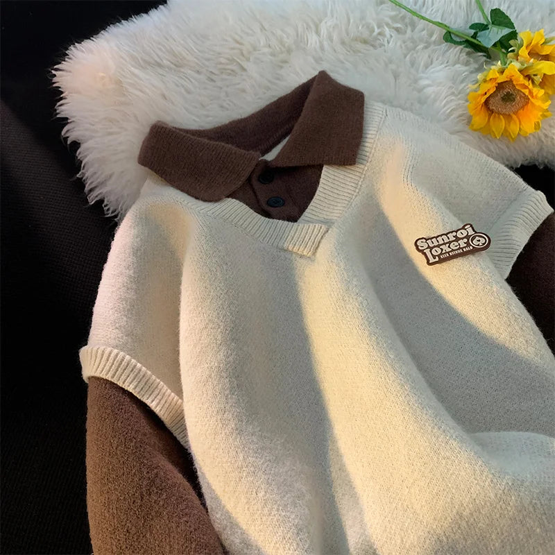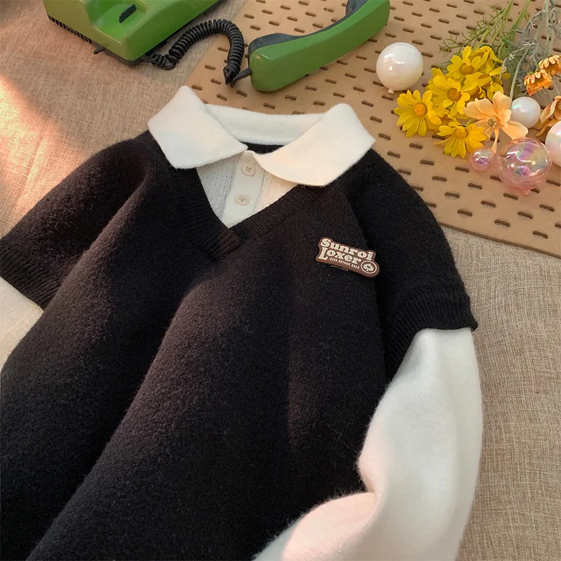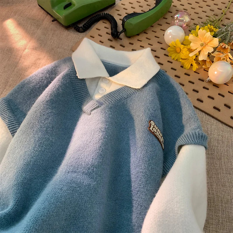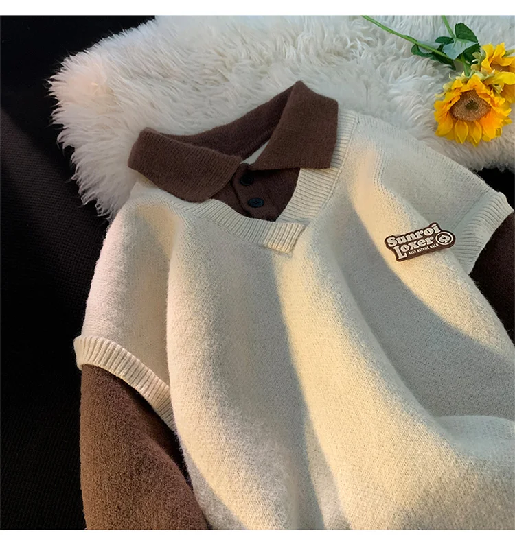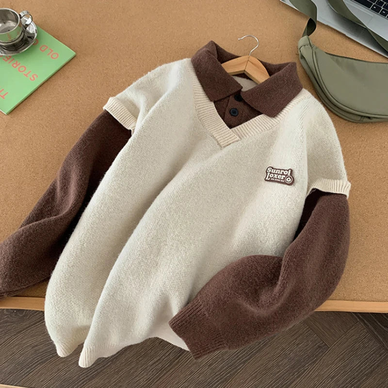 Aidase Sweatshirts Men Preppy Fashion Youthful Autumn Winter Warm Turn-down Collar Fake Two Pieces Korean Style Teenagers Popular Soft