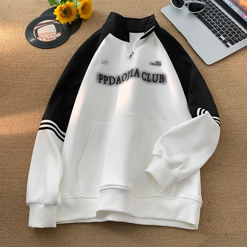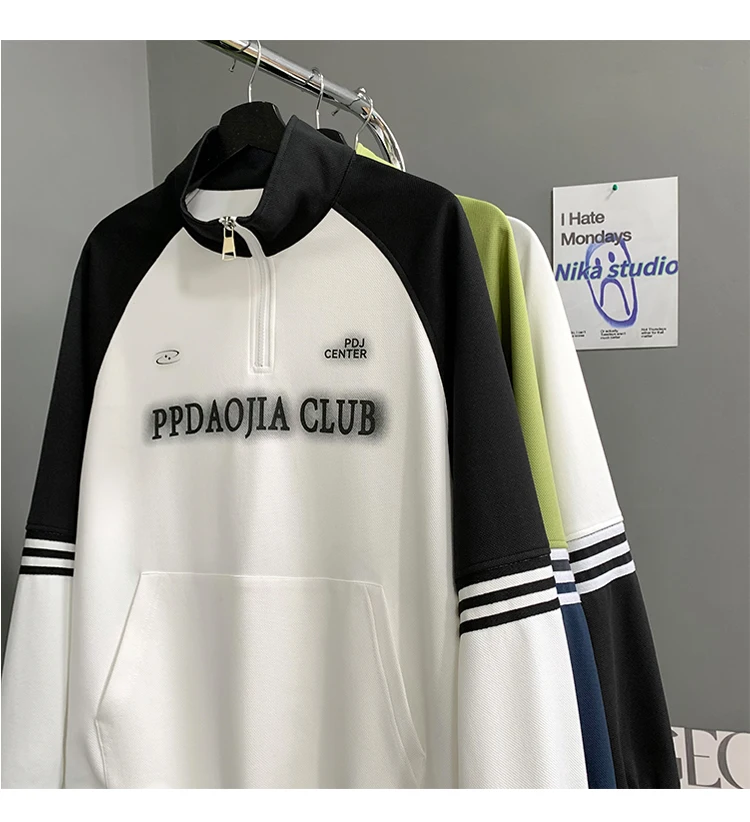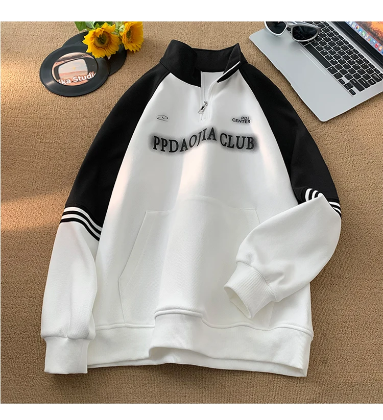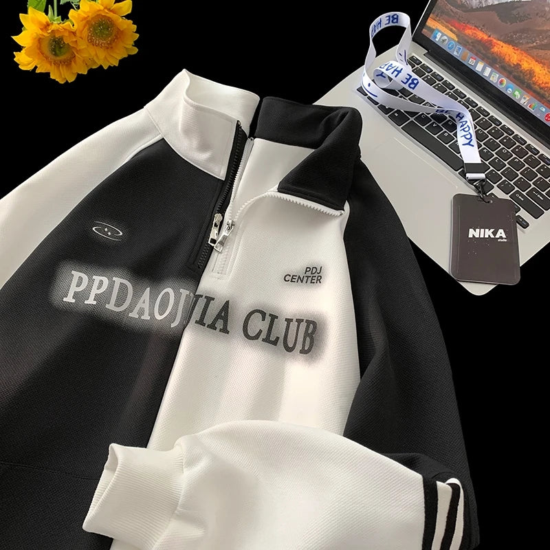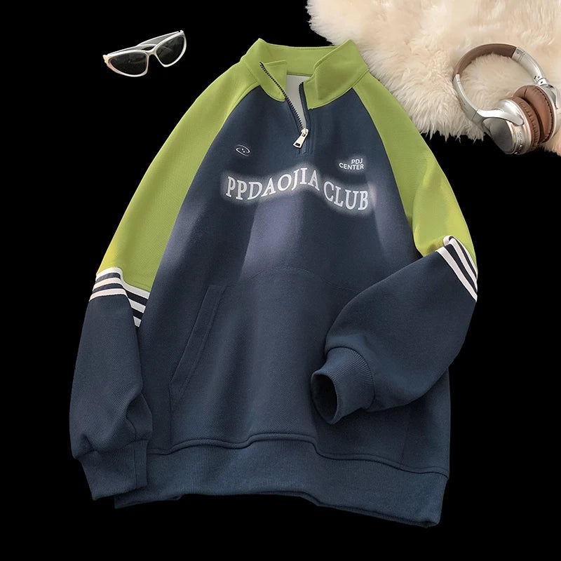 Aidase Trendy Men's Sweatshirt Half Zip Casual Standing Collar Pullover Sweatshirt Harajuku Unisex Printed Colorblock Sweatshirts