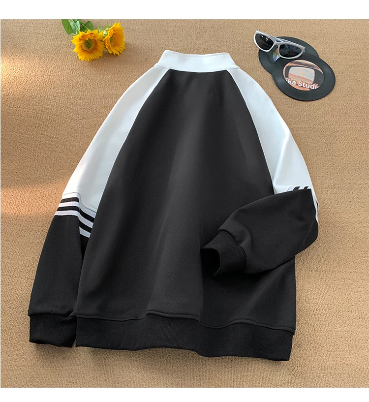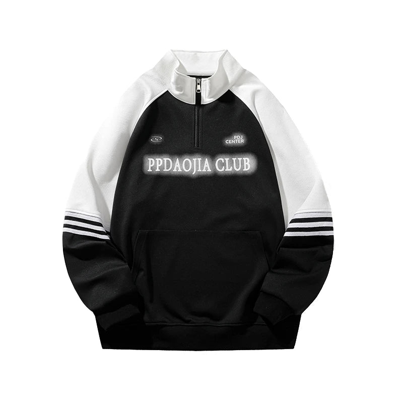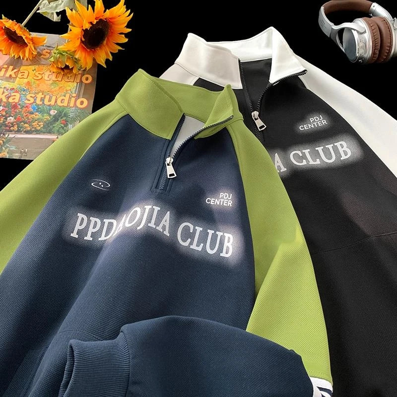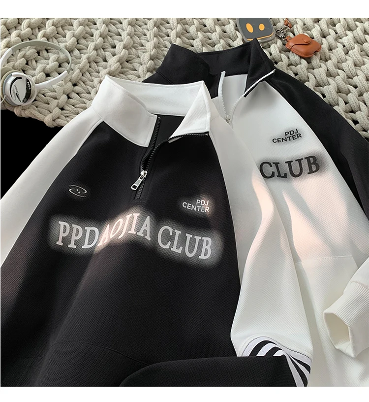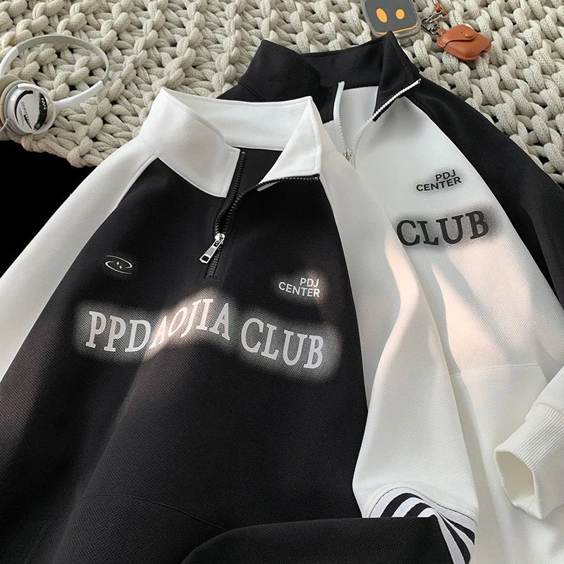 Aidase Trendy Men's Sweatshirt Half Zip Casual Standing Collar Pullover Sweatshirt Harajuku Unisex Printed Colorblock Sweatshirts