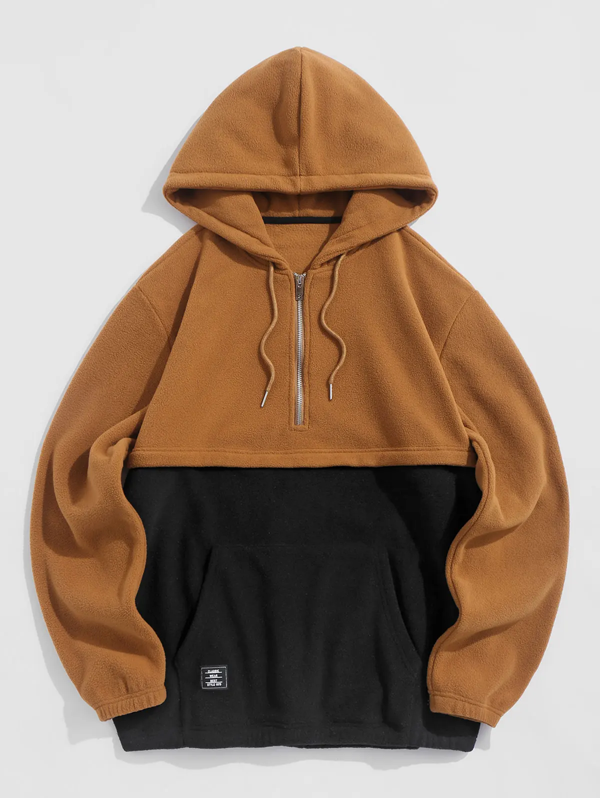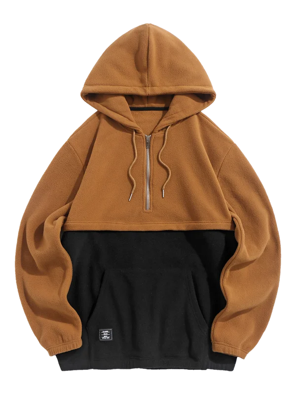 Aidase Two Tone Colorblock Half Zip Polar Fleece Hoodie